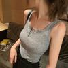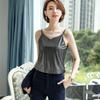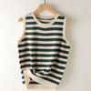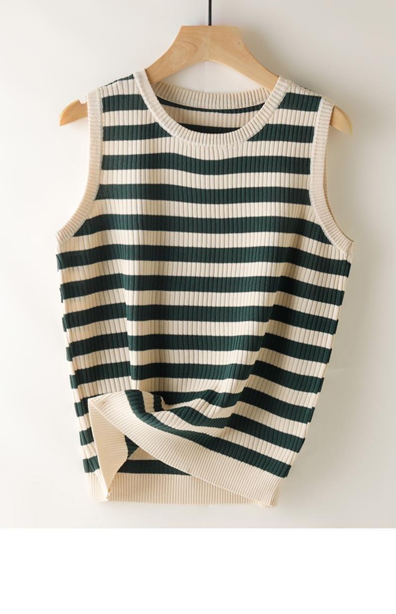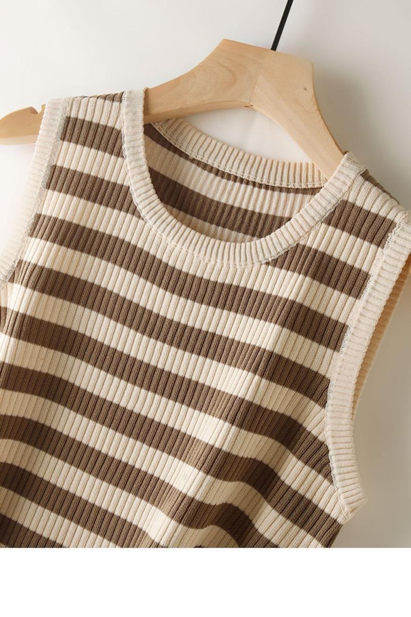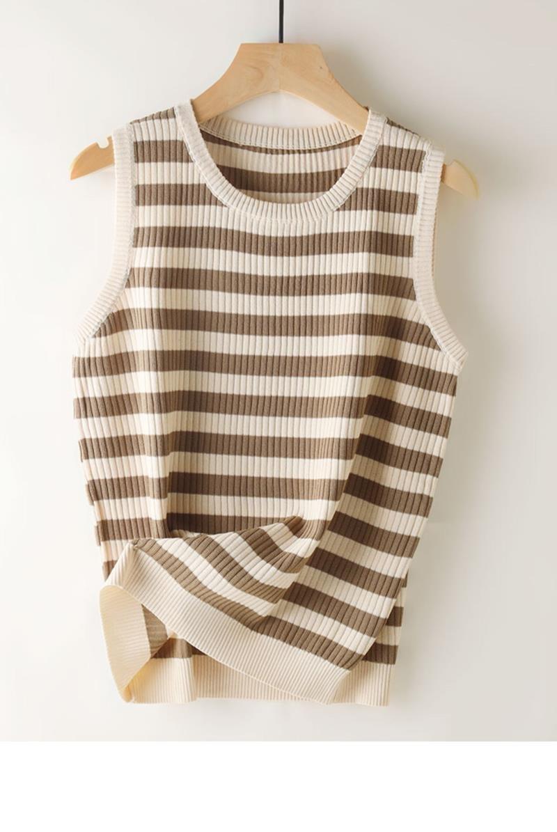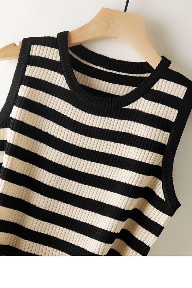 Camisola de mujer suelta de primavera y verano con cuello redondo de seda helada de punto a rayas combinable informal sin mangas de calle