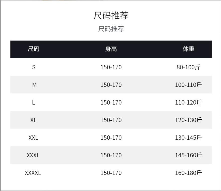S 40-50kg, M 50-55kg, L 55-60kg, Xl 60-65kg, 2xl 65-72.5kg, 3xl 72.5-80kg, 4xl 80-90kg