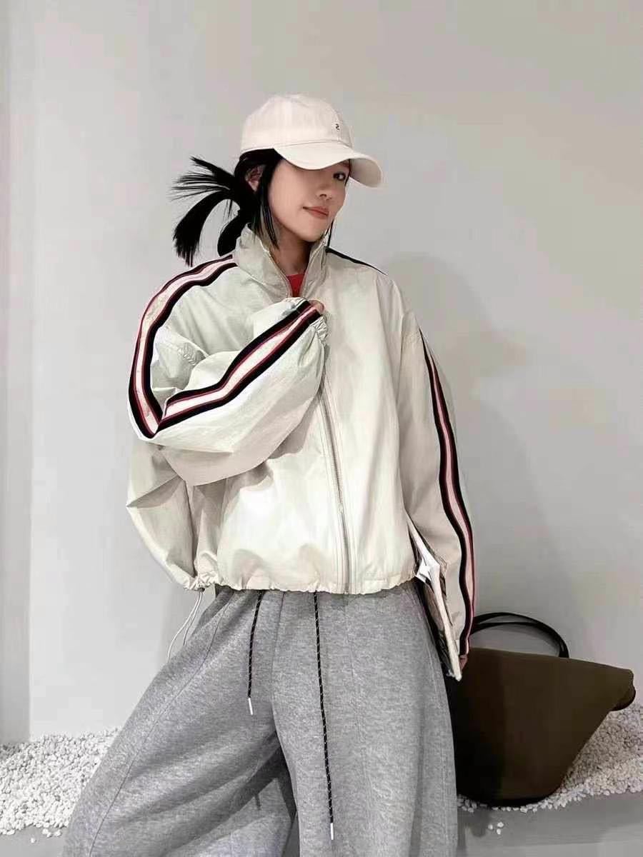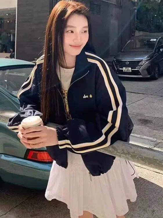 Ventas Directas de Fábrica Letra Bordada Cuello Alto Rayas Chaqueta Corta Protección Solar para Mujer 25 Estilo Casual Primavera-Verano Chaqueta Plisada