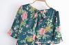 Estilo Europeo y Americano 2022 Verano Nuevo Estilo Francés Estampado Floral Espalda con Cordones Media Manga Ajustado Vestido Adelgazante
