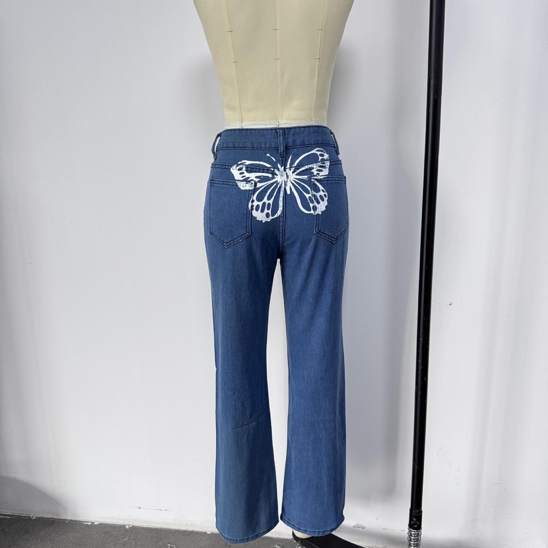 Jeans estampados de cintura alta para mujer, suministro transfronterizo de comercio exterior europeo y americano