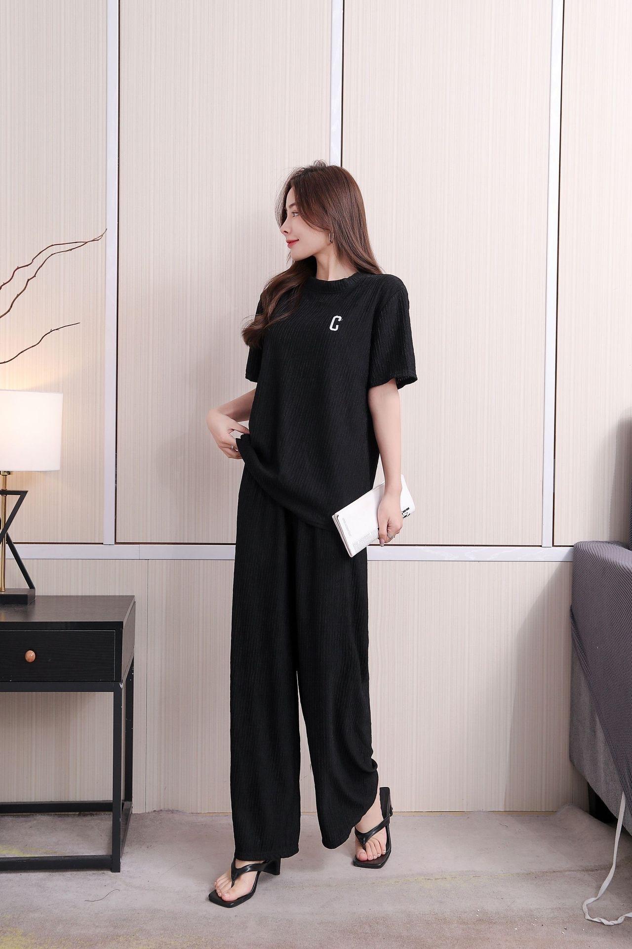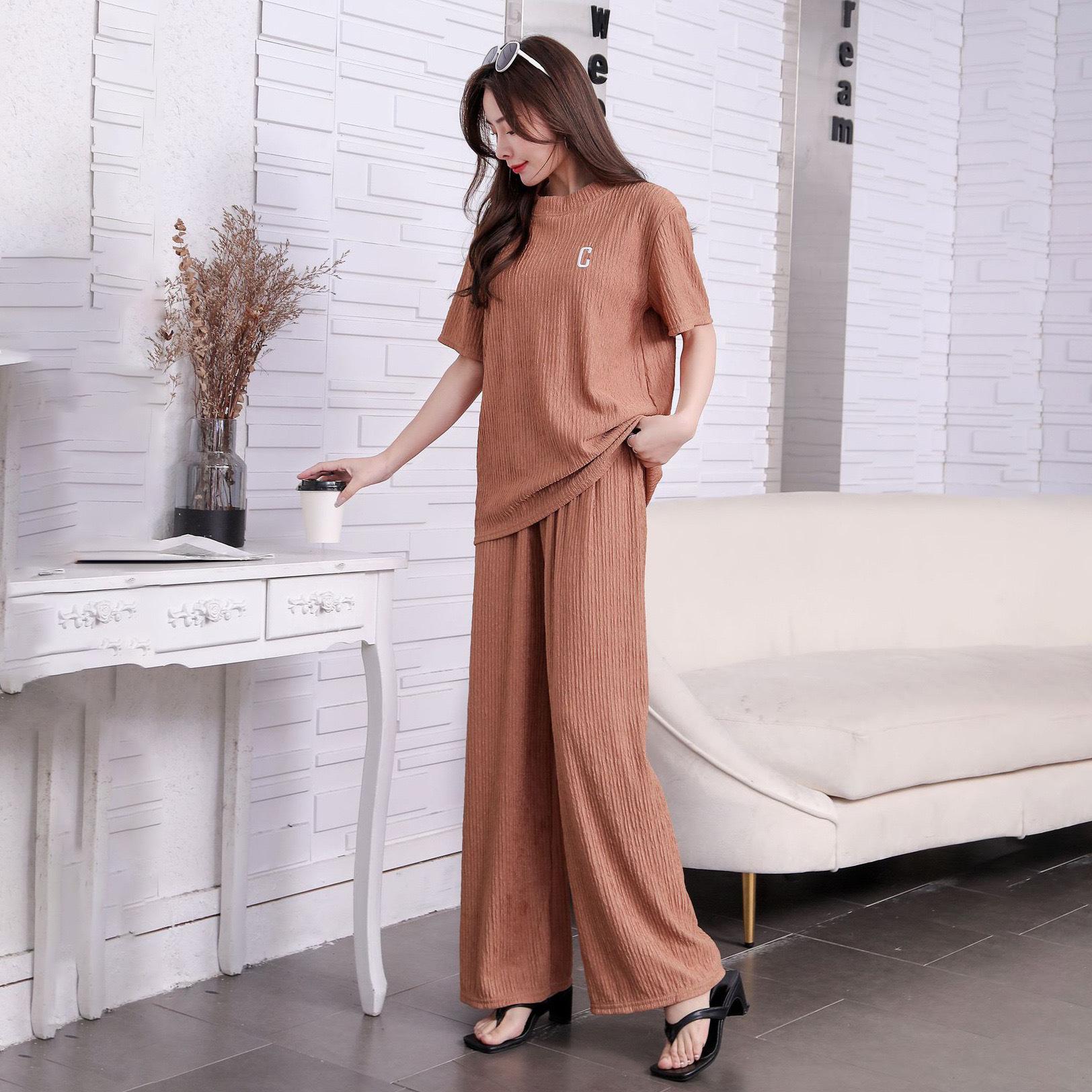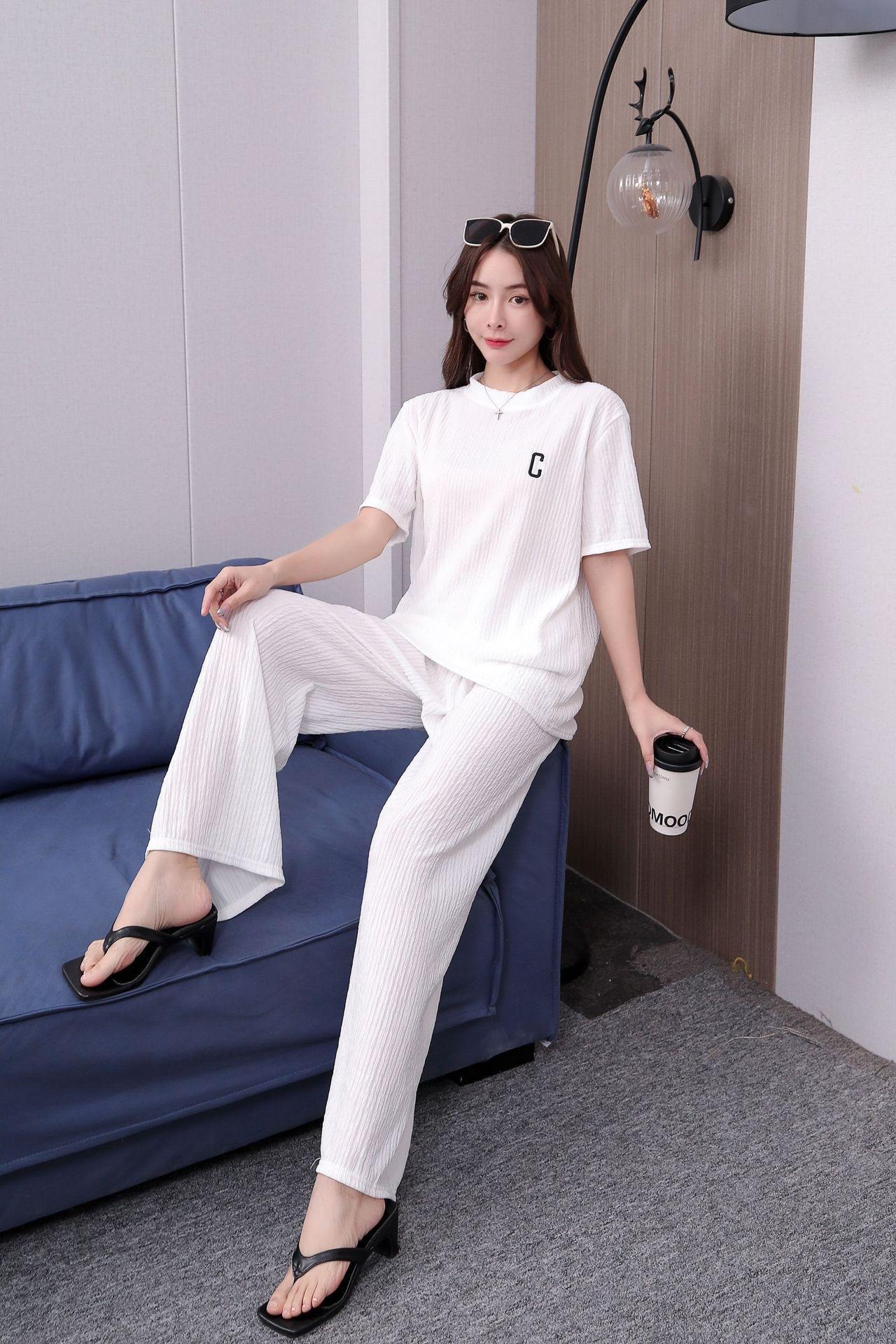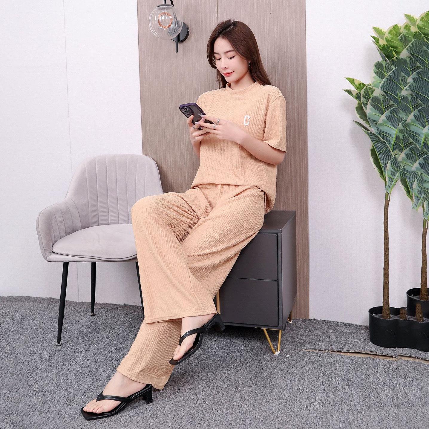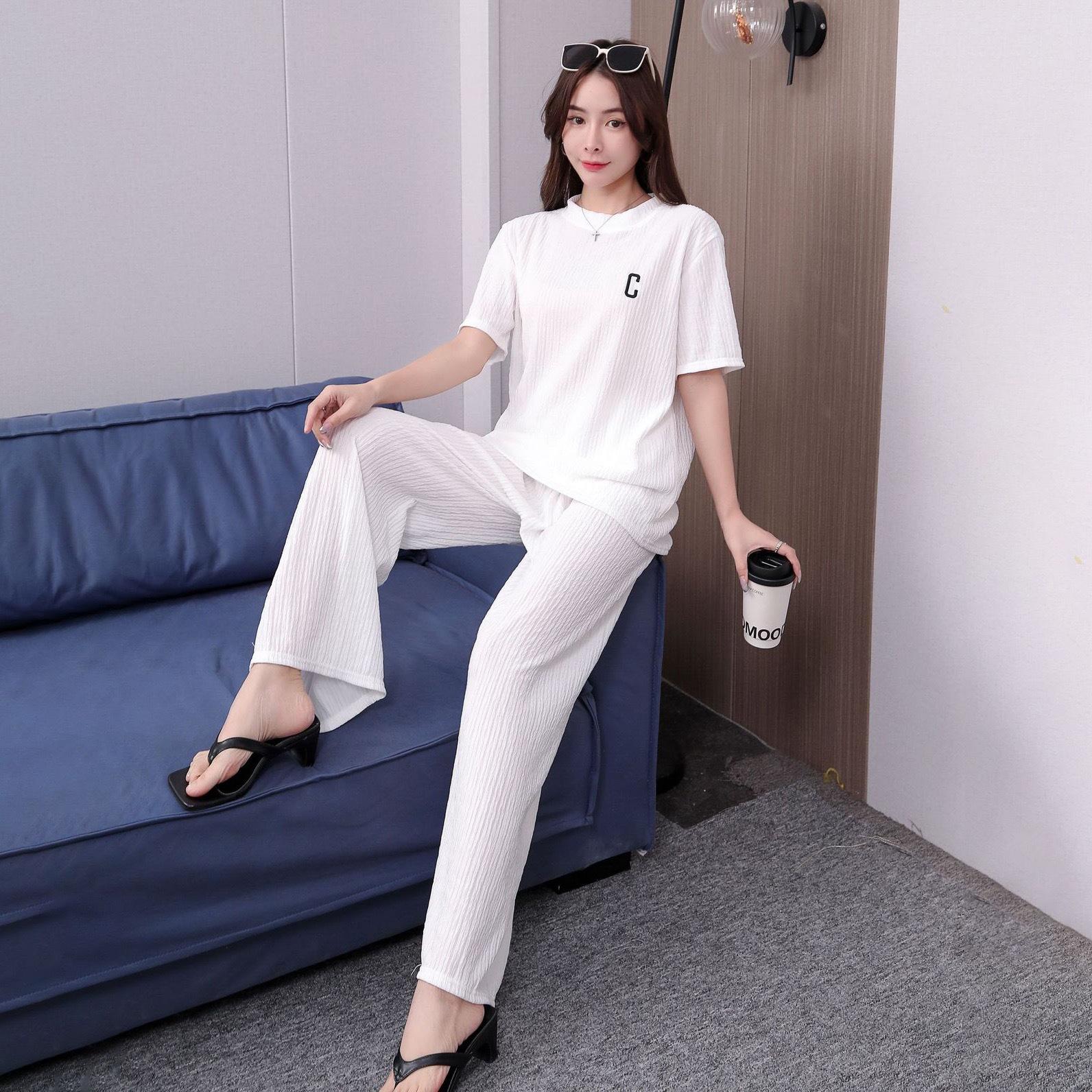 [Procesamiento de Personalización] Traje Chiba Comercio Exterior Explosiones Bordado de Letras Suelto de Dos Piezas Seda Helada Fino Ropa para el Hogar