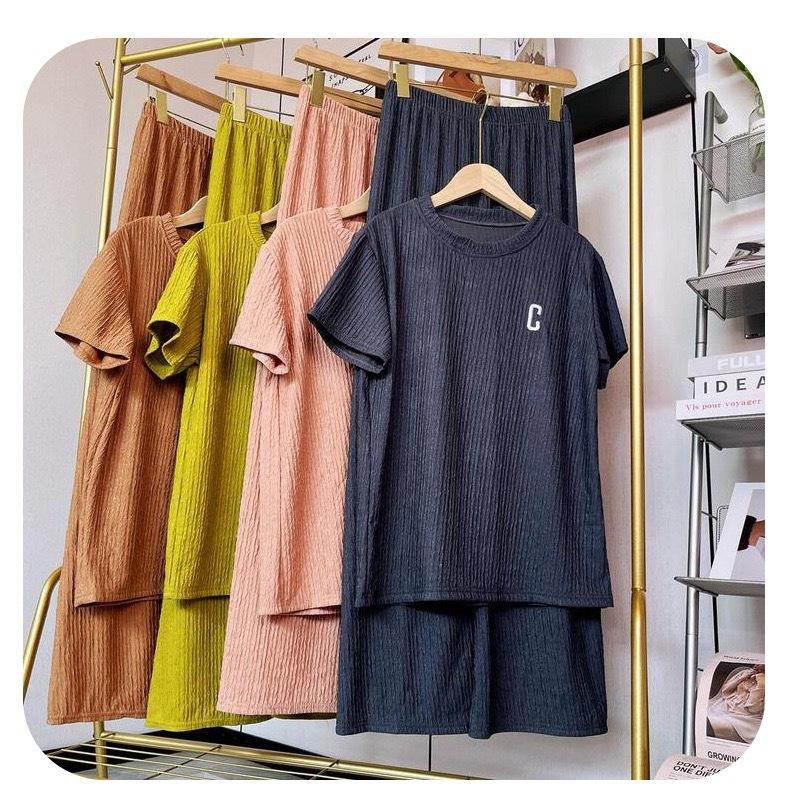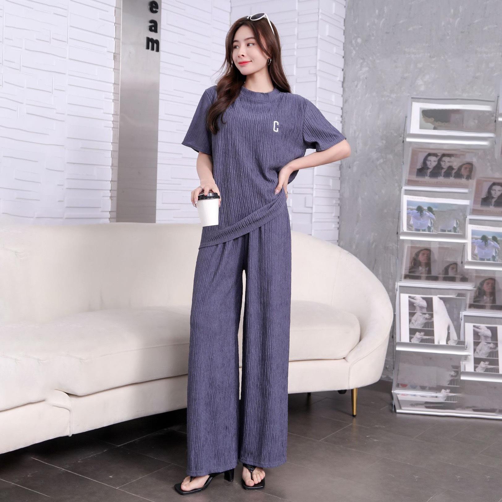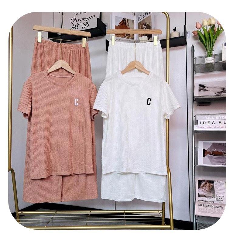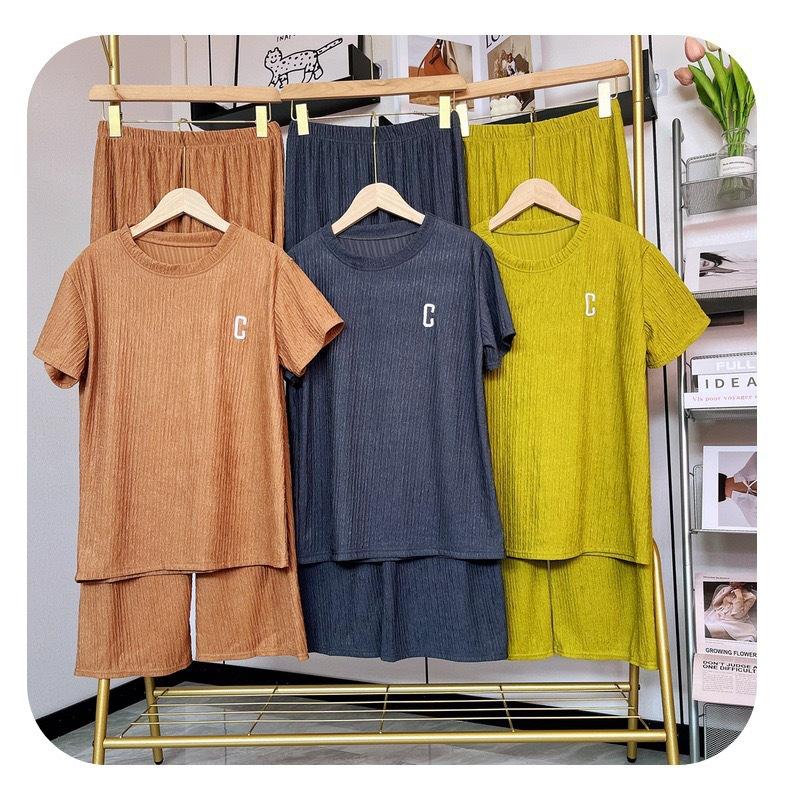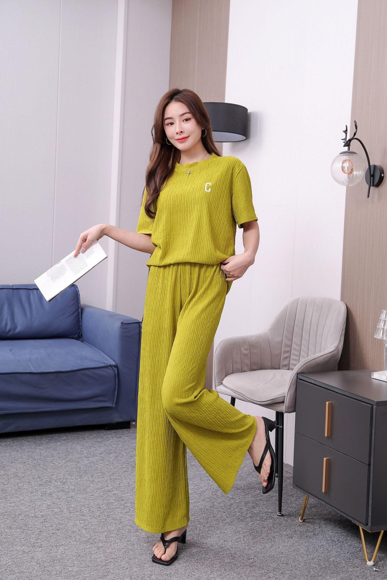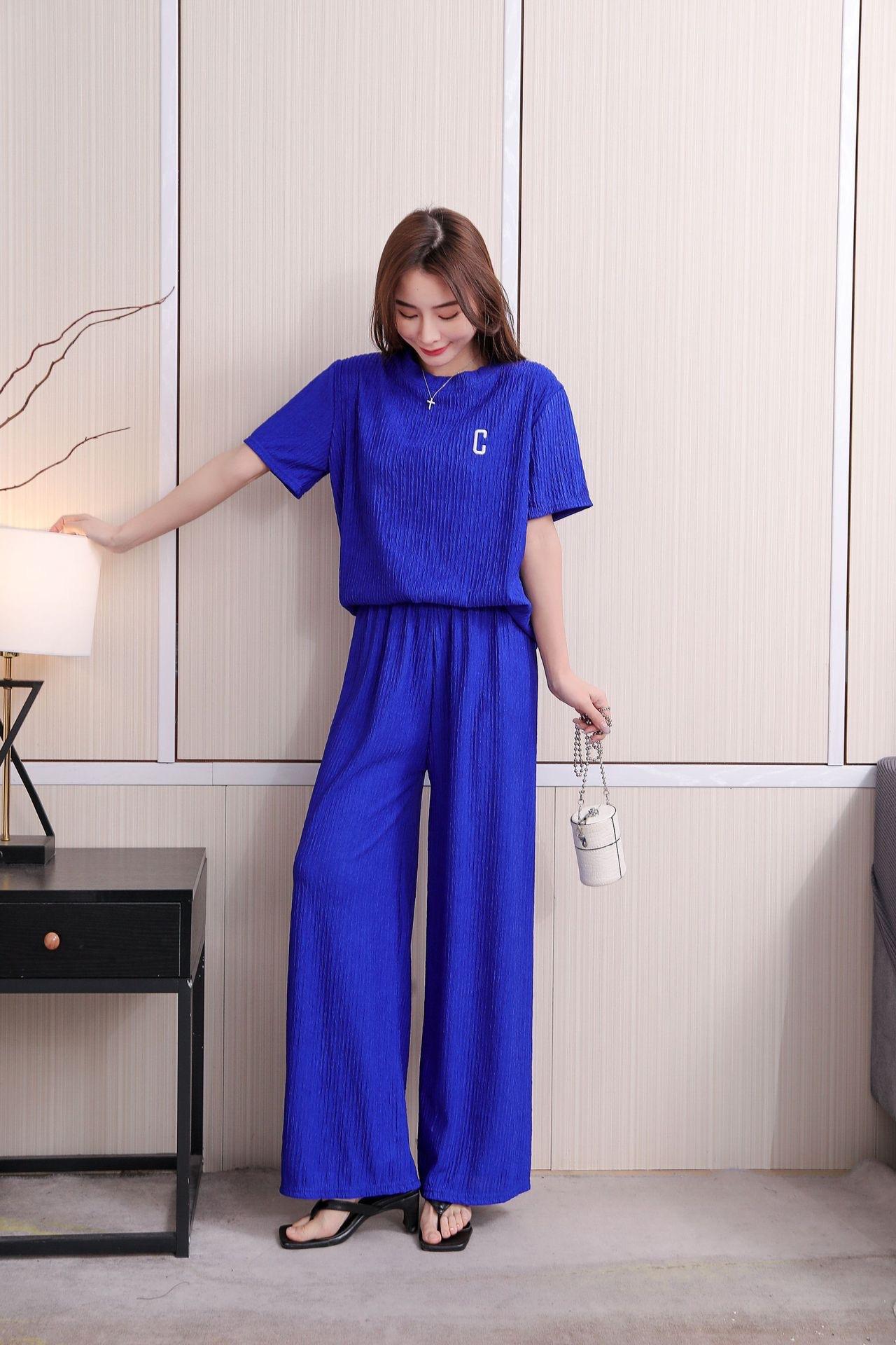 [Procesamiento de Personalización] Traje Chiba Comercio Exterior Explosiones Bordado de Letras Suelto de Dos Piezas Seda Helada Fino Ropa para el Hogar