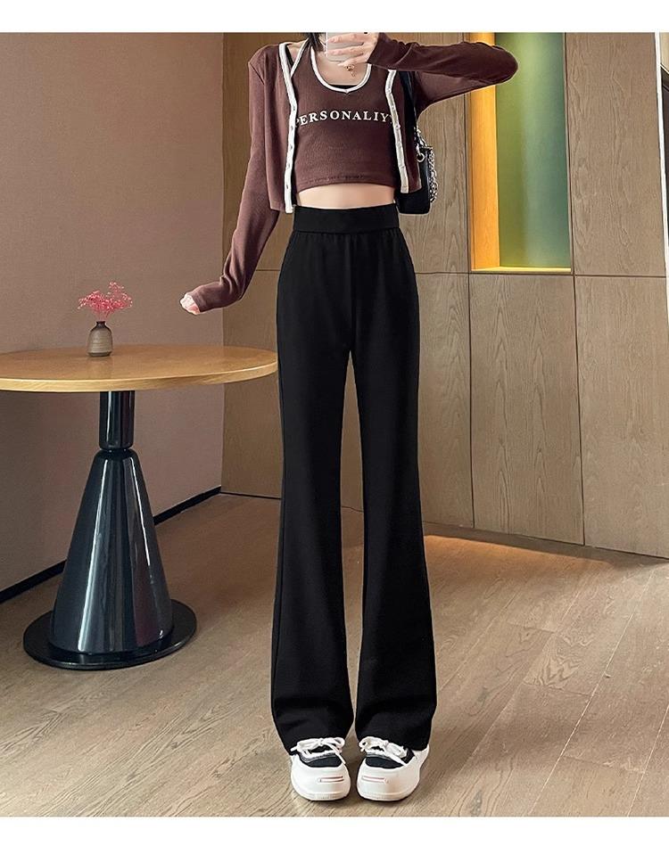 Pantalones Acampanados de Verano para Mujer de Estilo Americano de Cintura Alta 2025 Nuevos Delgados Casuales Adelgazantes de Pierna Ancha