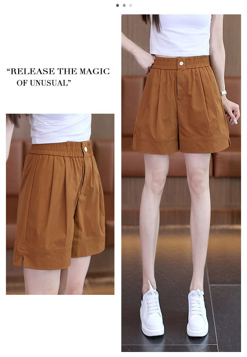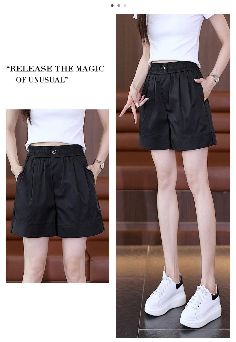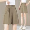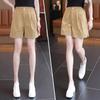 Shorts Casuales de Pierna Ancha de Seda de Hielo para Mujer Verano Delgados 2025 Nuevos de Cintura Alta Sueltos Modernos Ajustados Shorts Tres Cuartos