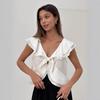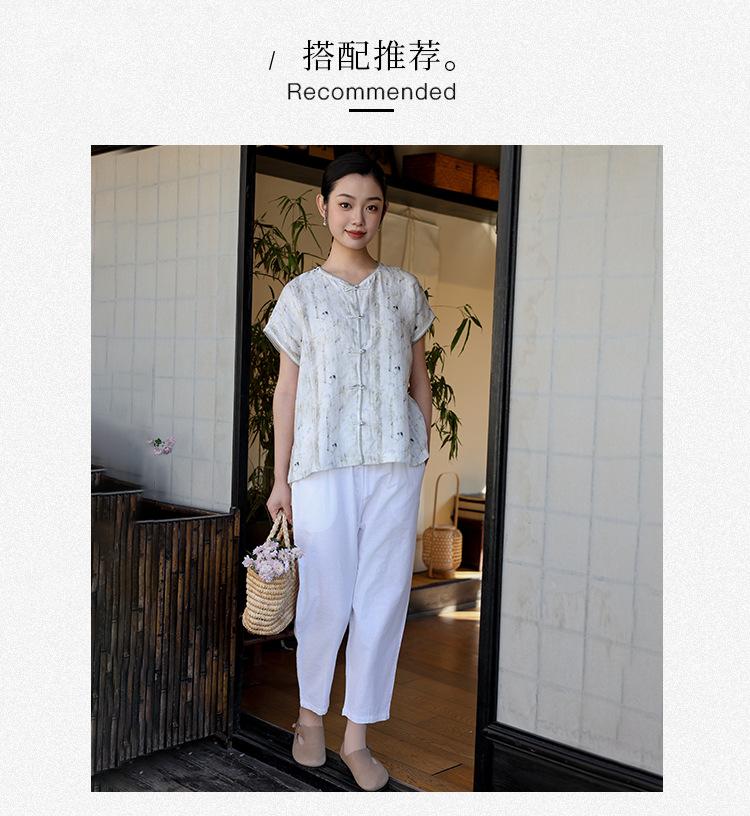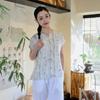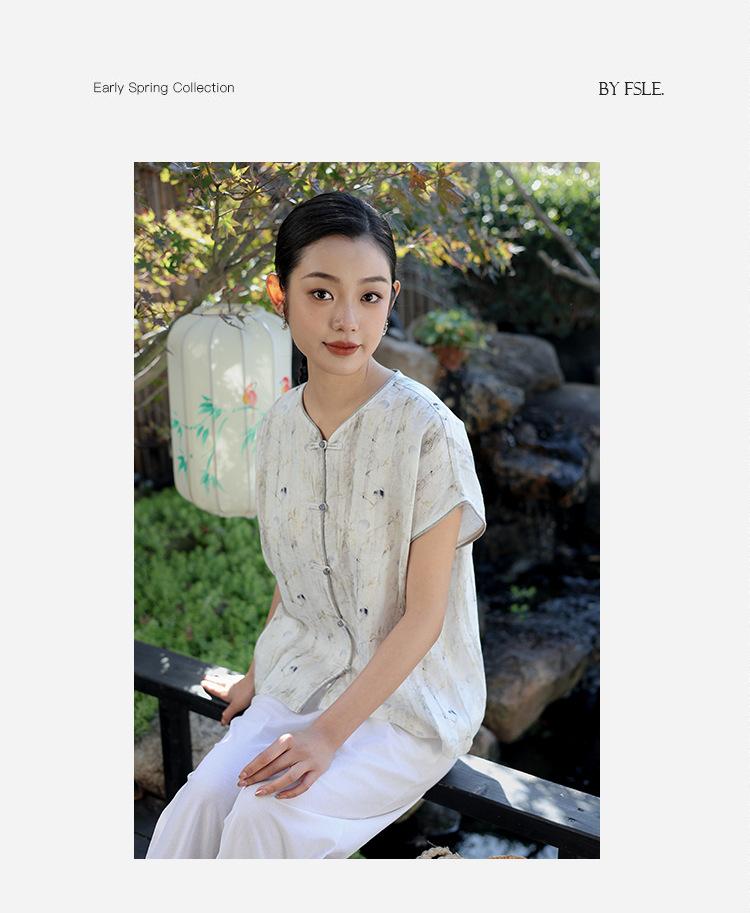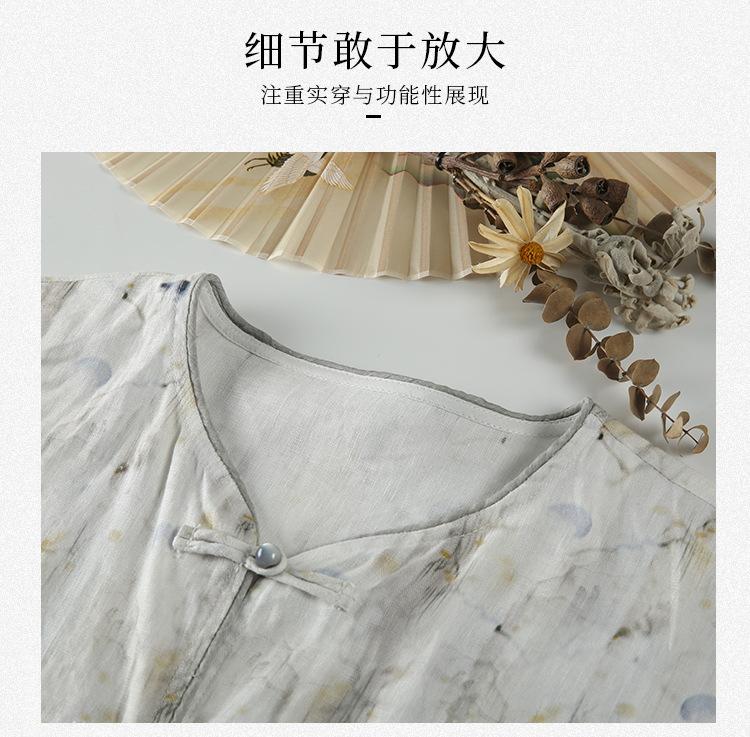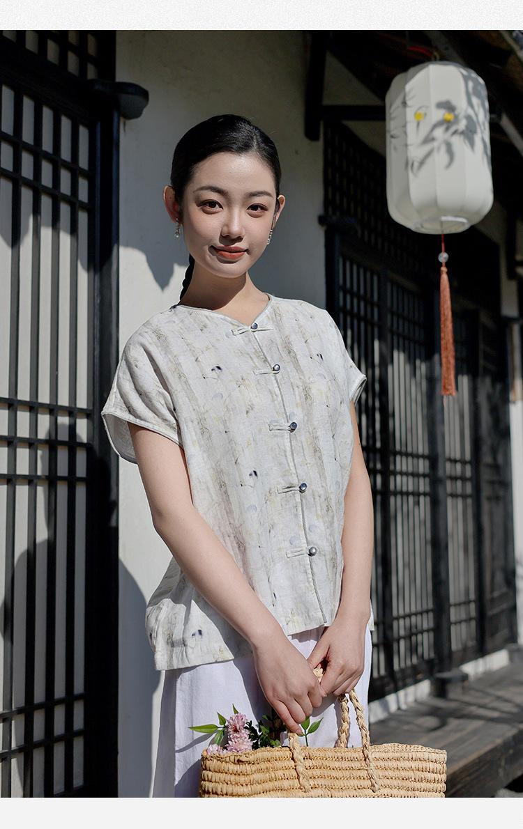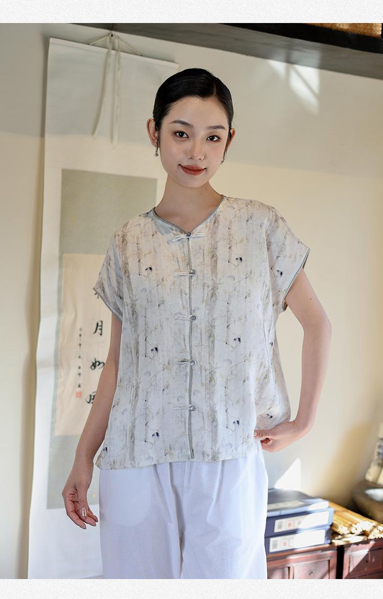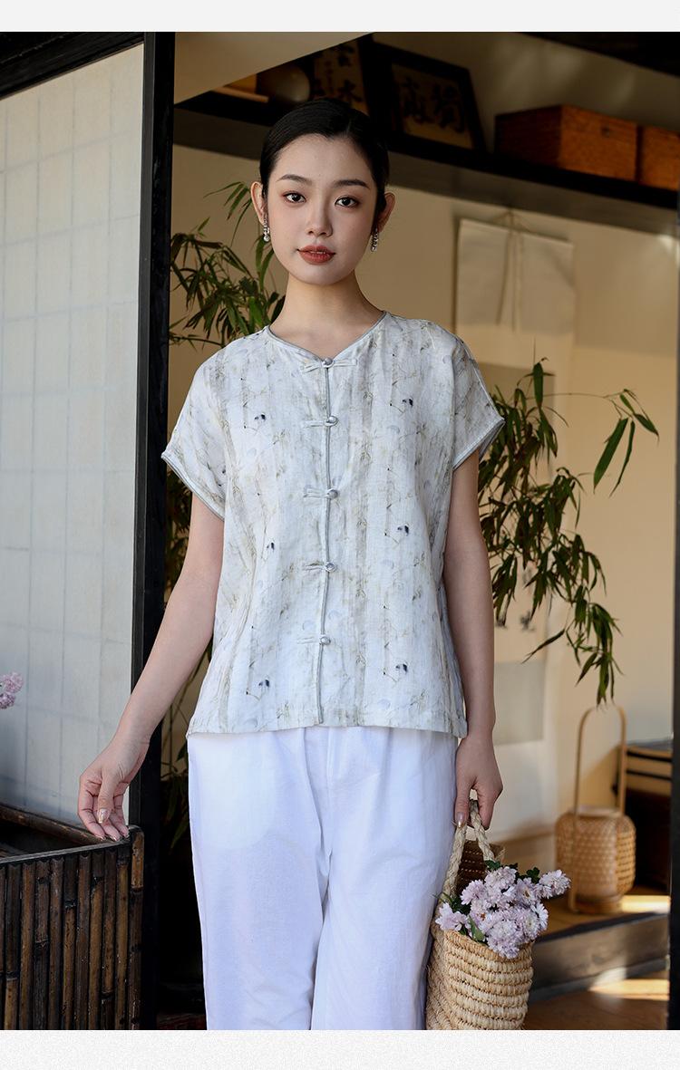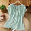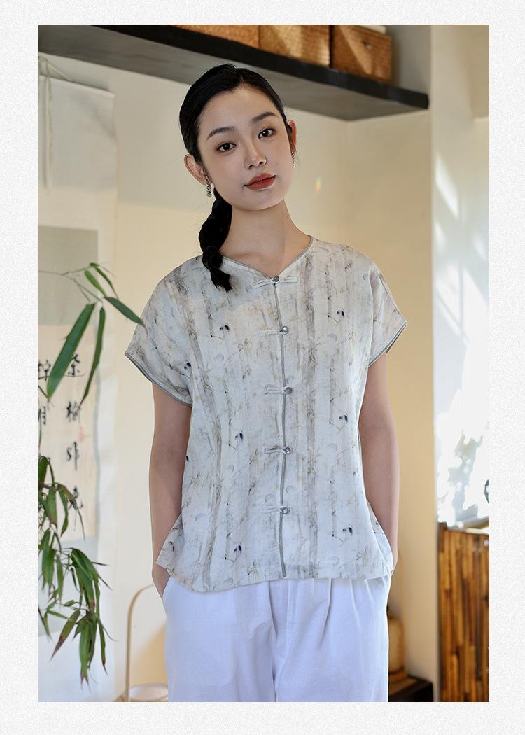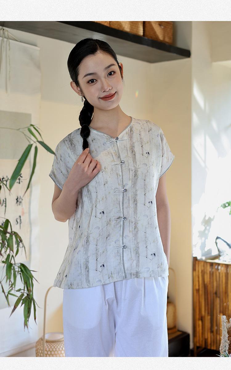 Nuevo Verano 2025 para Mujer Chino Nuevo Lino Manga Corta Top Polo para Mujer Lunares Cuello en V Cárdigan Diseño Sentido Camiseta Venta al por Mayor