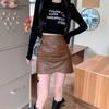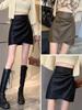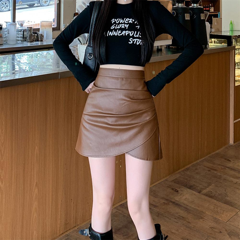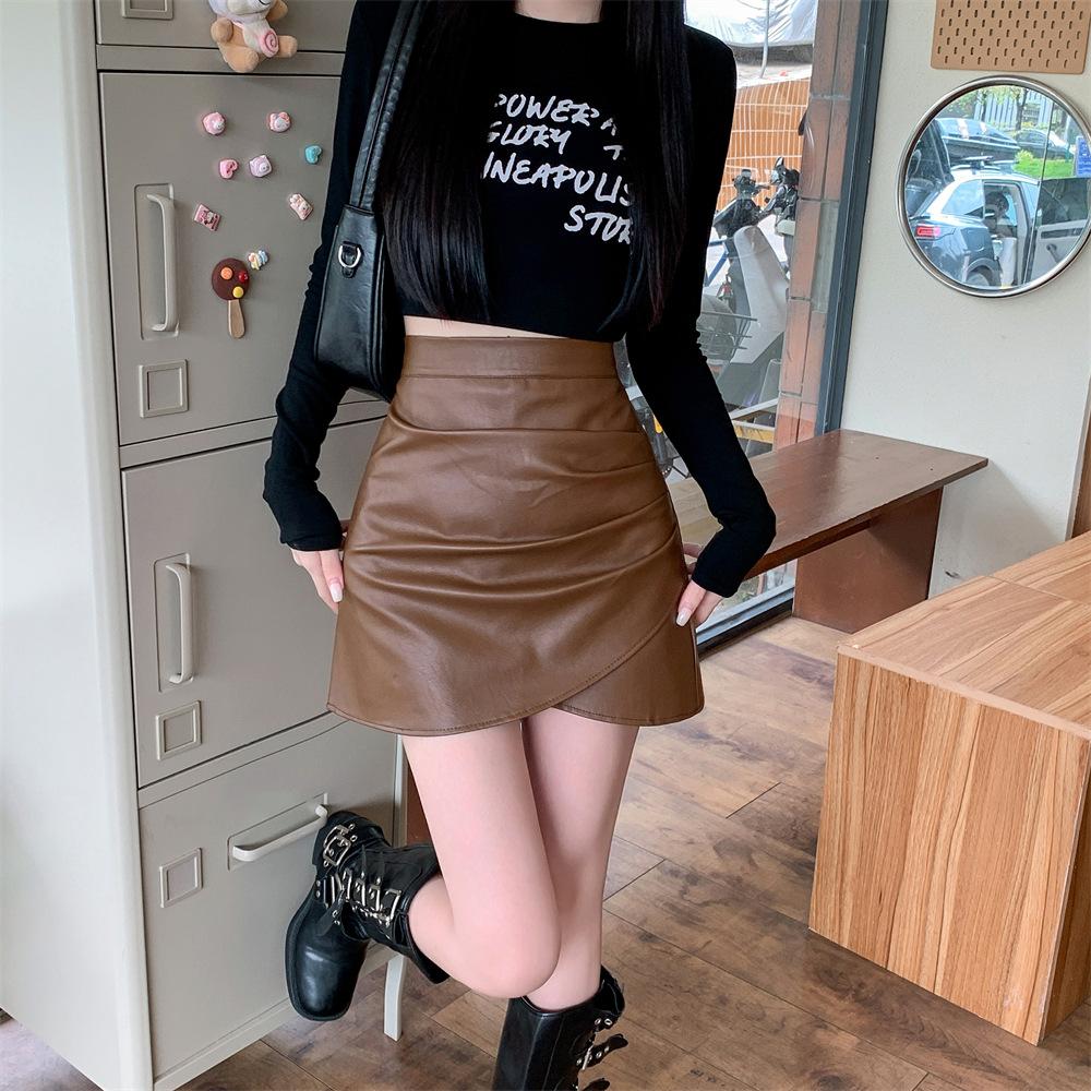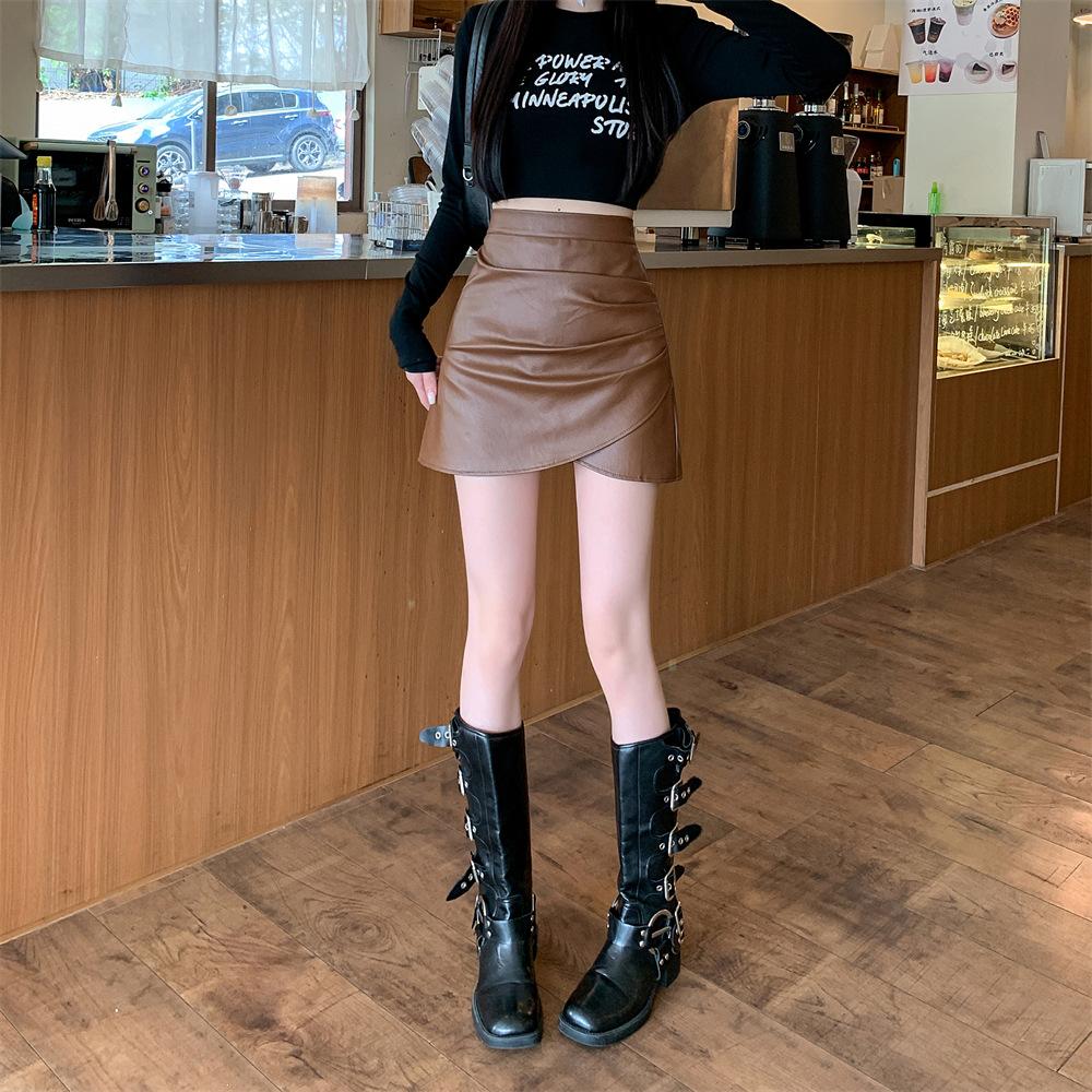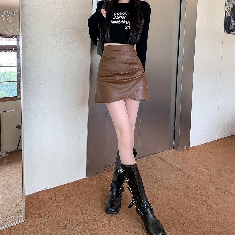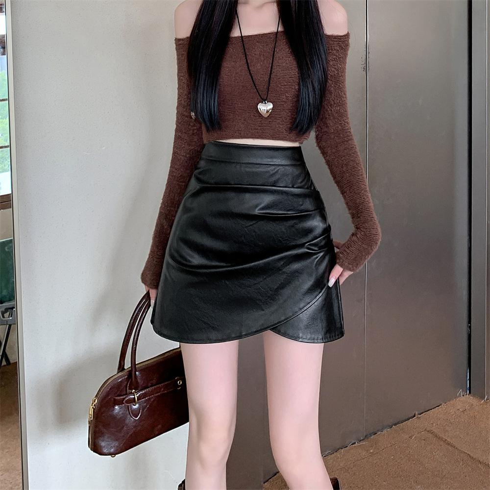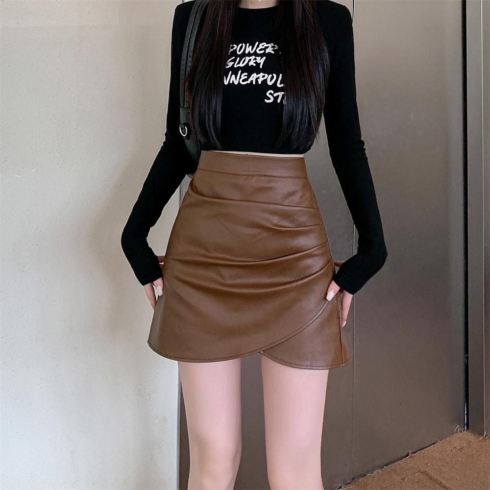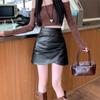 Falda de cuero pequeña falda mujer primavera y verano 2025 nueva cintura alta línea A negra irregular falda de cadera
