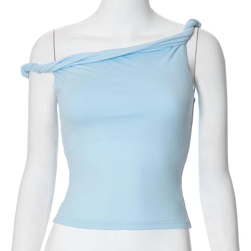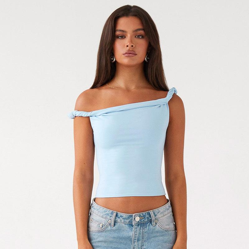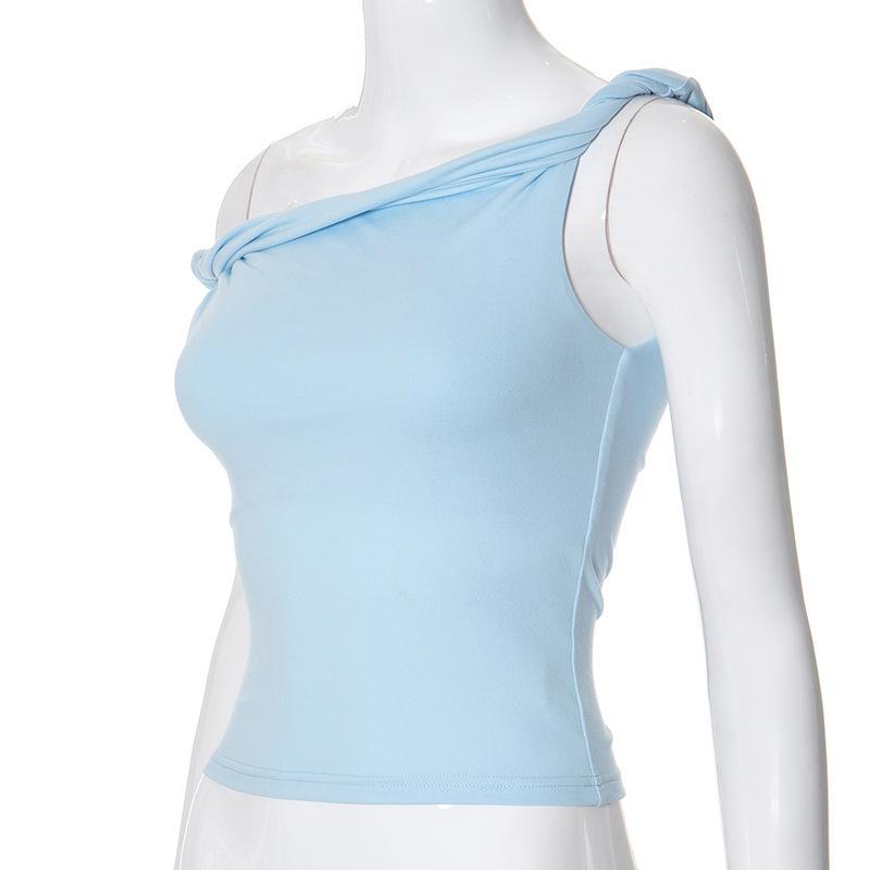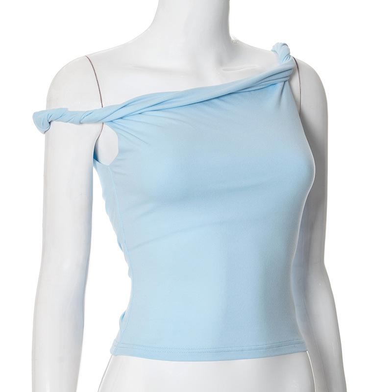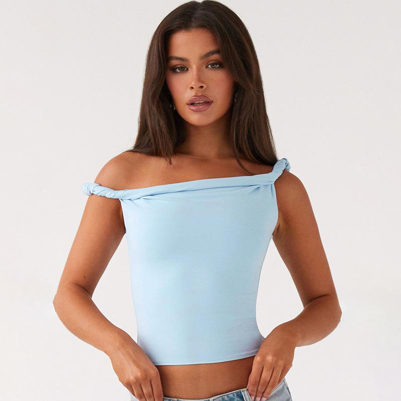 Ropa Nueva de Estilo Europeo y Americano Transfronterizo para Mujer, Color Puro, Slim, Moda, Tirantes Torcidos, Cuello Barco, Sin Mangas, Sexy, Camiseta sin Espalda