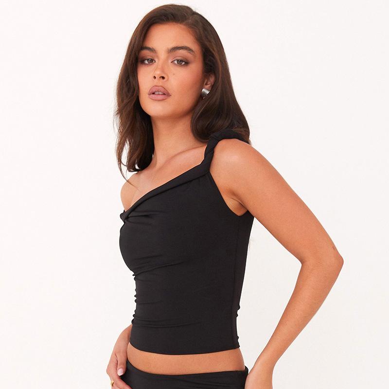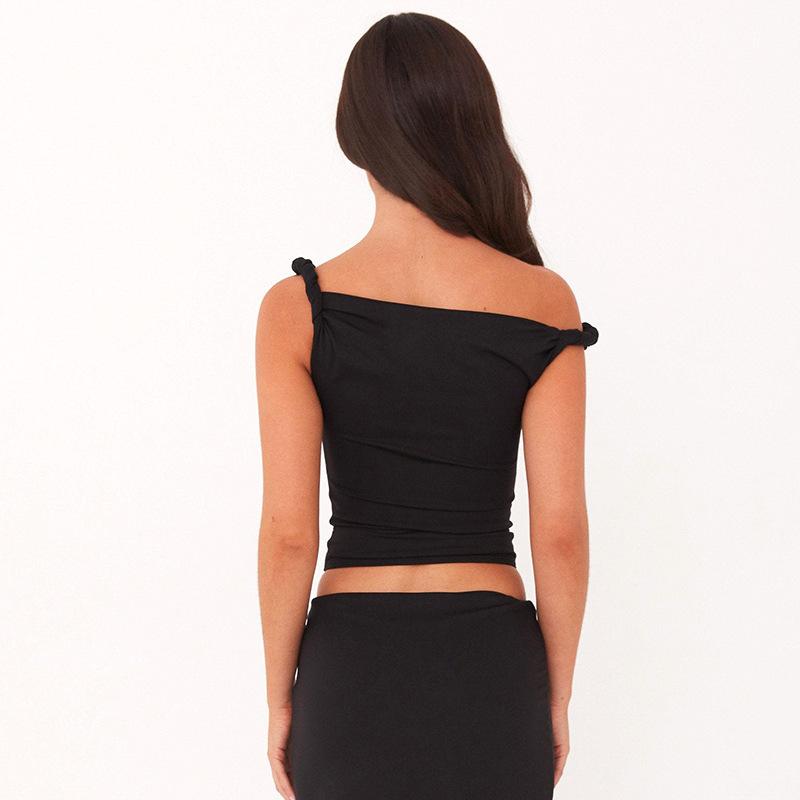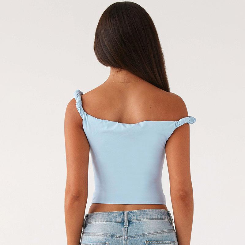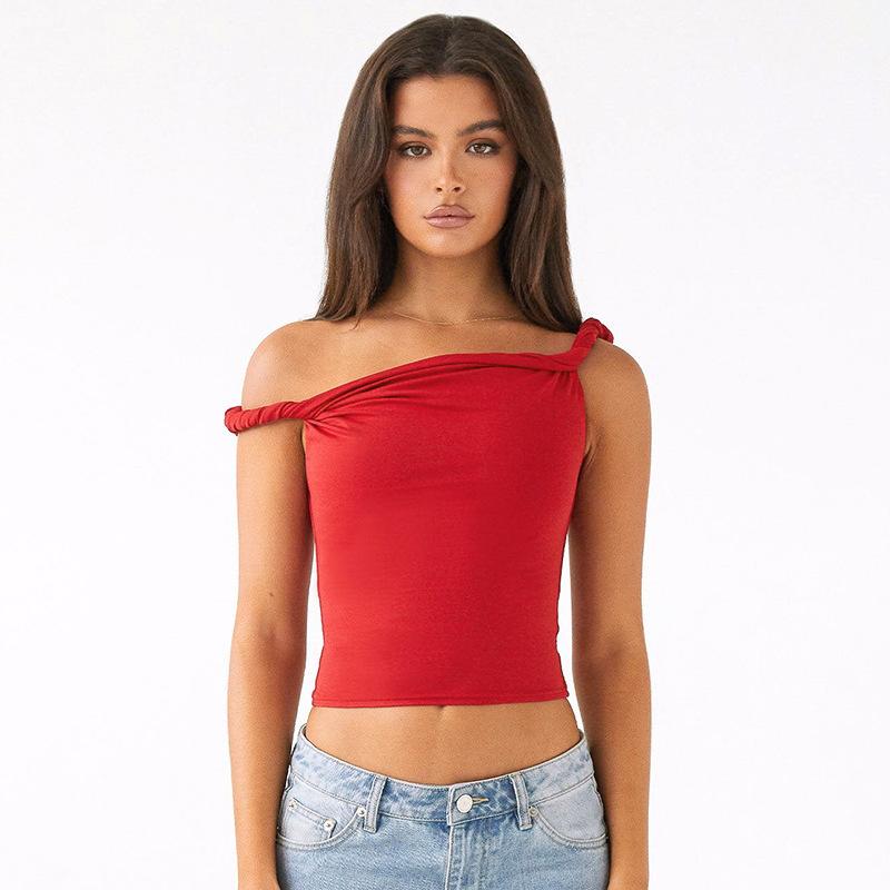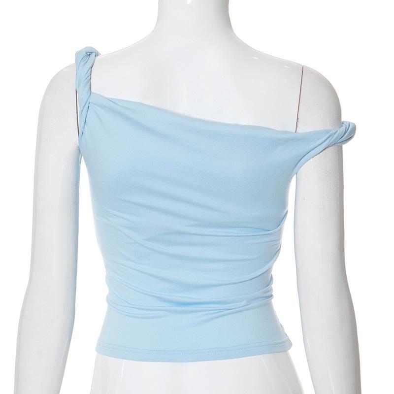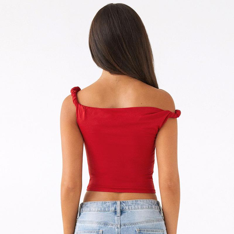 Ropa Nueva de Estilo Europeo y Americano Transfronterizo para Mujer, Color Puro, Slim, Moda, Tirantes Torcidos, Cuello Barco, Sin Mangas, Sexy, Camiseta sin Espalda