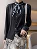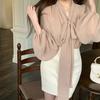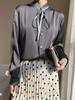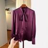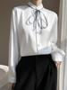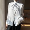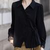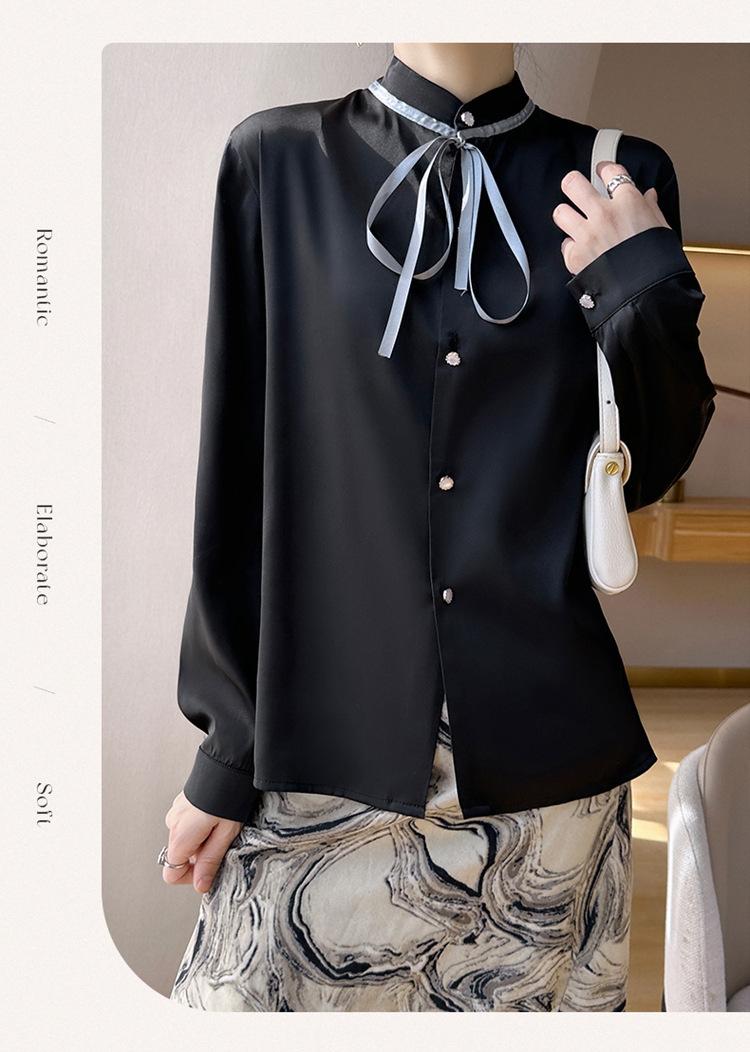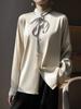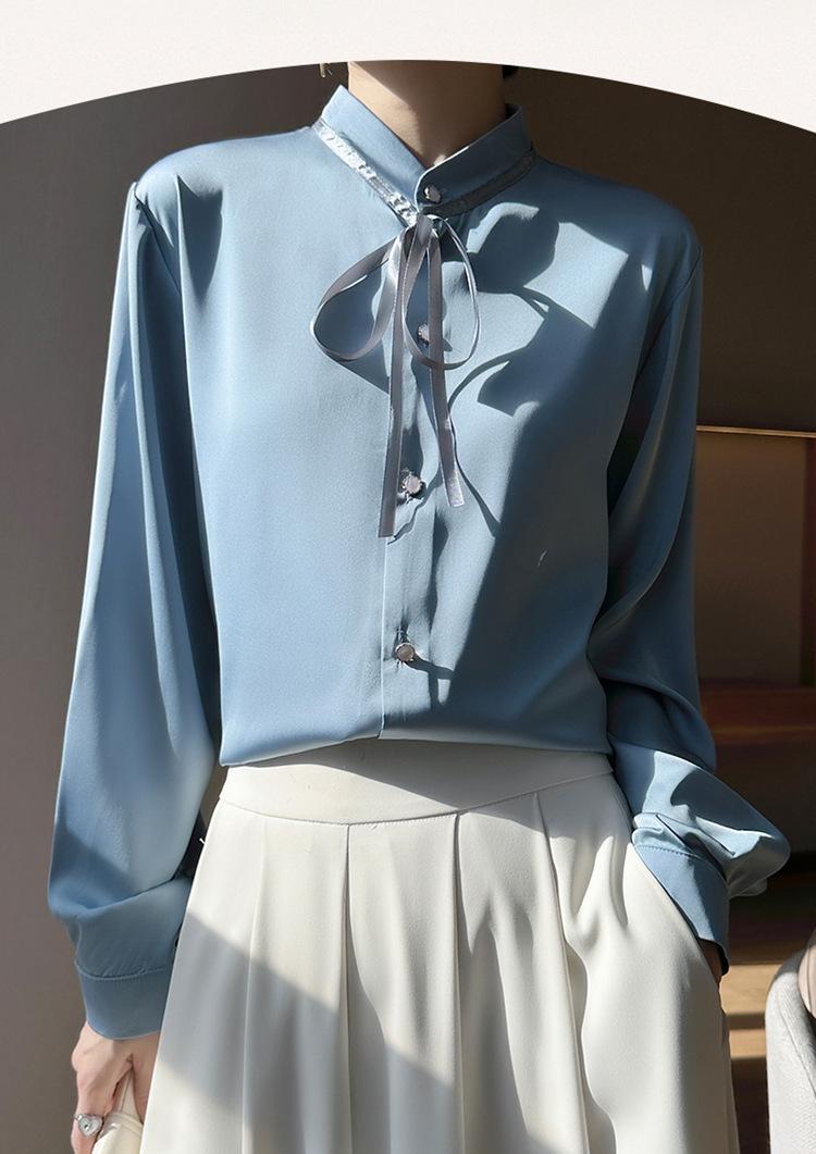 Camisa de verano de manga larga con cuello mao y hebilla para mujer, nuevo diseño de primavera y verano 2025 con lazo, camisa de moda de seda helada