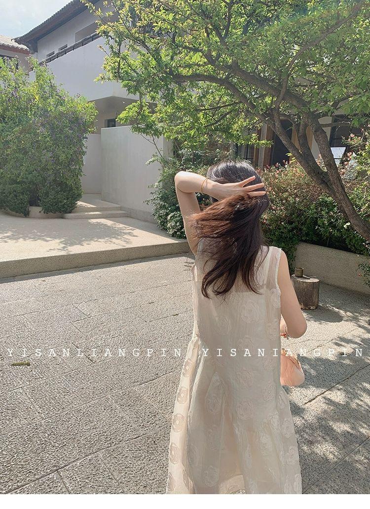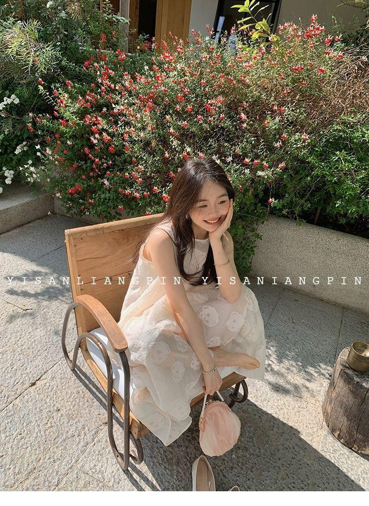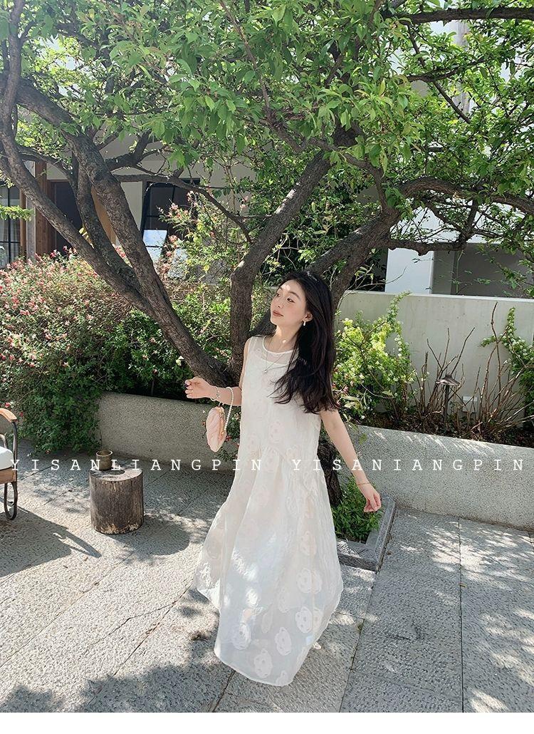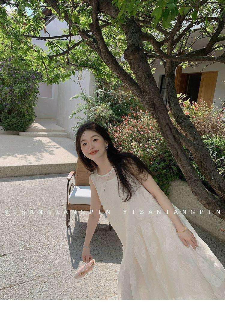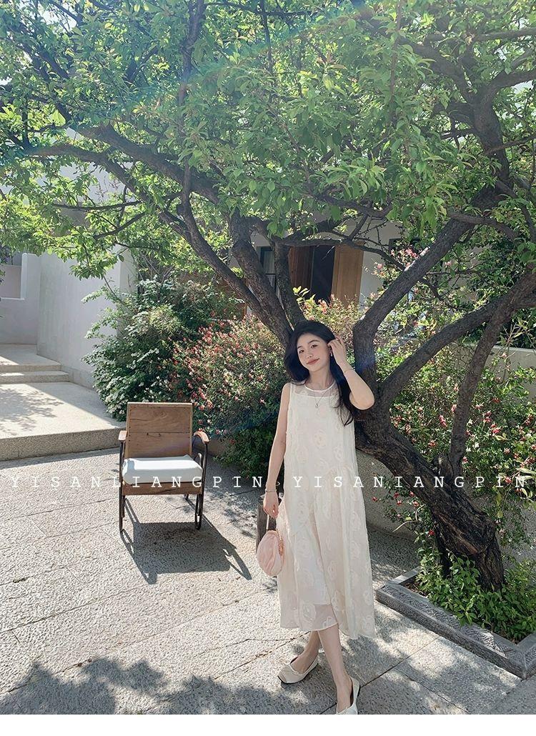 Chic Francés Dulce Elegante Petite Vestido sin Mangas para Mujer Verano Reductor de Edad Look Holgado Adelgazante Vestido Chaleco