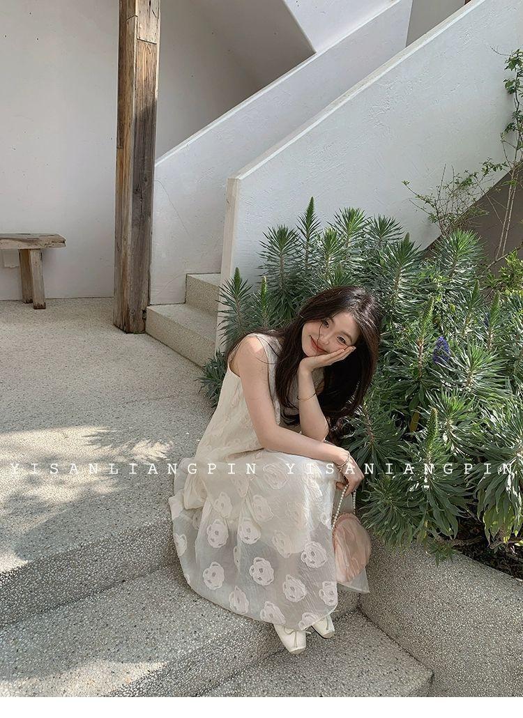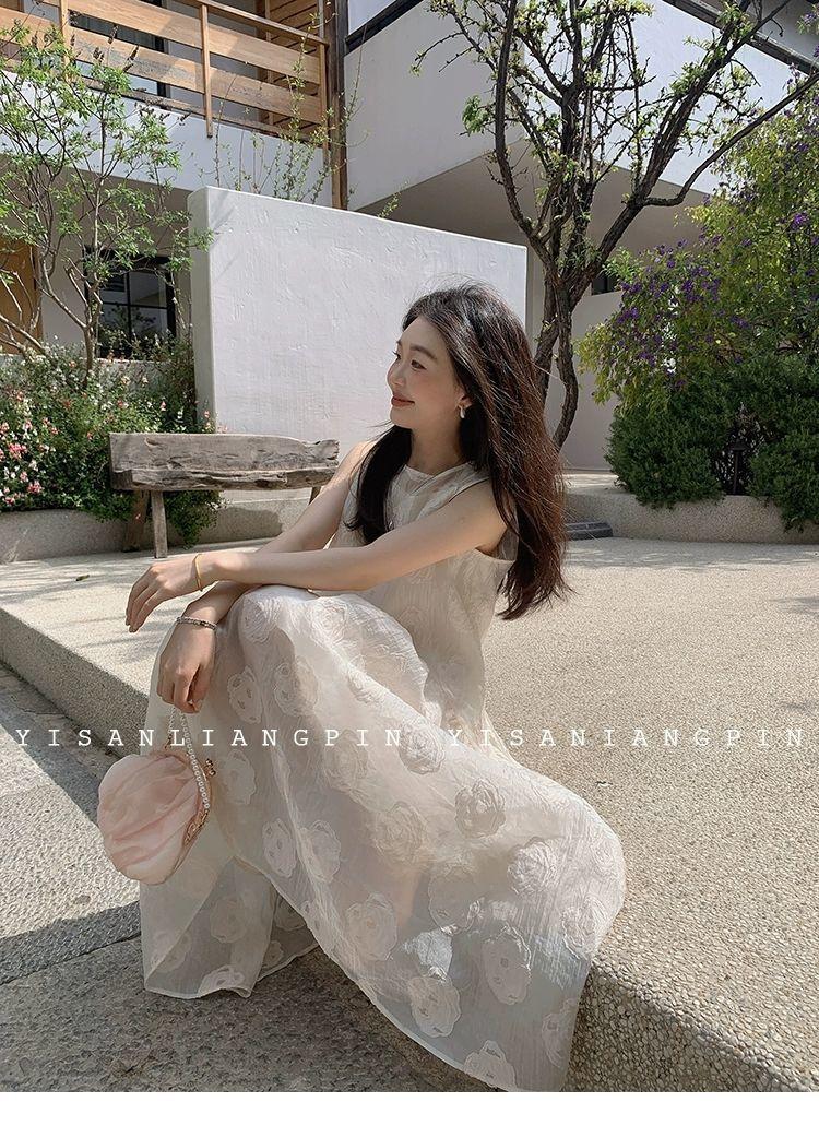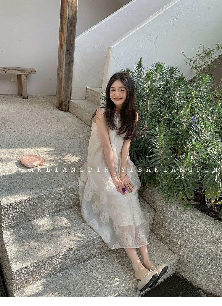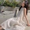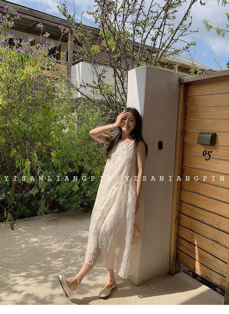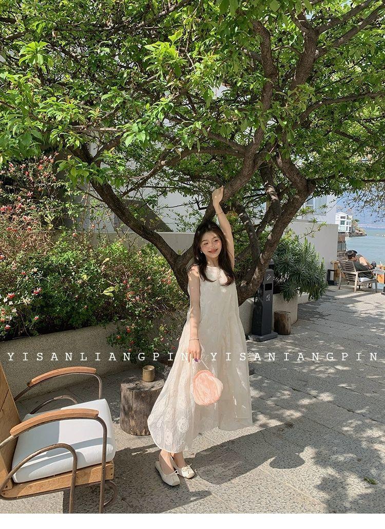 Chic Francés Dulce Elegante Petite Vestido sin Mangas para Mujer Verano Reductor de Edad Look Holgado Adelgazante Vestido Chaleco