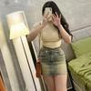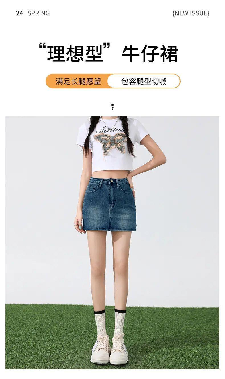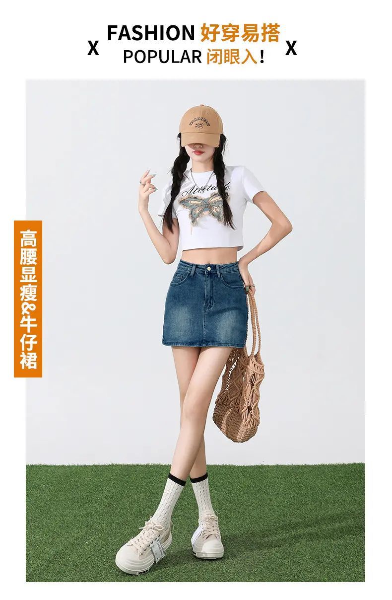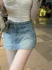 Falda Corta de Mezclilla Forrada Sexy para Mujer Verano 2025 Chica Caliente Nueva Adelgazante Cintura Alta Falda Línea A Estilo Caliente Elástica