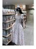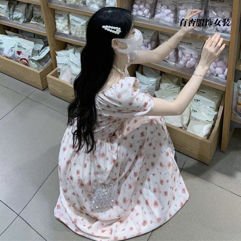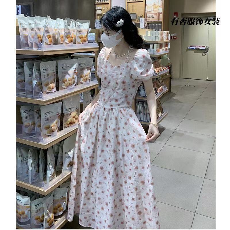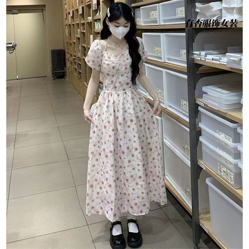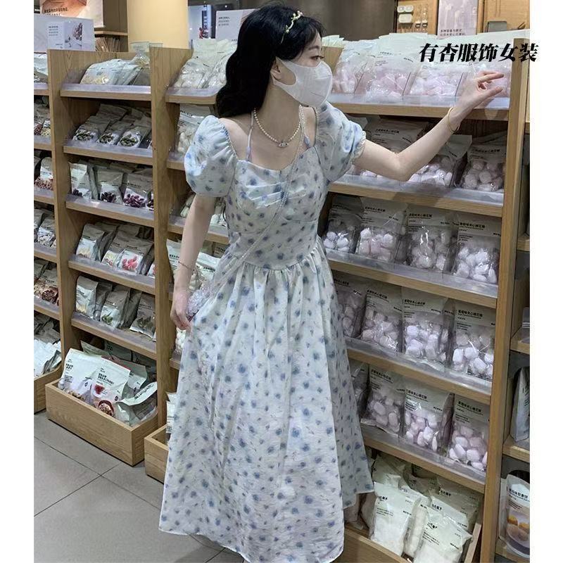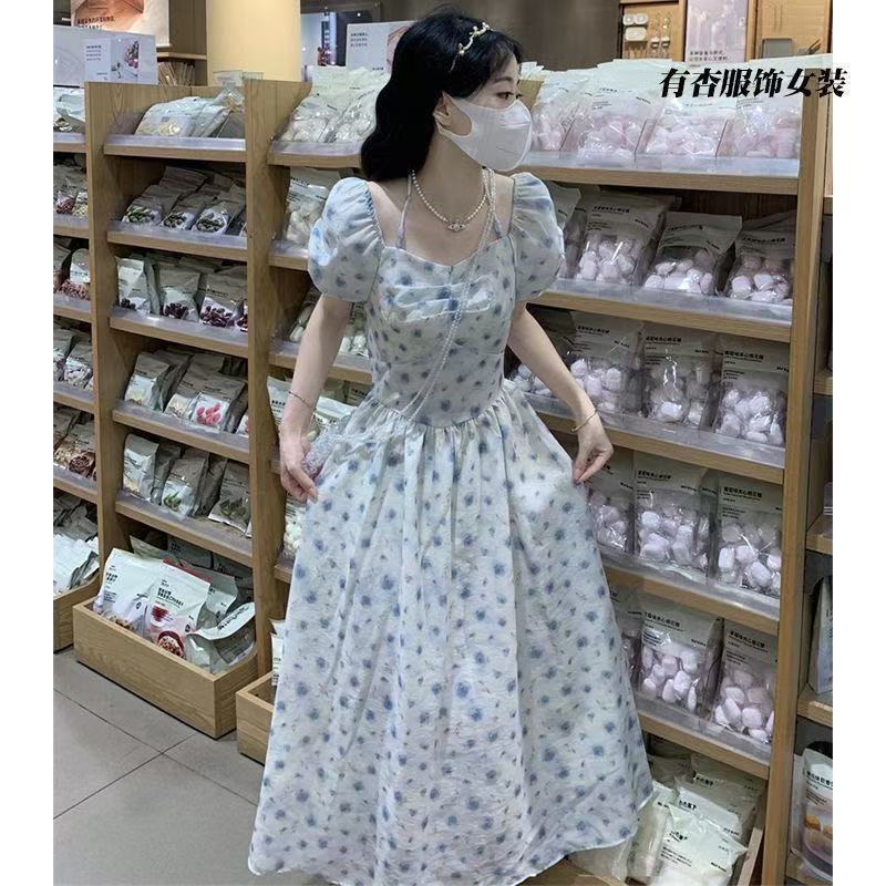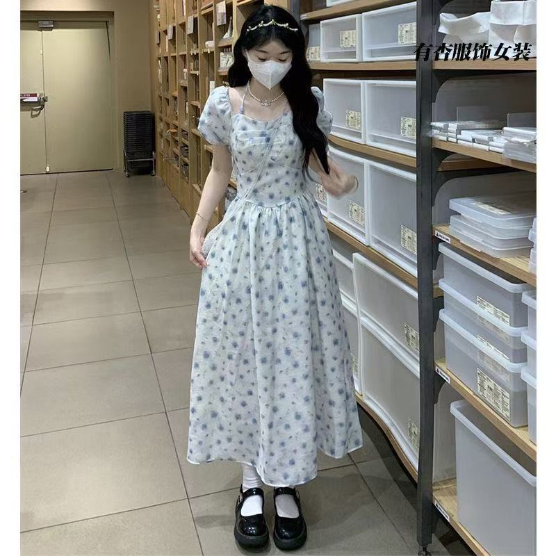 Vestido Floral Primer Amor Estilo Francés para Mujer, Vestido de Verano con Cuello Halter y Lazo, Dulce y Delicado Vestido Primer Amor por Encima de la Rodilla