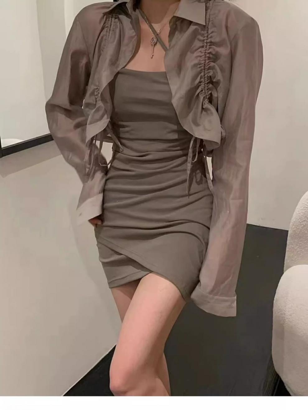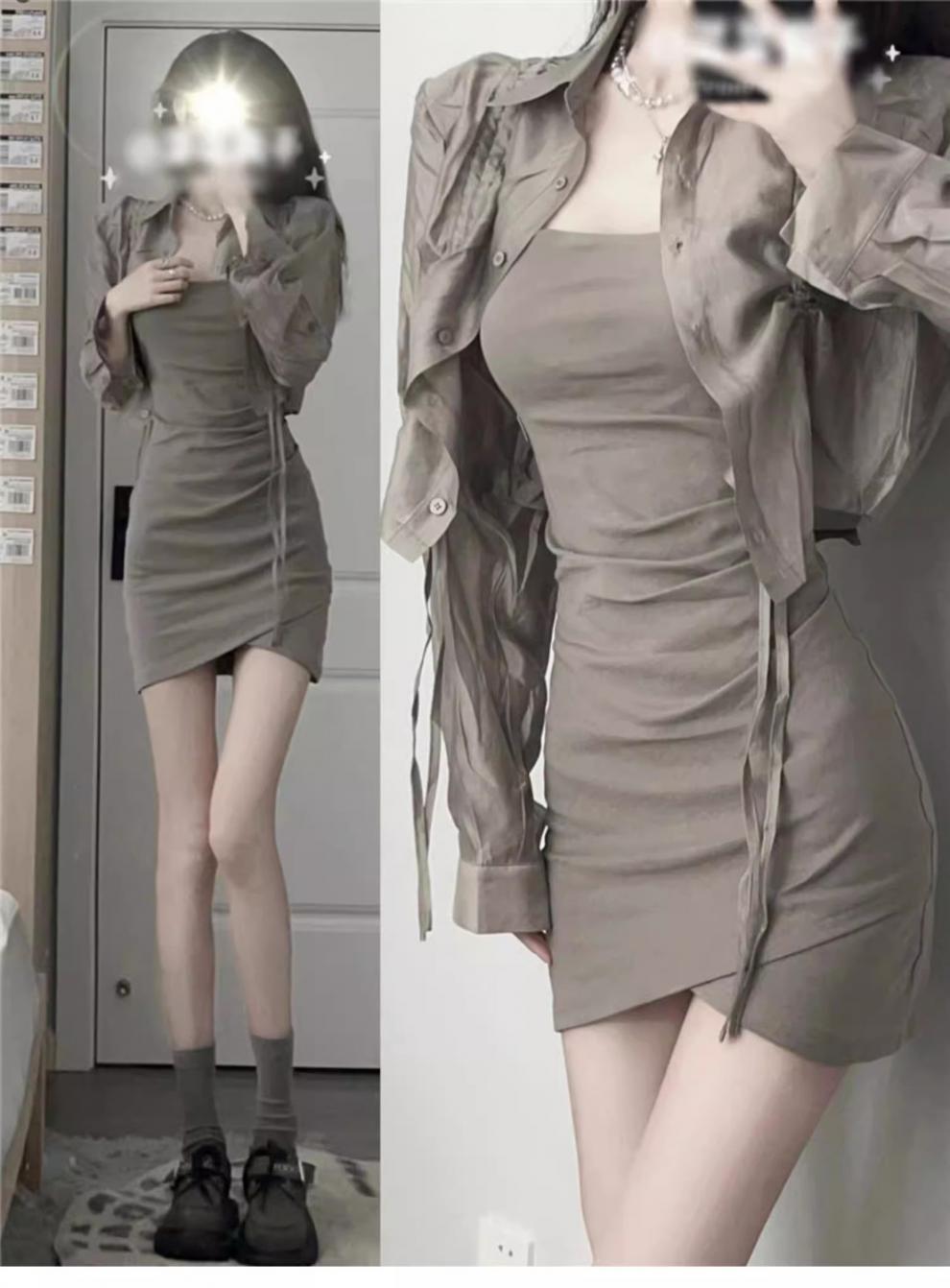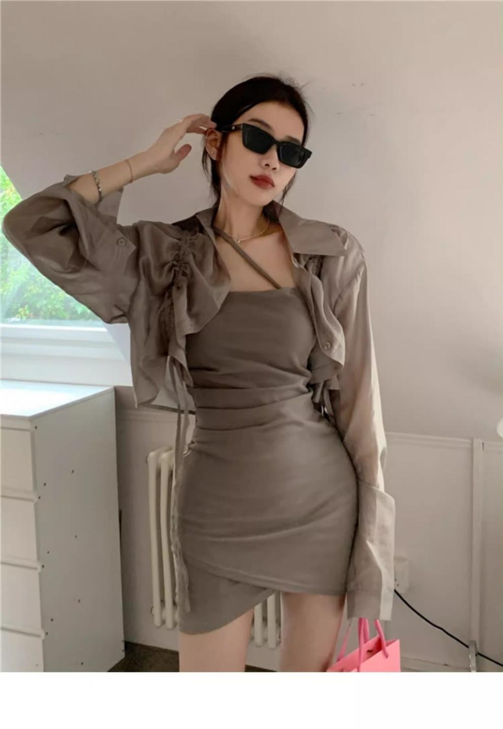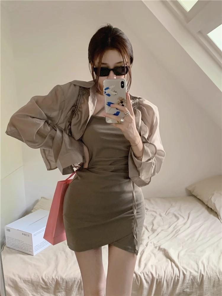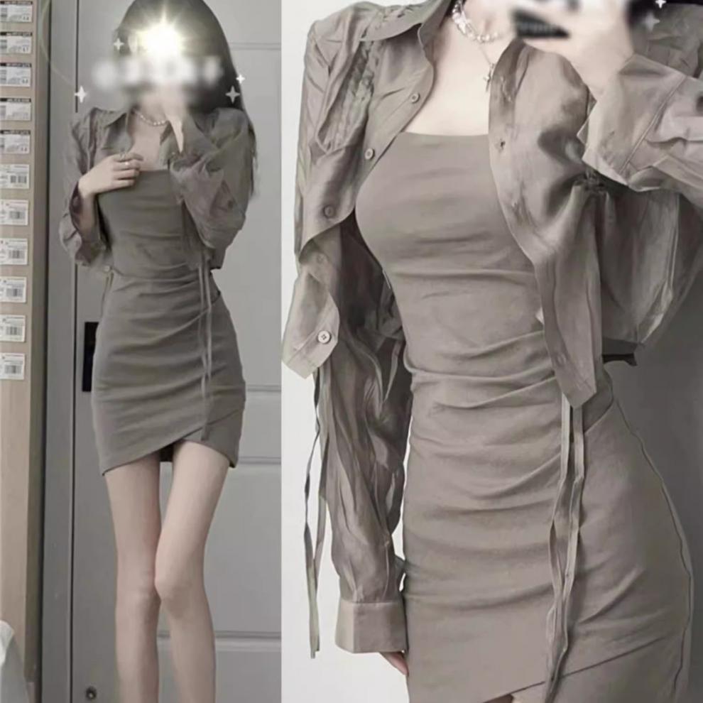 Verano Nuevo Estilo Pura Lujuria Traje de Falda con Tirantes para Chica Caliente Adelgazante Protección Solar Cárdigan Vestido con Tirantes Conjunto de Dos Piezas