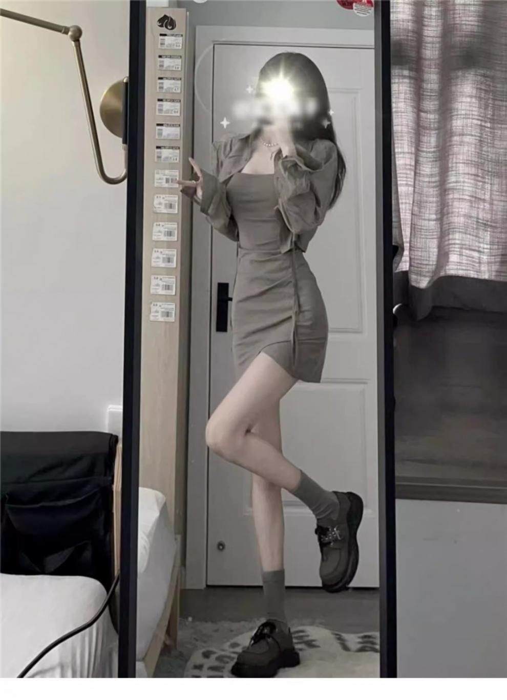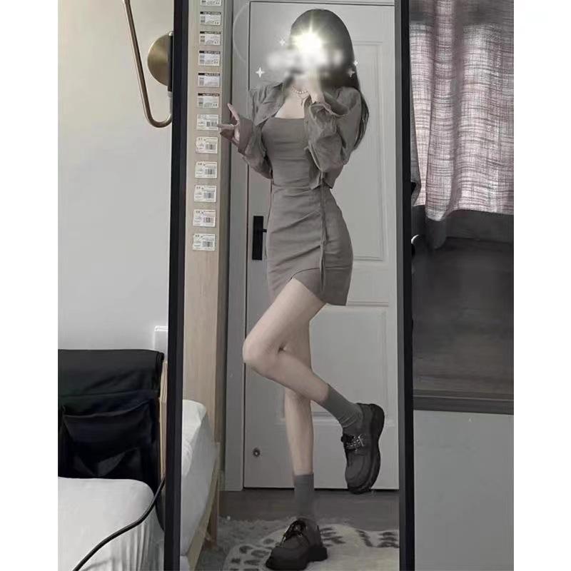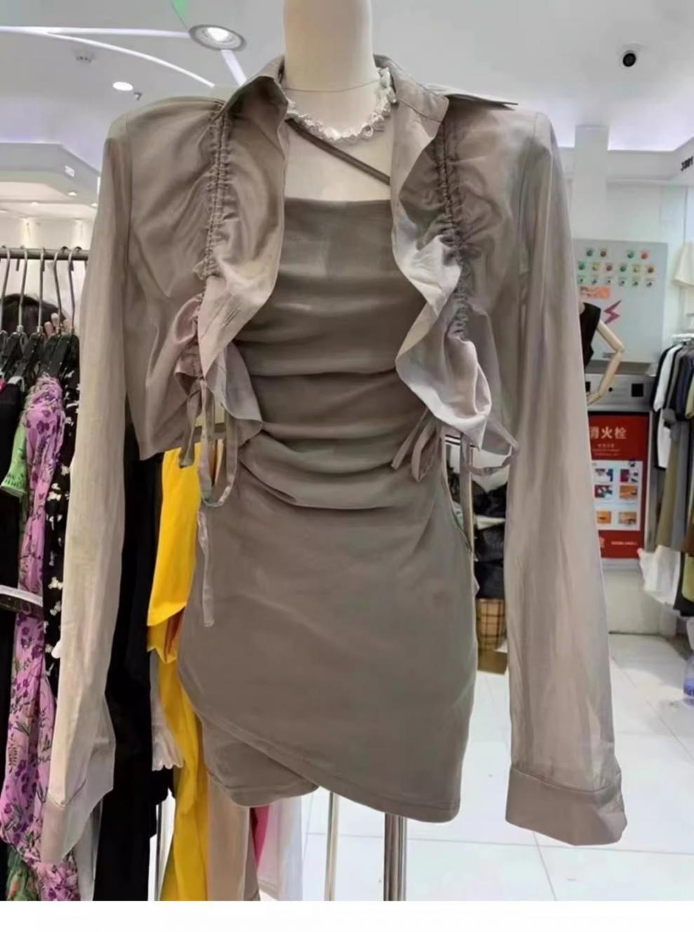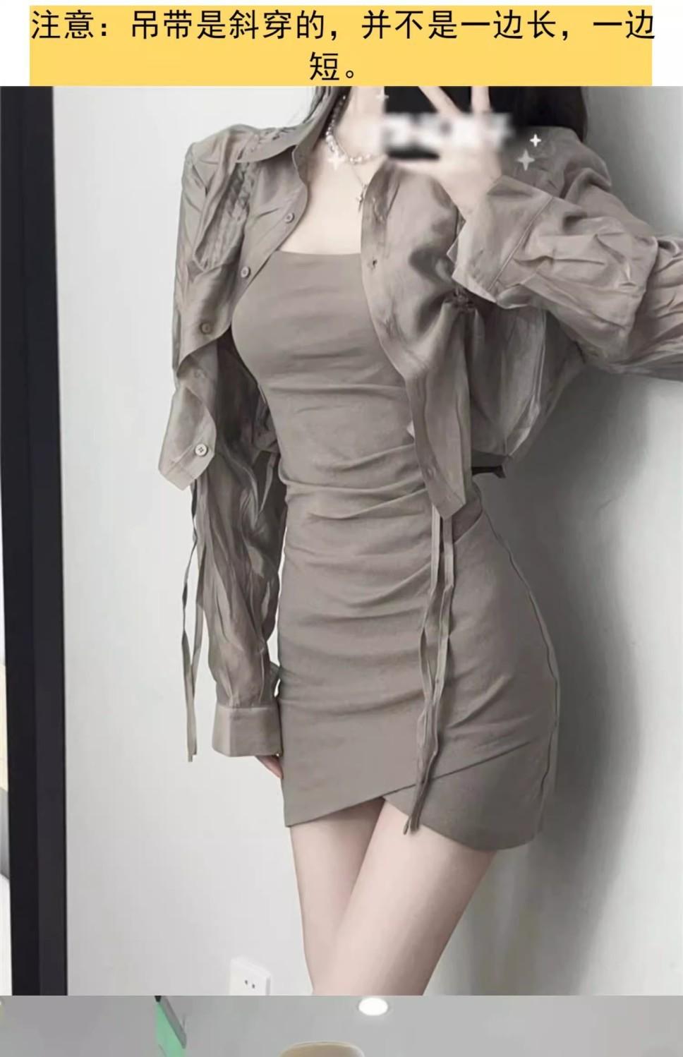 Verano Nuevo Estilo Pura Lujuria Traje de Falda con Tirantes para Chica Caliente Adelgazante Protección Solar Cárdigan Vestido con Tirantes Conjunto de Dos Piezas