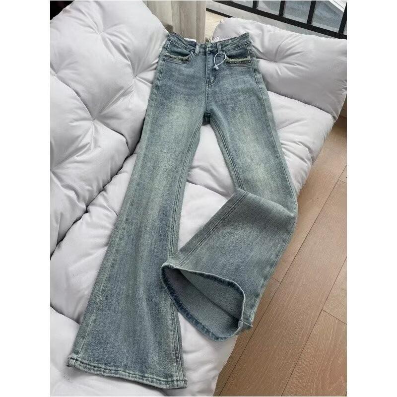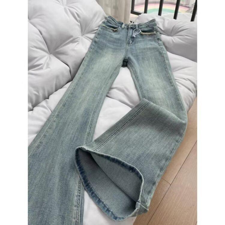 Jeans Acampanados Adelgazantes de Cintura Alta para Mujer Modernos Versátiles 2025 Verano Nuevo Simple Retro Pantalones Acampanados