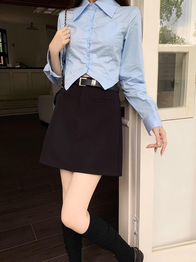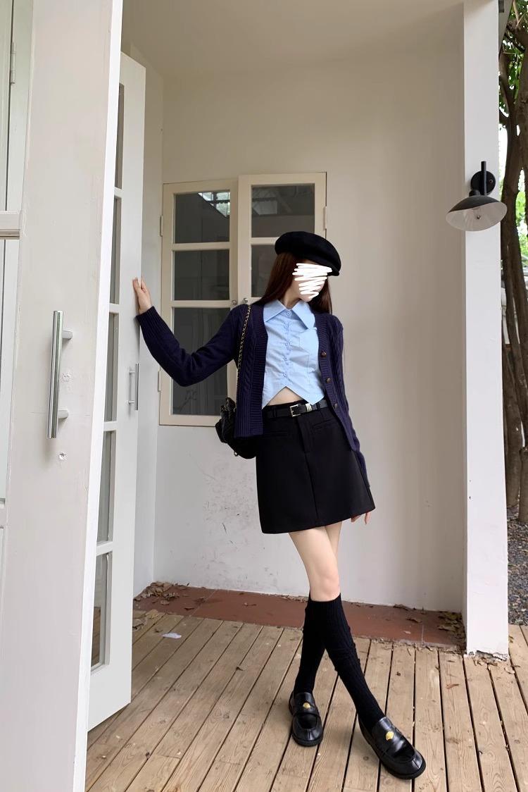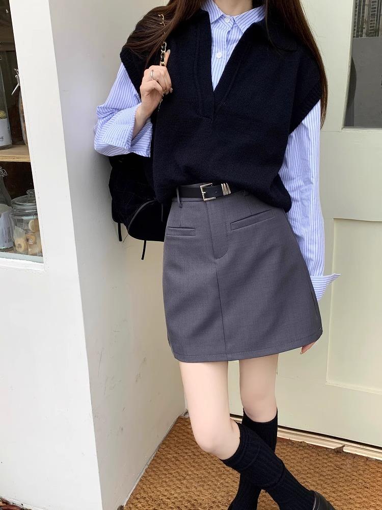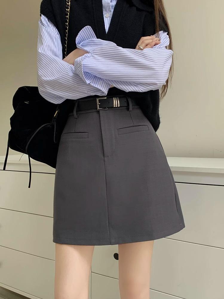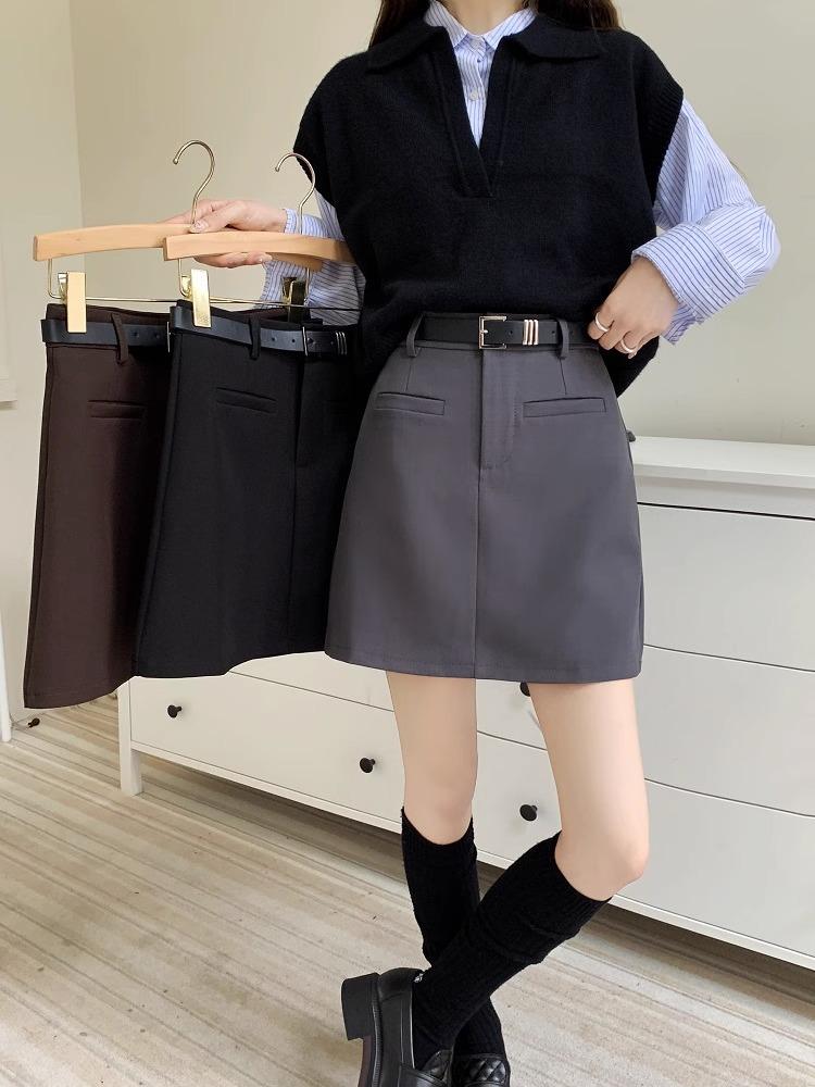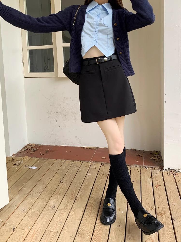 Falda de traje americano falda para mujer primavera 2024 nueva falda línea A de cintura alta estilo académico falda de cadera