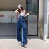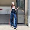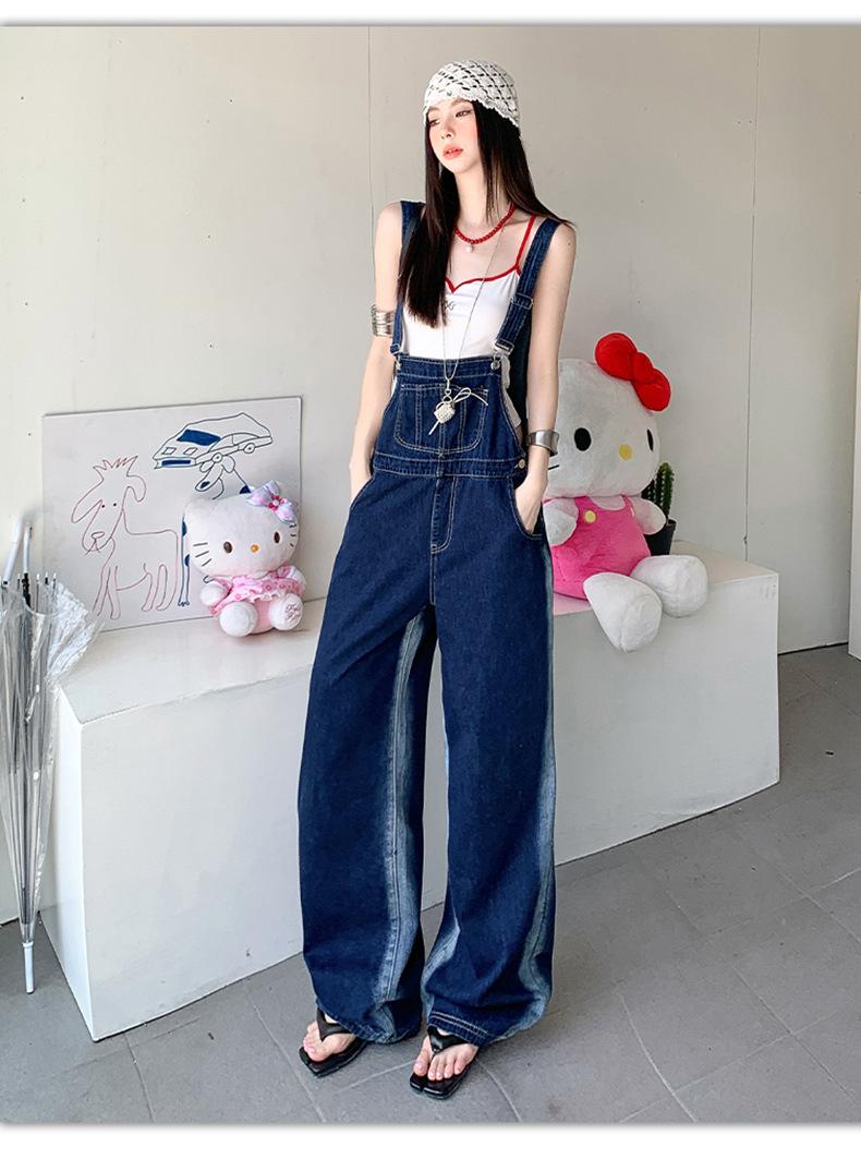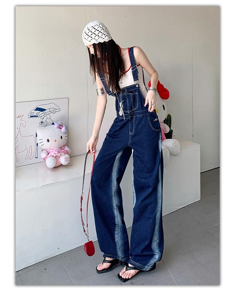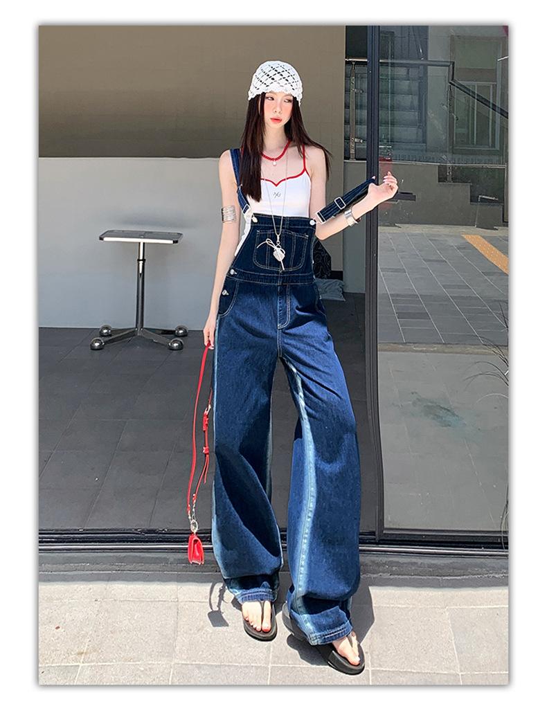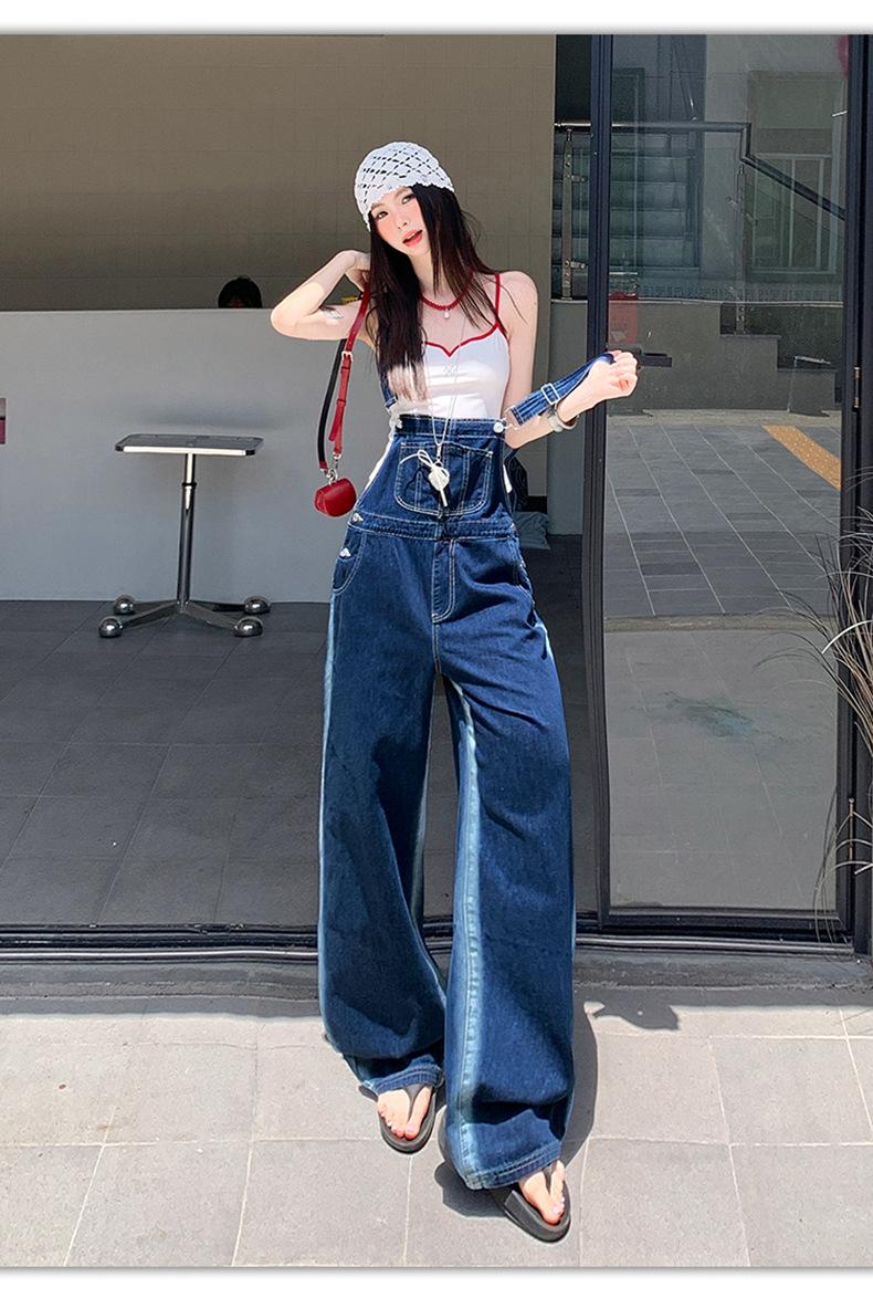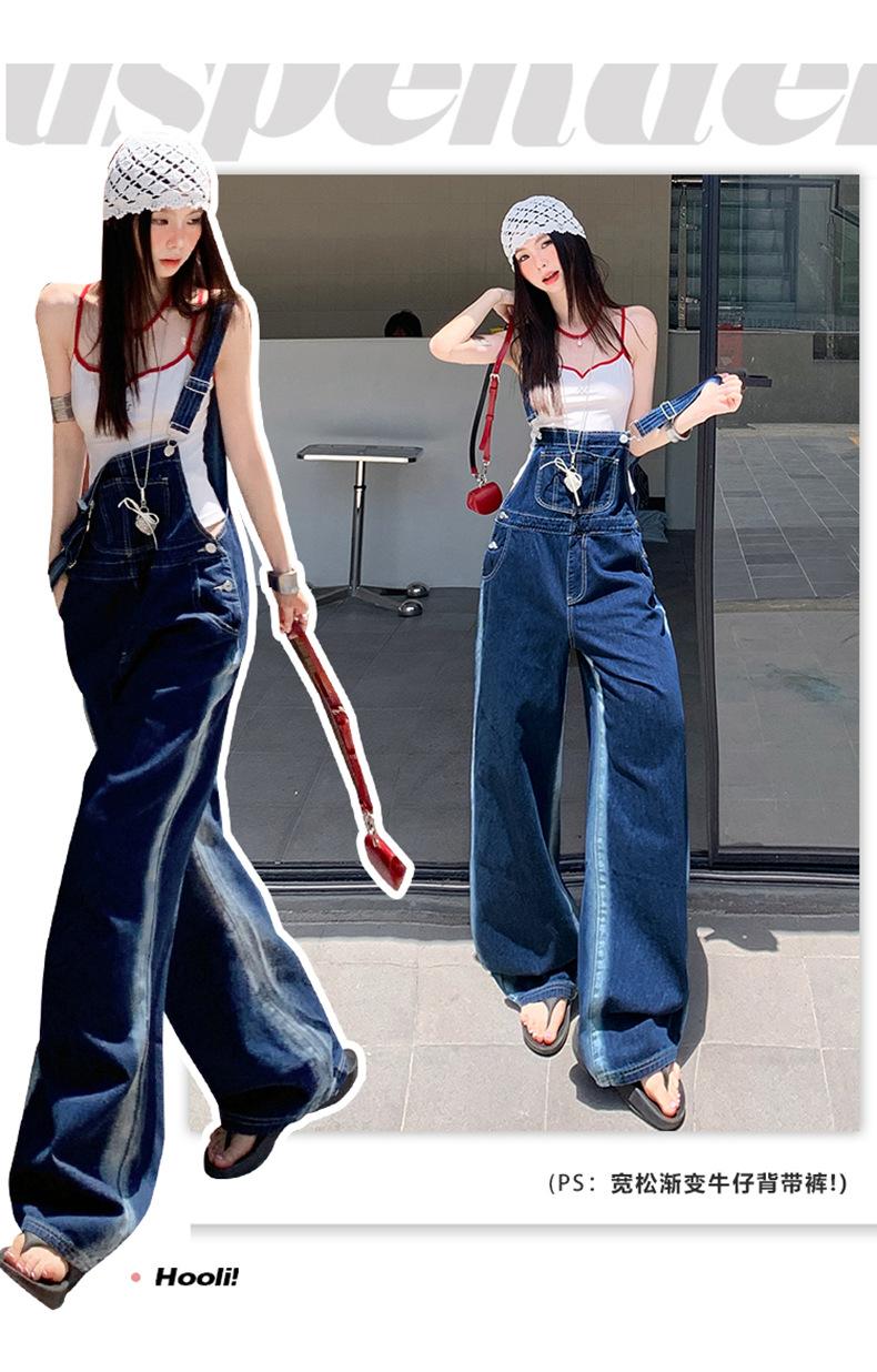 Verano 2025 Nuevo Estilo Coreano Denim Degradado Peto Pantalones de Pierna Ancha Diseño Suelto Moderno Mono Recto para Mujer