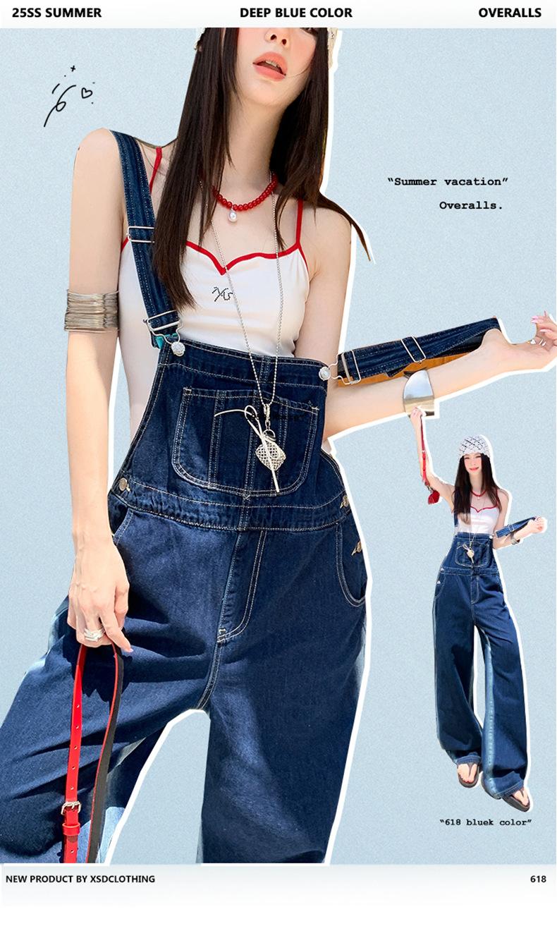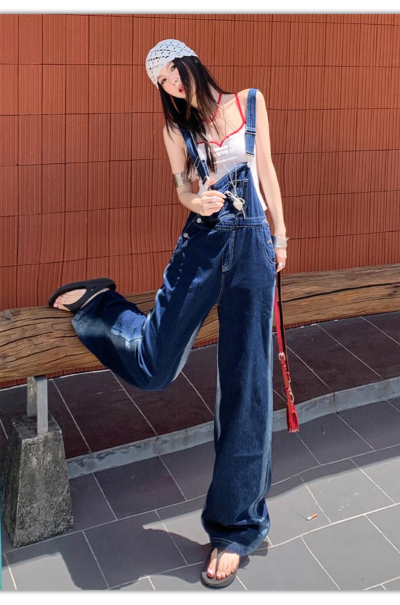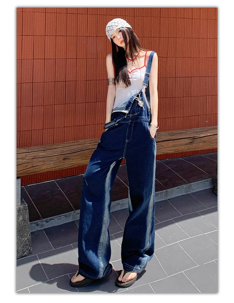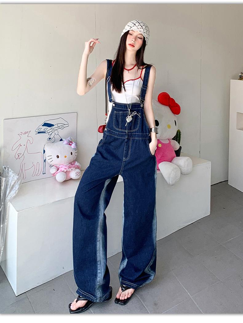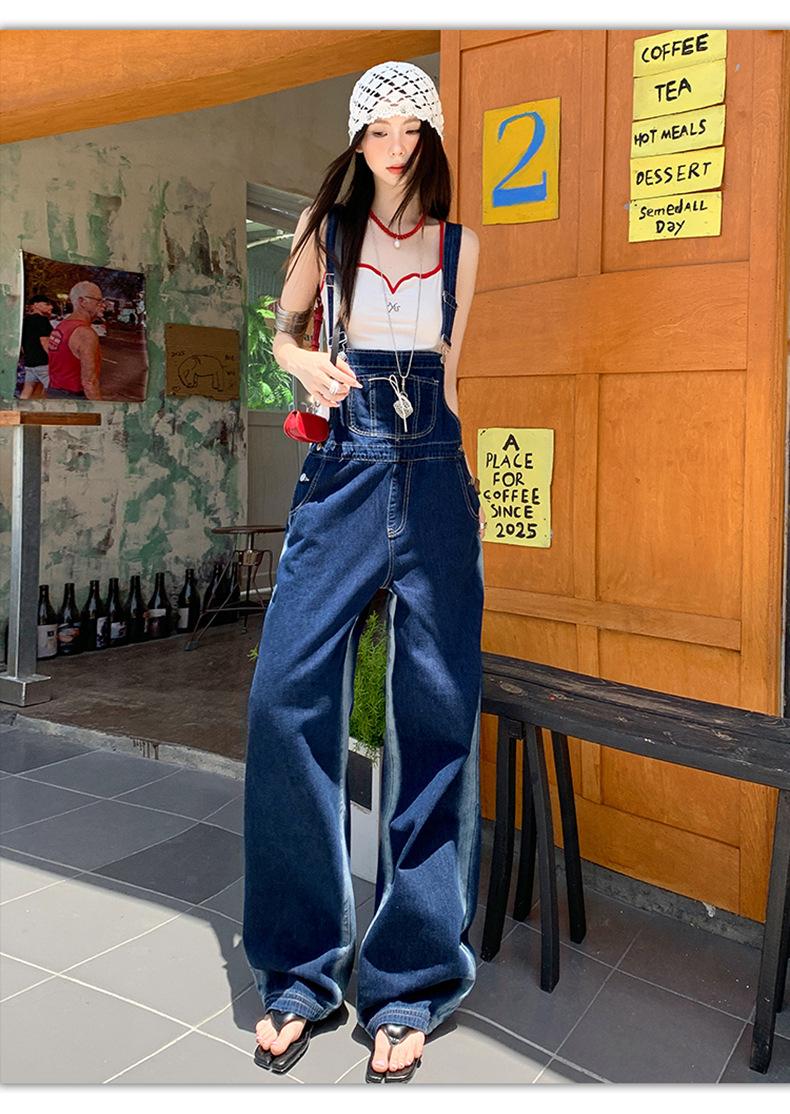 Verano 2025 Nuevo Estilo Coreano Denim Degradado Peto Pantalones de Pierna Ancha Diseño Suelto Moderno Mono Recto para Mujer