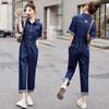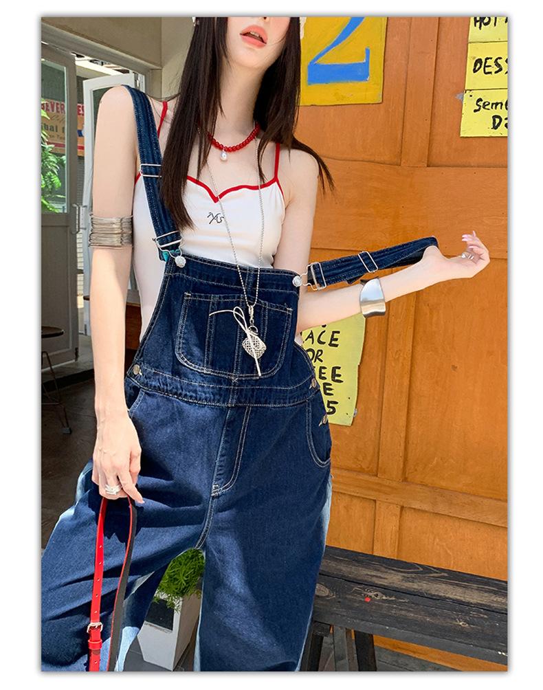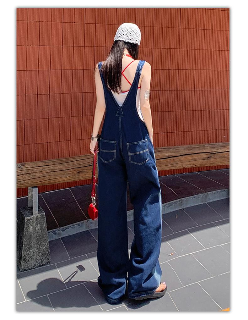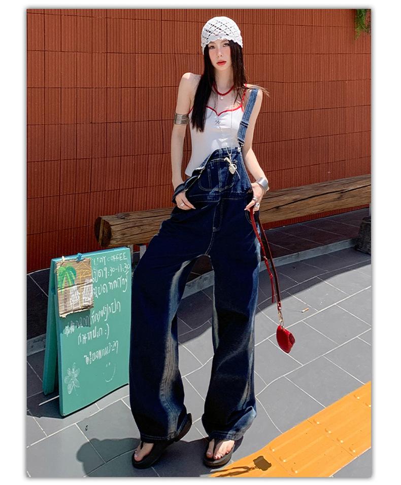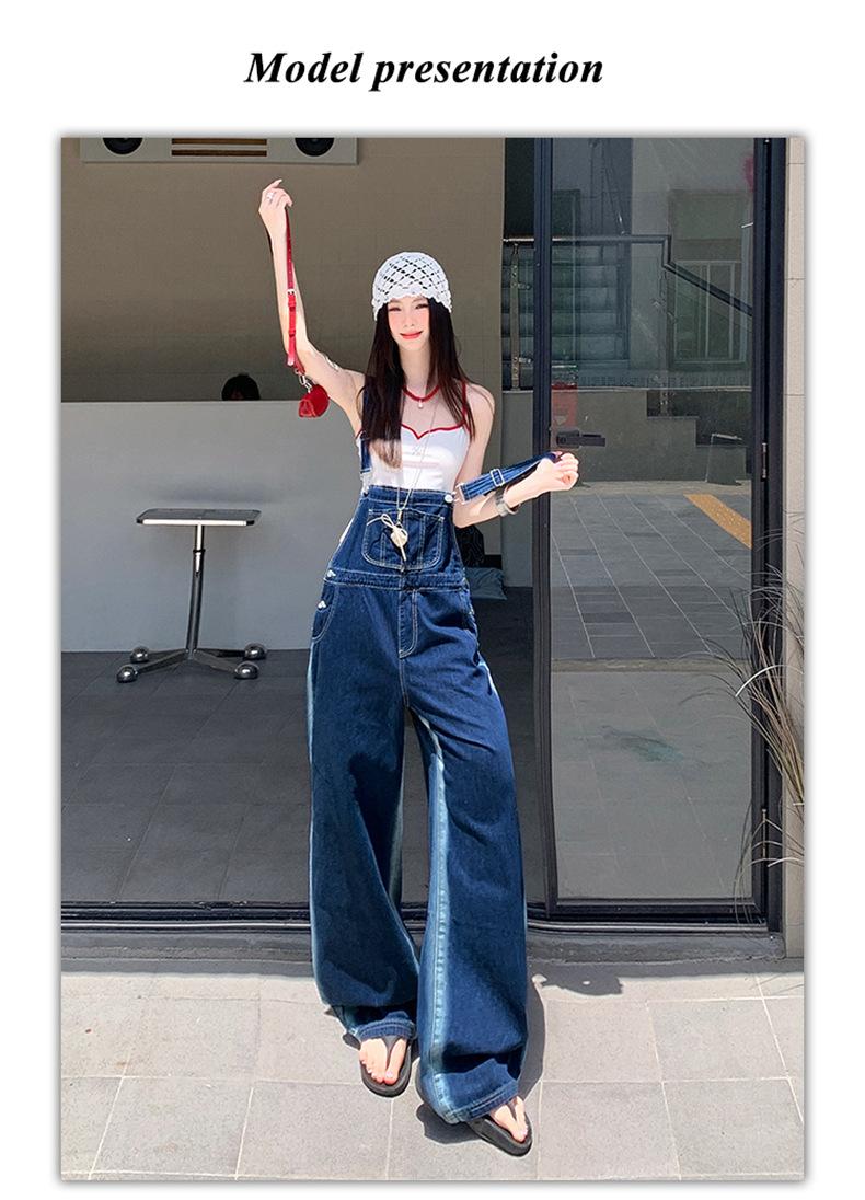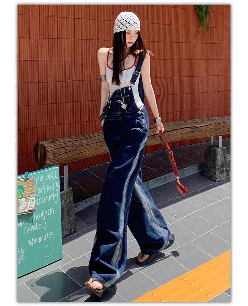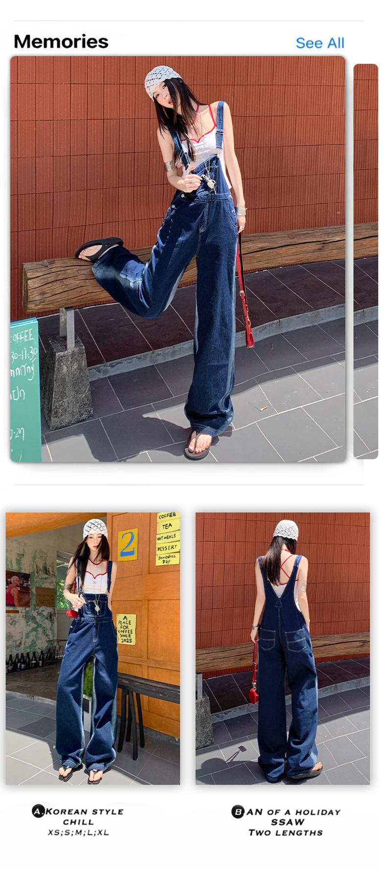 Verano 2025 Nuevo Estilo Coreano Denim Degradado Peto Pantalones de Pierna Ancha Diseño Suelto Moderno Mono Recto para Mujer