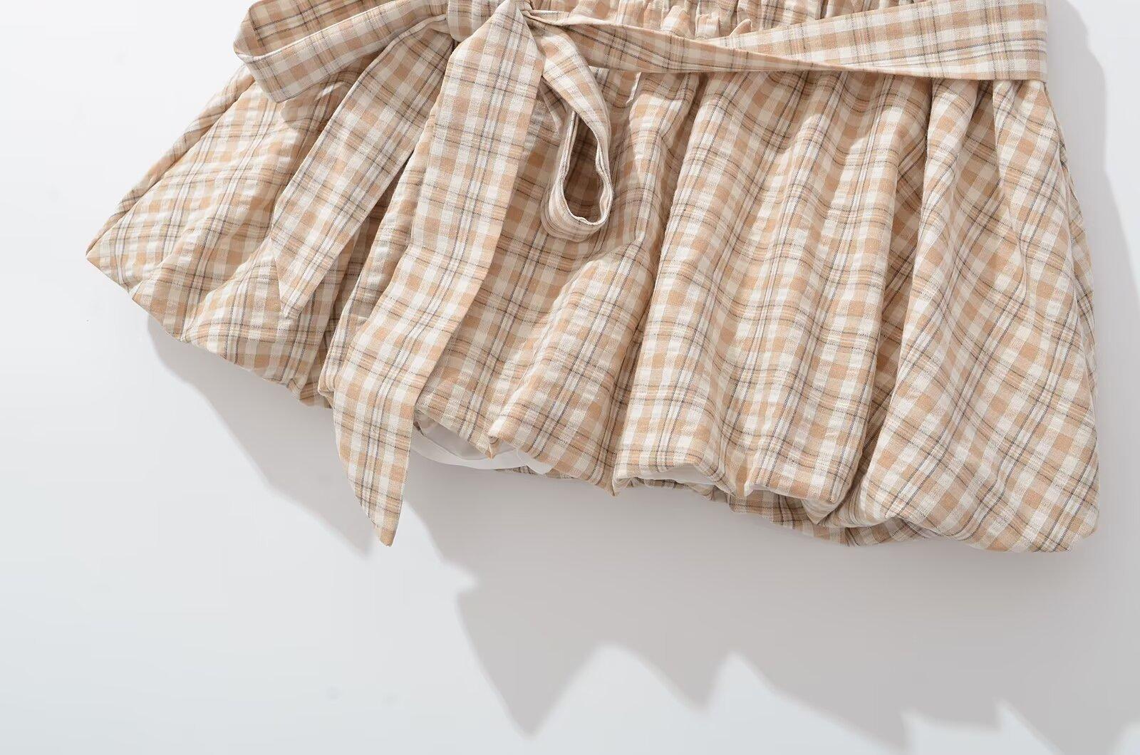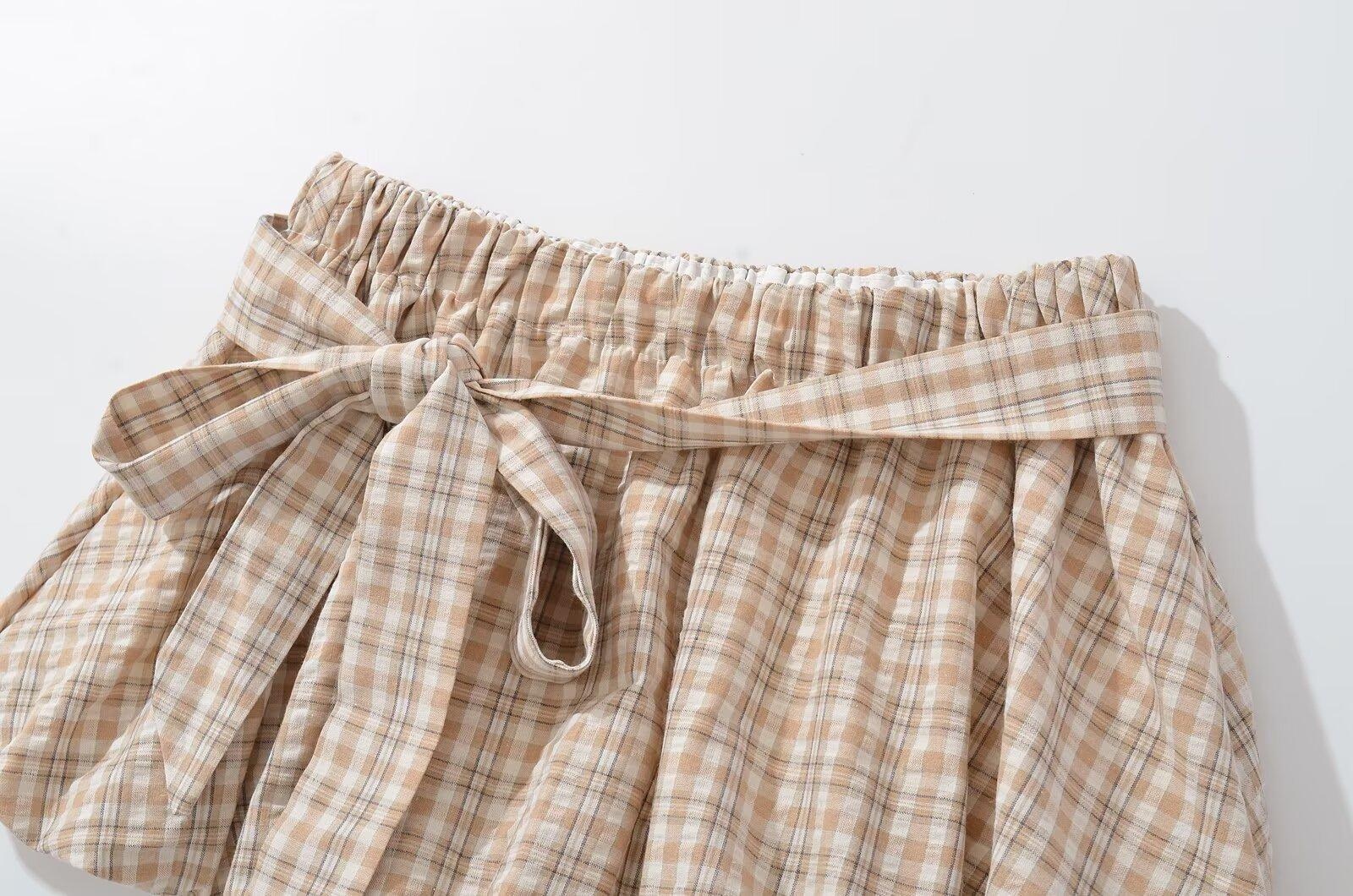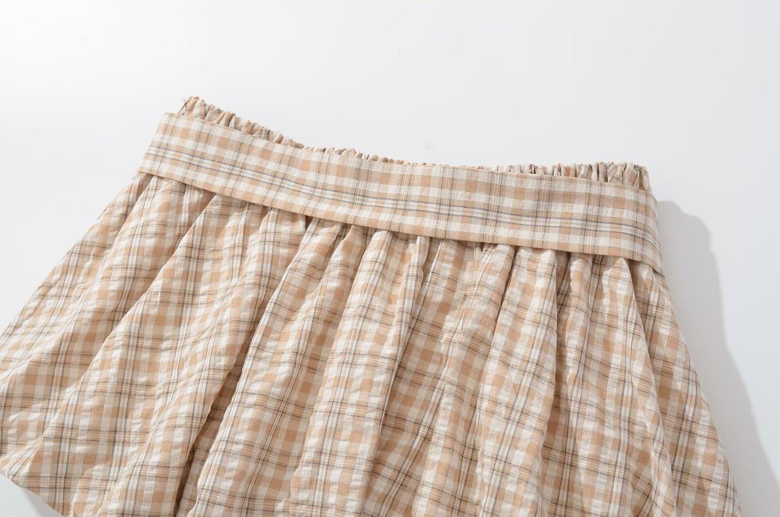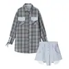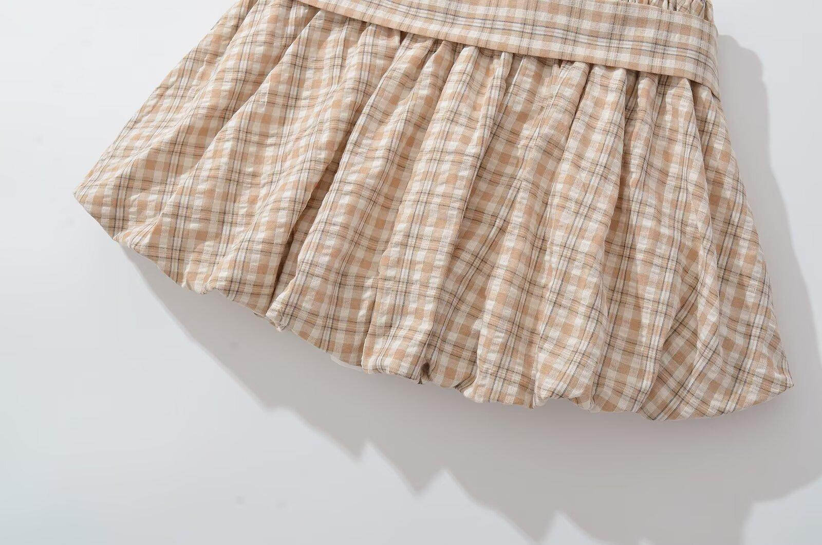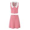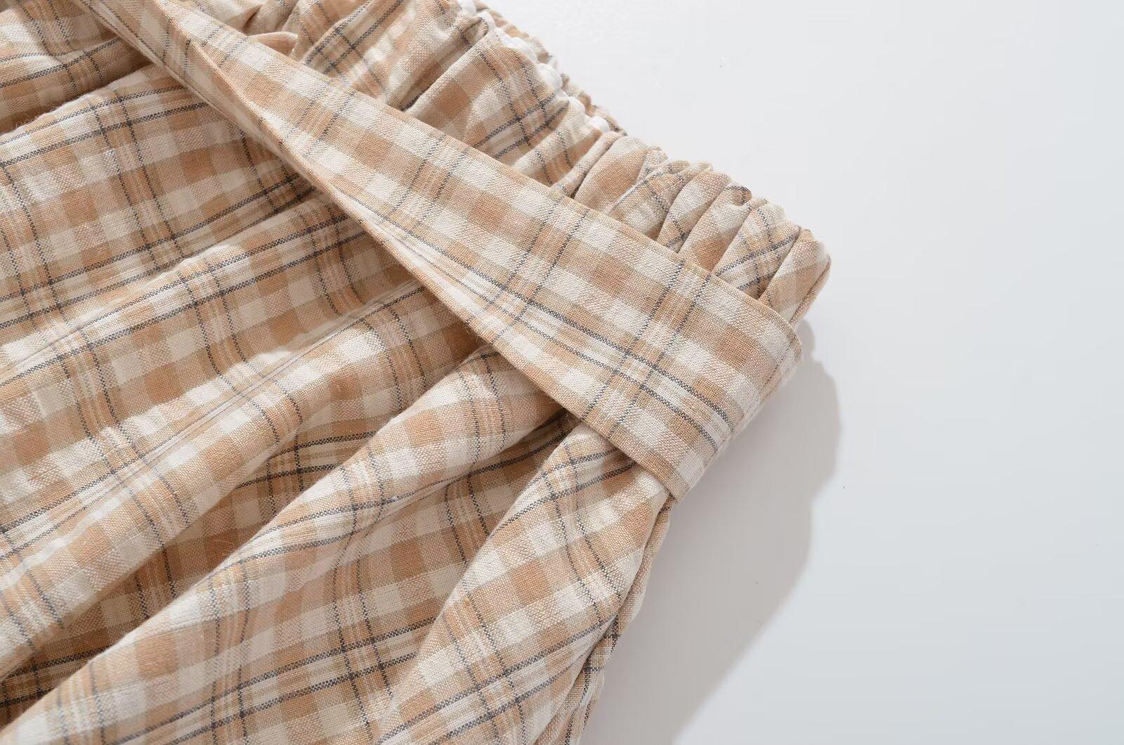 Ropa Europea y Americana Transfronteriza Primavera 2025 Nuevo Diseño Top de Cuadros + Falda Plisada con Cordones de Cintura Alta