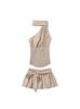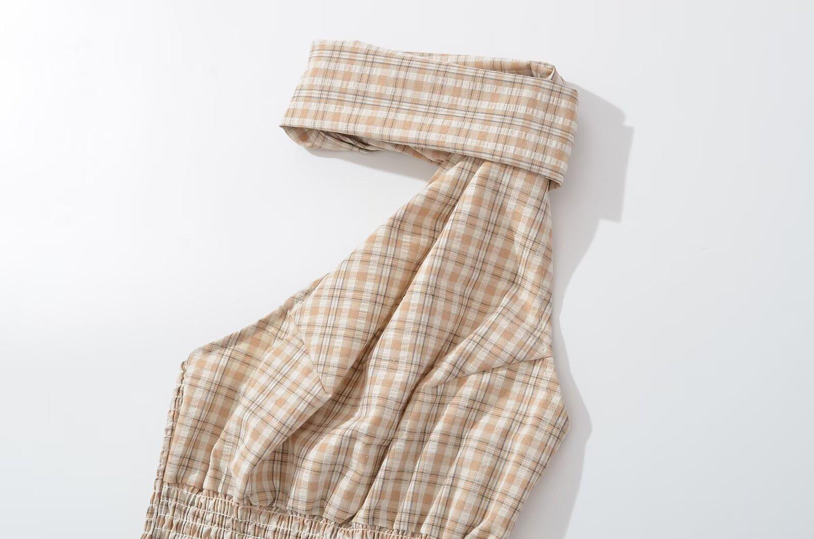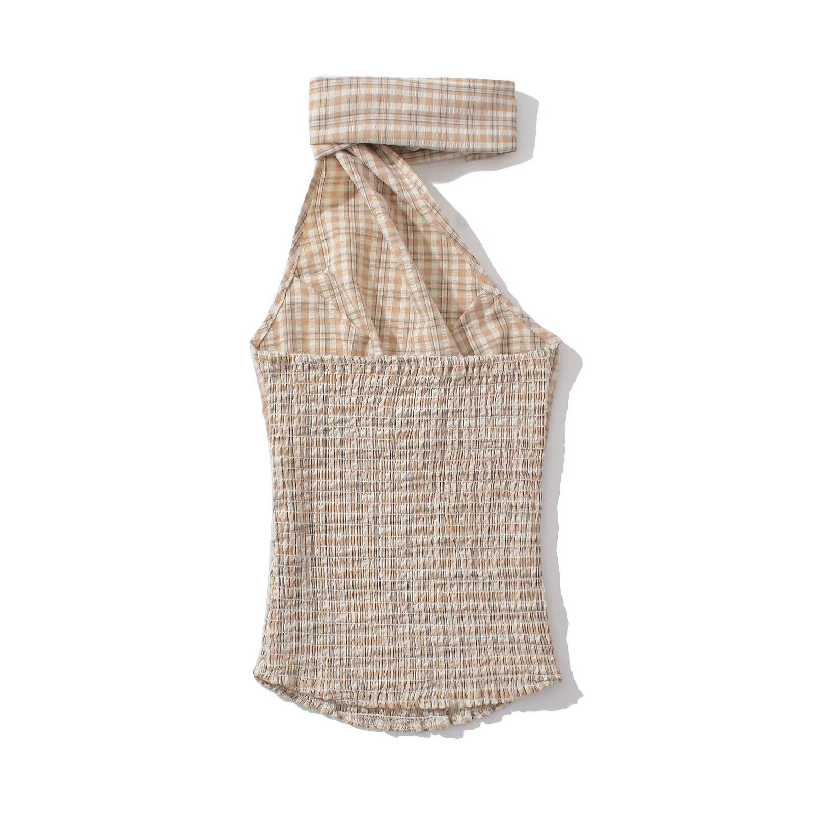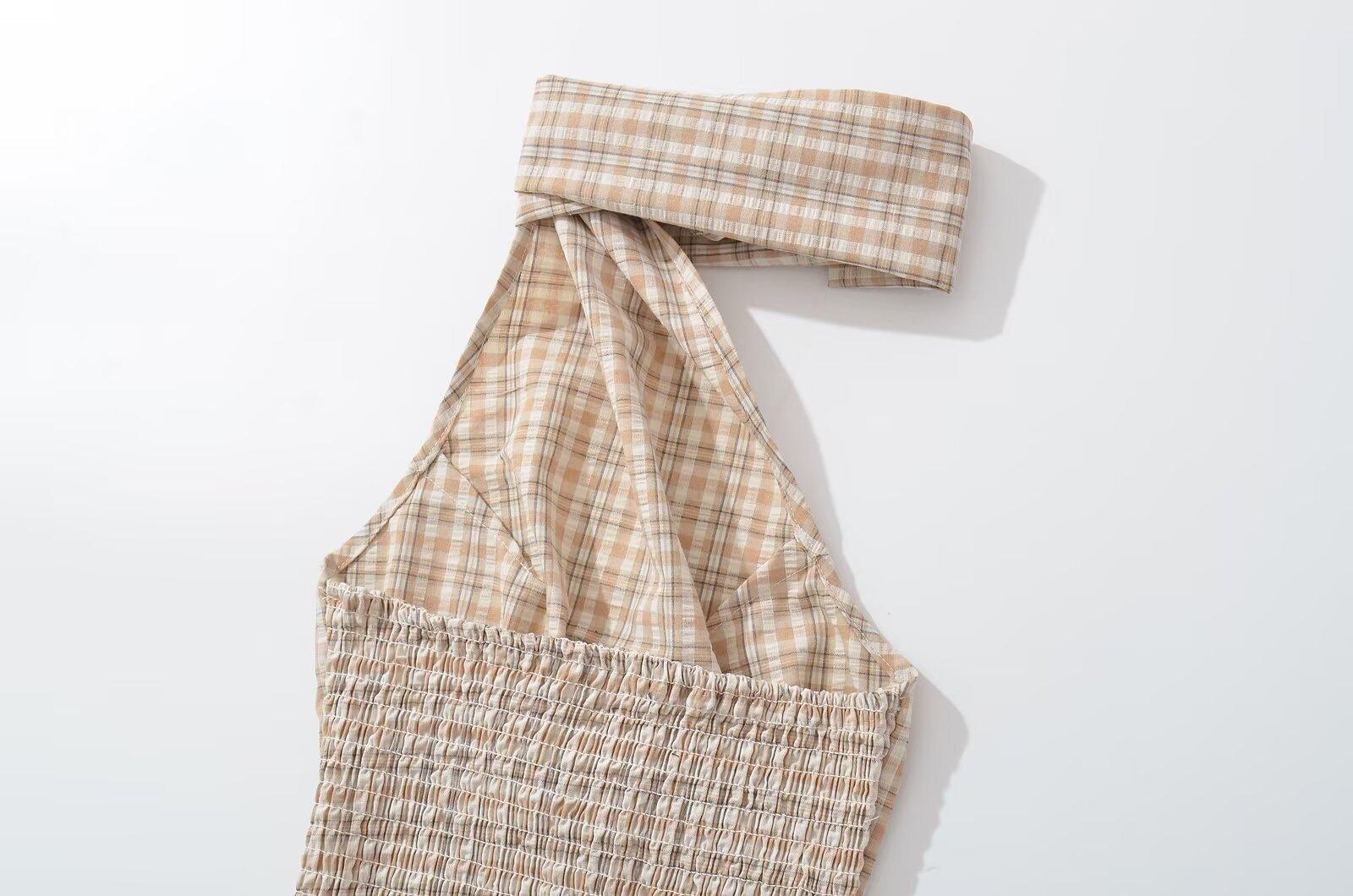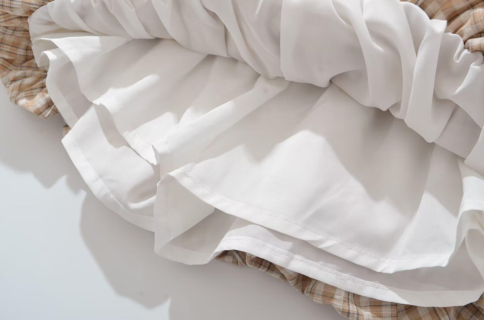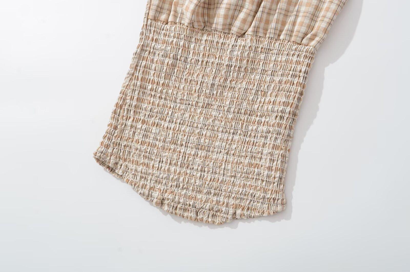 Ropa Europea y Americana Transfronteriza Primavera 2025 Nuevo Diseño Top de Cuadros + Falda Plisada con Cordones de Cintura Alta