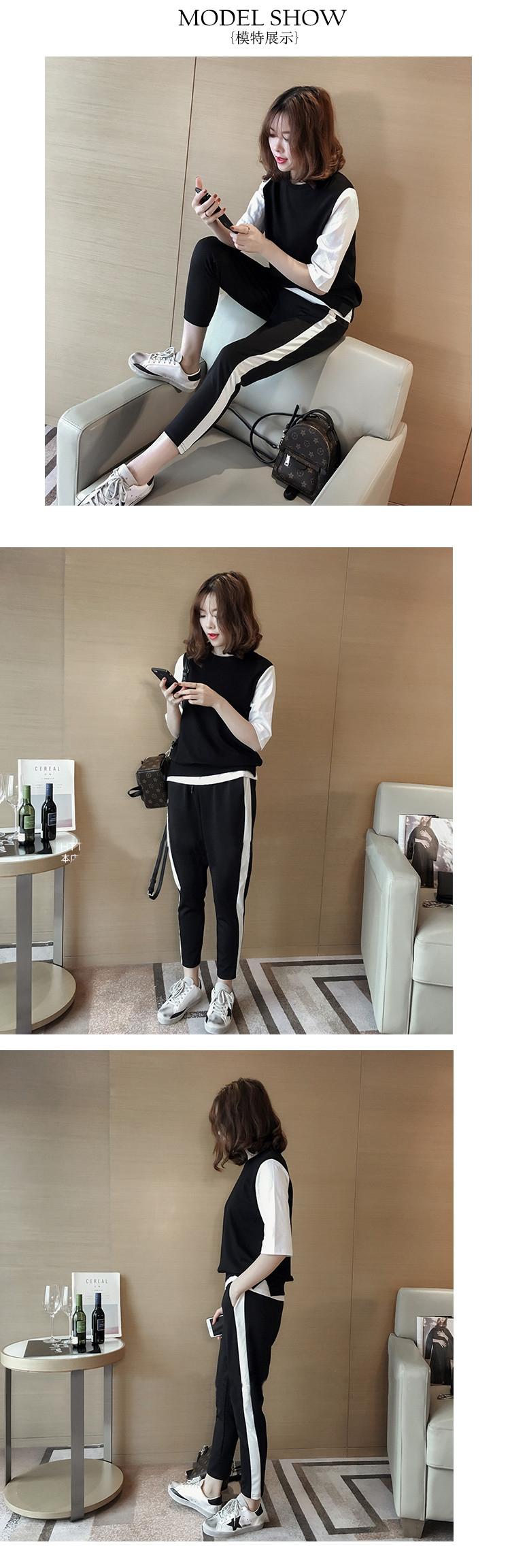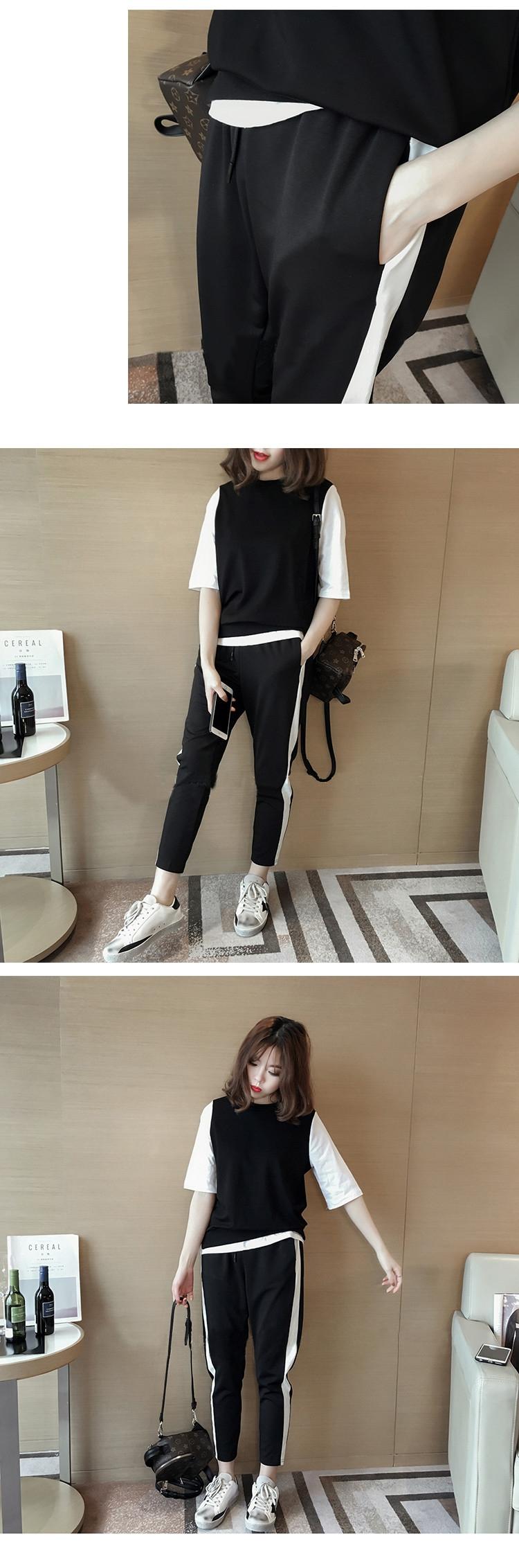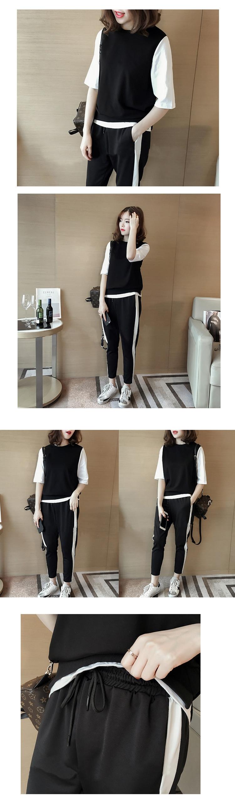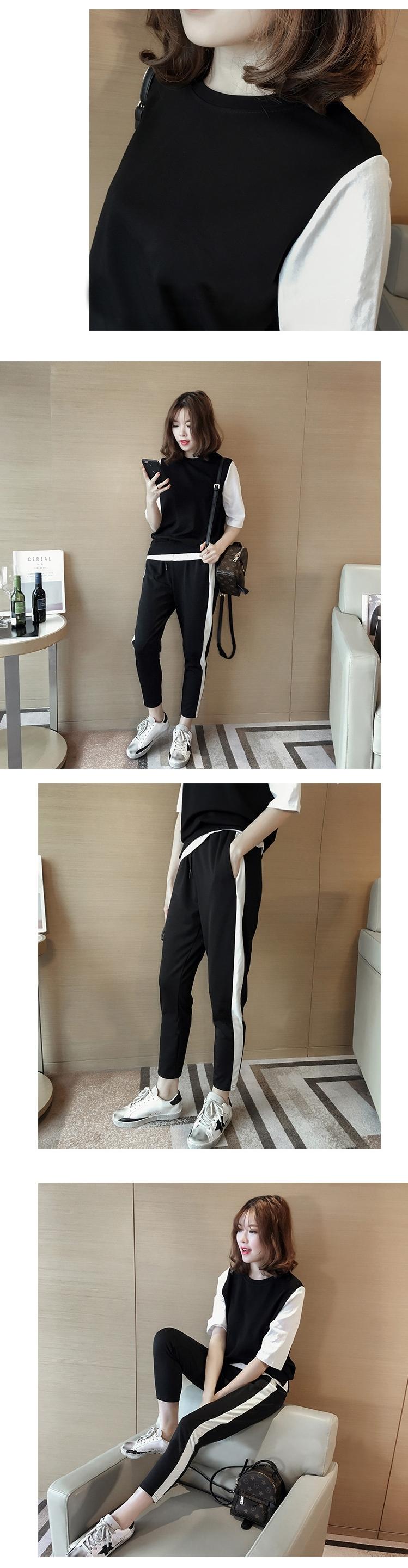 2025 Nueva Moda Color Block Top de Camiseta de Manga Corta Set de Pantalones Harem Casuales de Dos Piezas de Manga Corta Set de Pantalones Deportivos