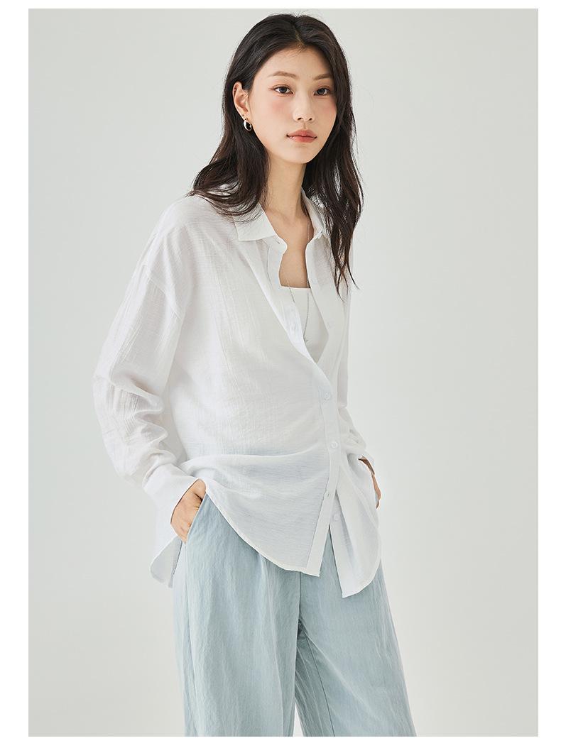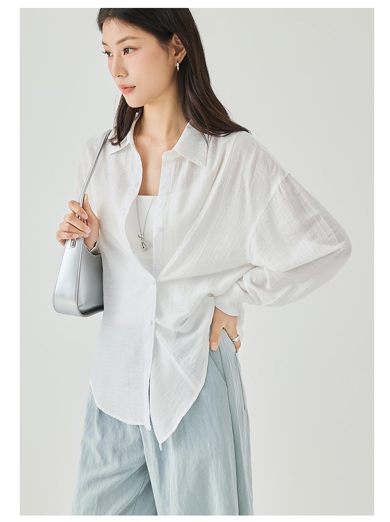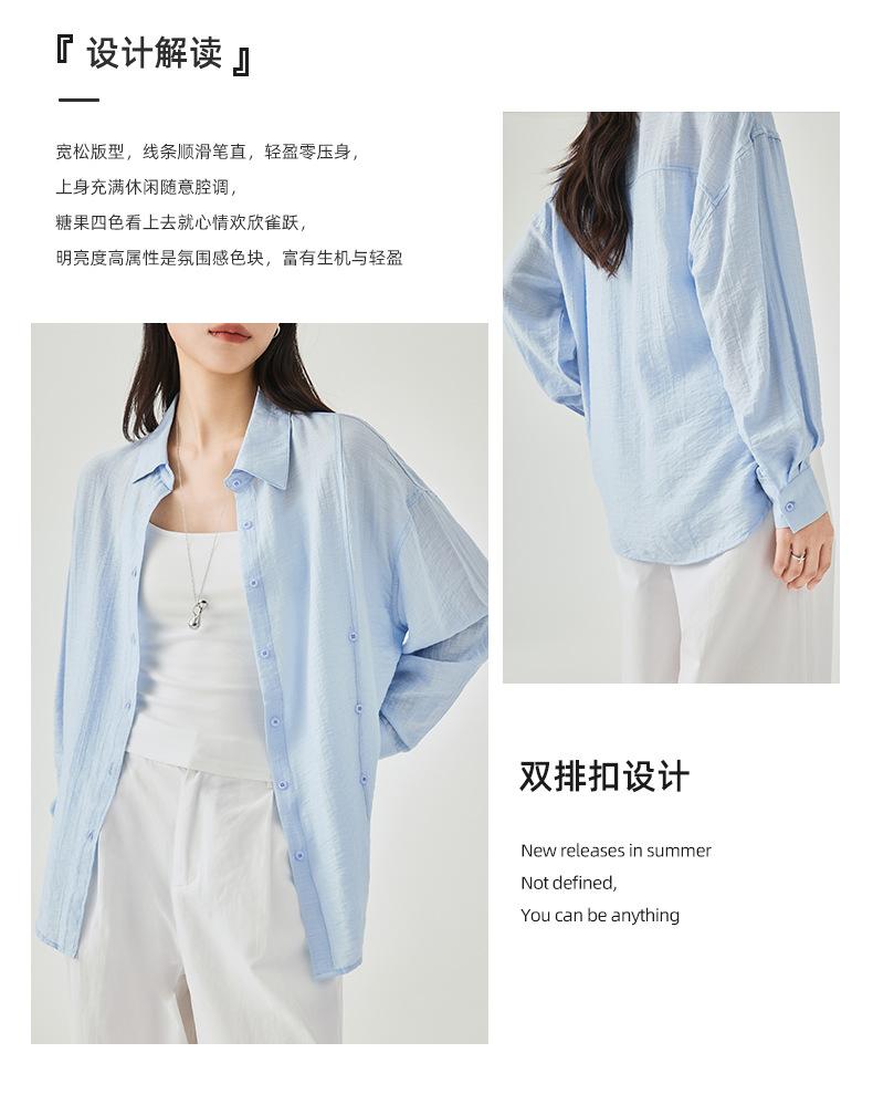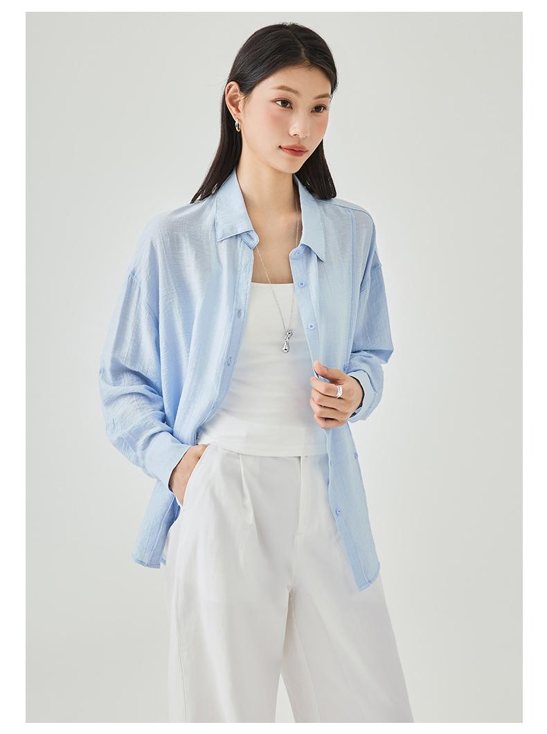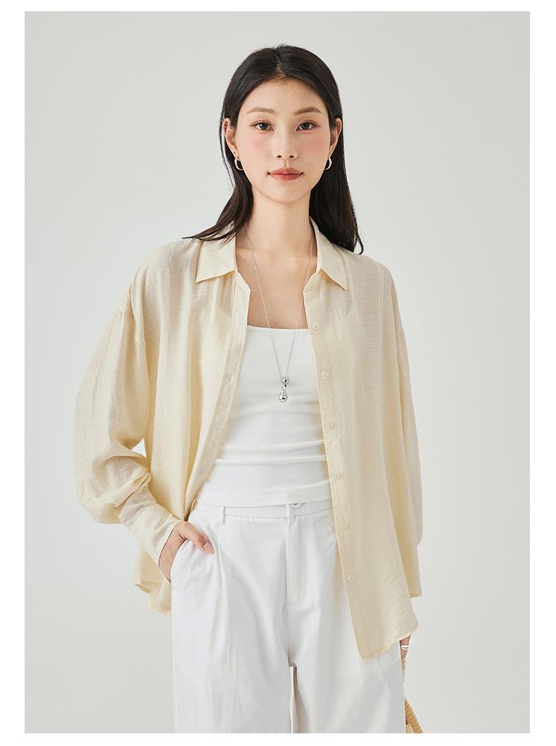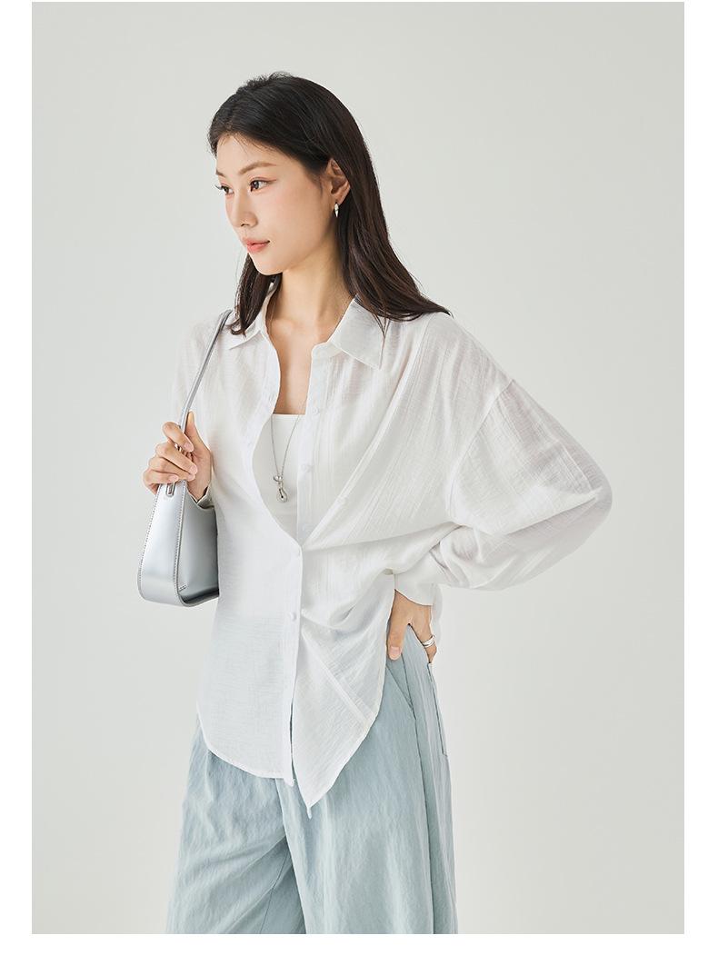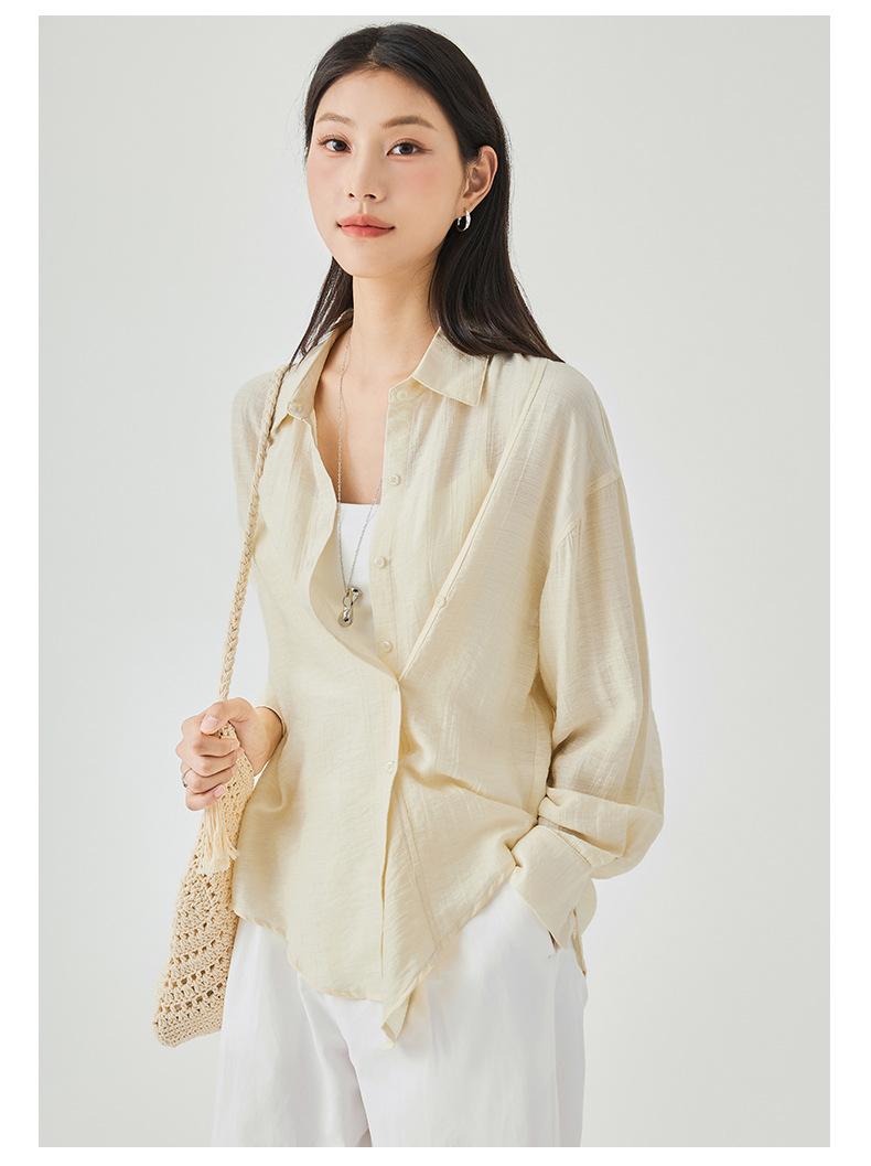 Ropa de Mujer APO | Camisa de Manga Larga para Mujer Verano Delgada Ligera Lujo de Alta Gama Sensación Estilo Holgado Lazy Camisa con Solapa Top Cárdigan