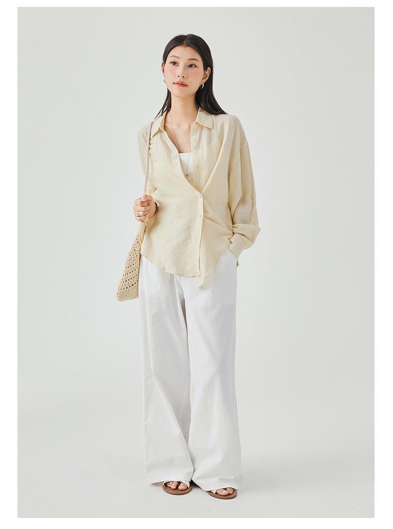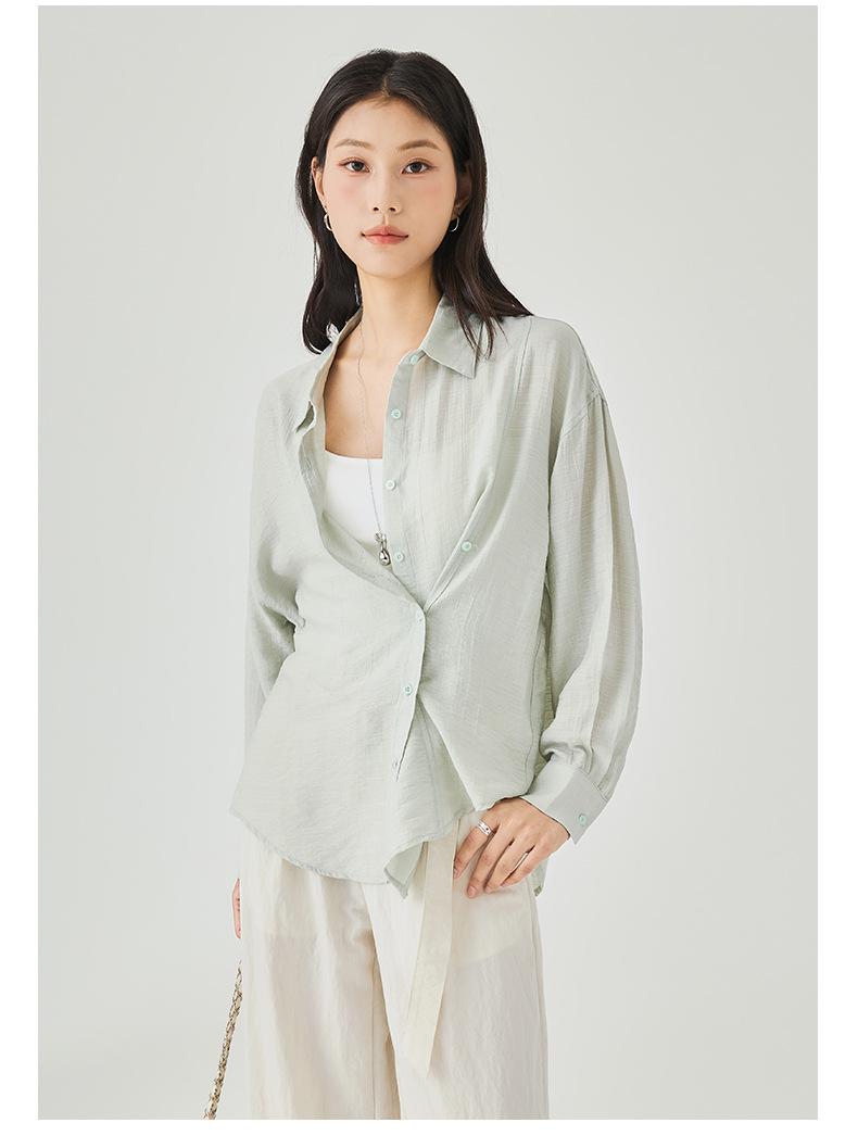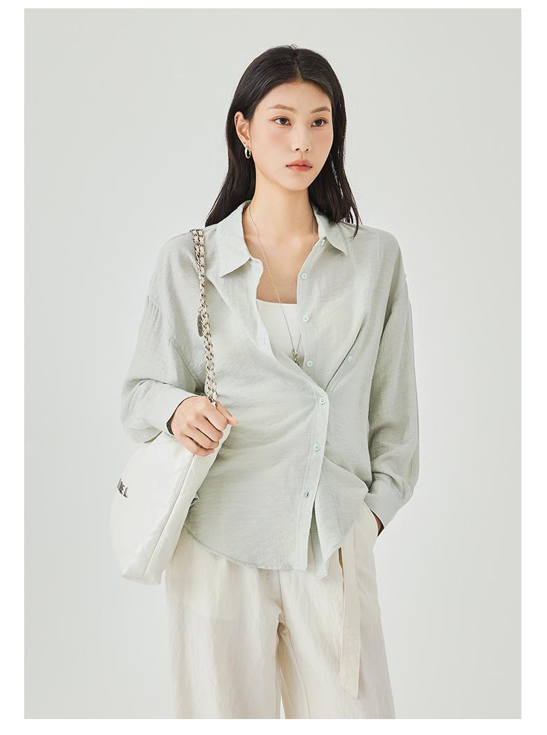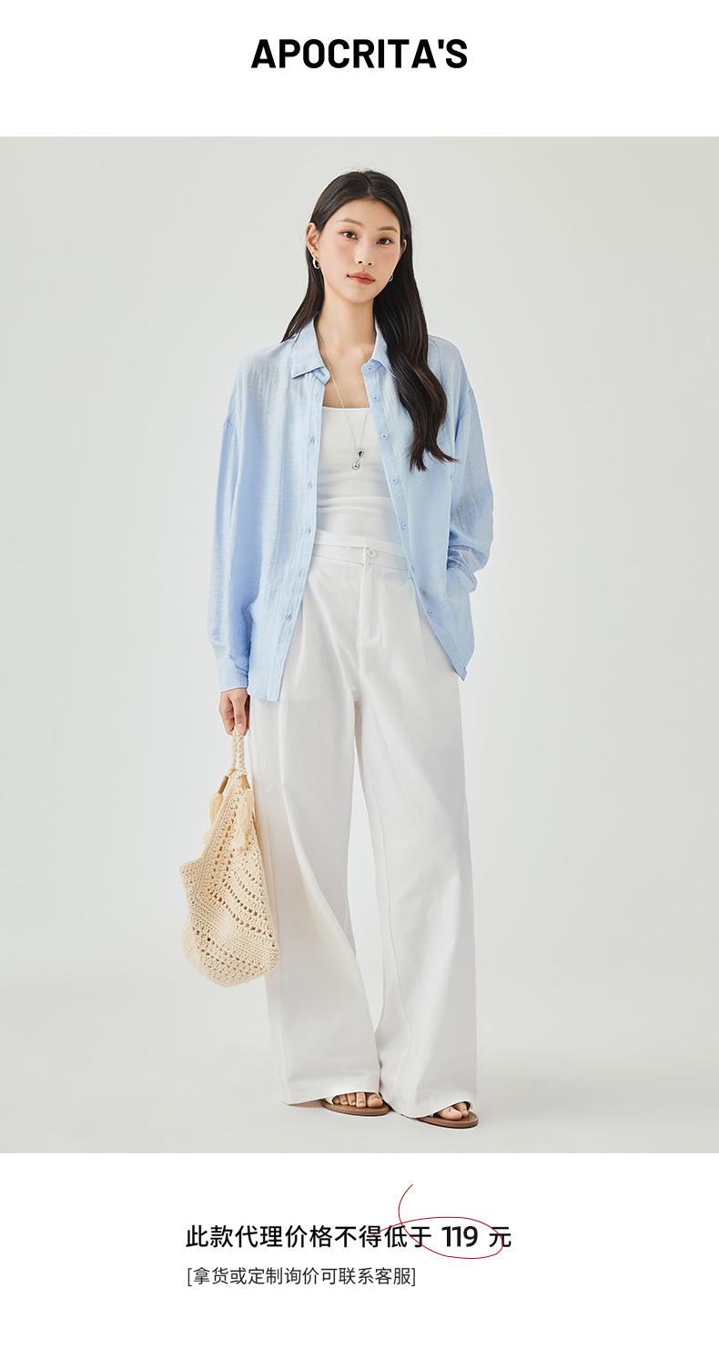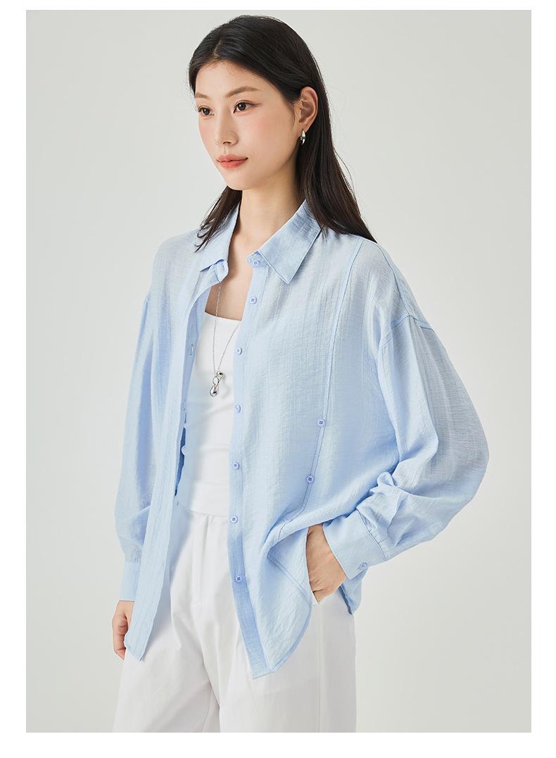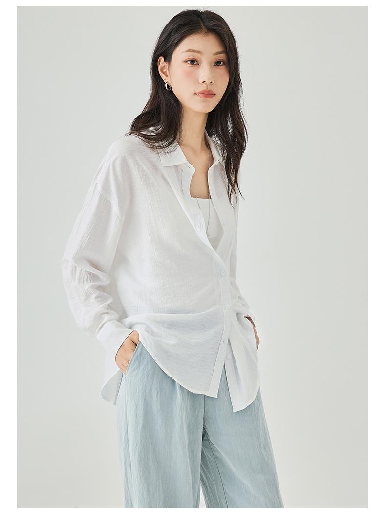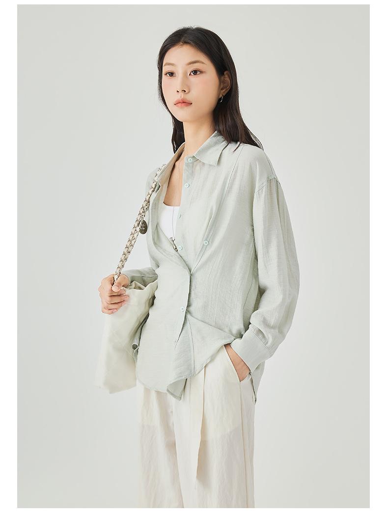 Ropa de Mujer APO | Camisa de Manga Larga para Mujer Verano Delgada Ligera Lujo de Alta Gama Sensación Estilo Holgado Lazy Camisa con Solapa Top Cárdigan