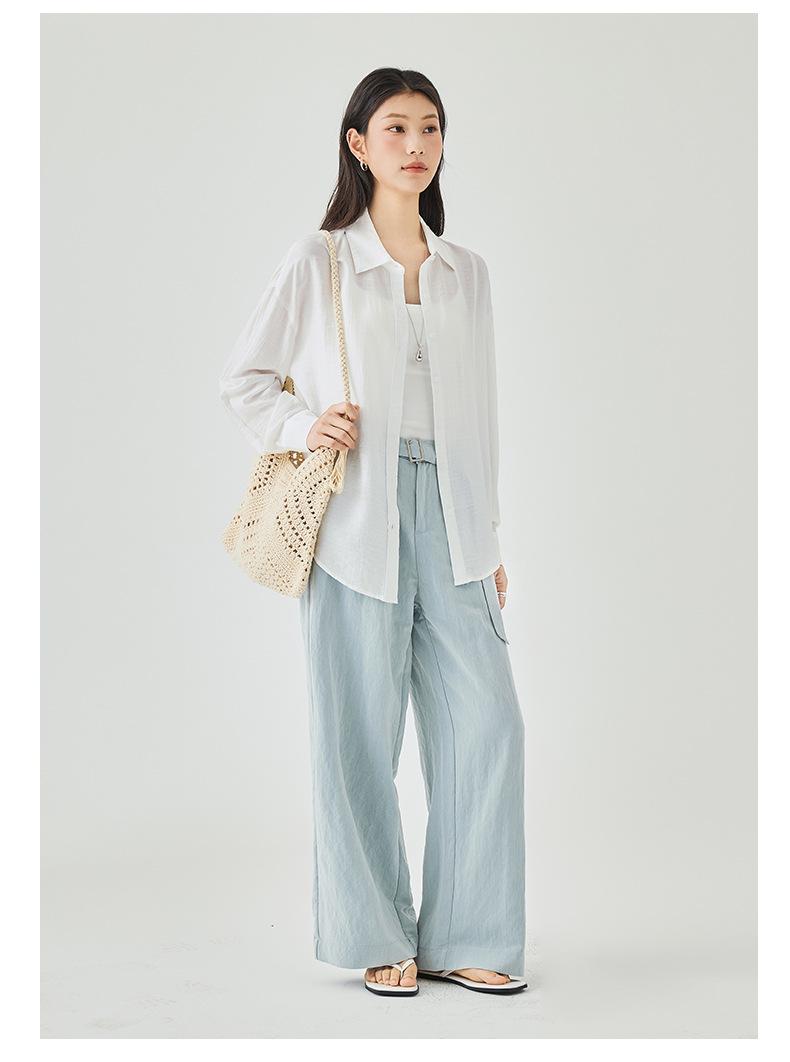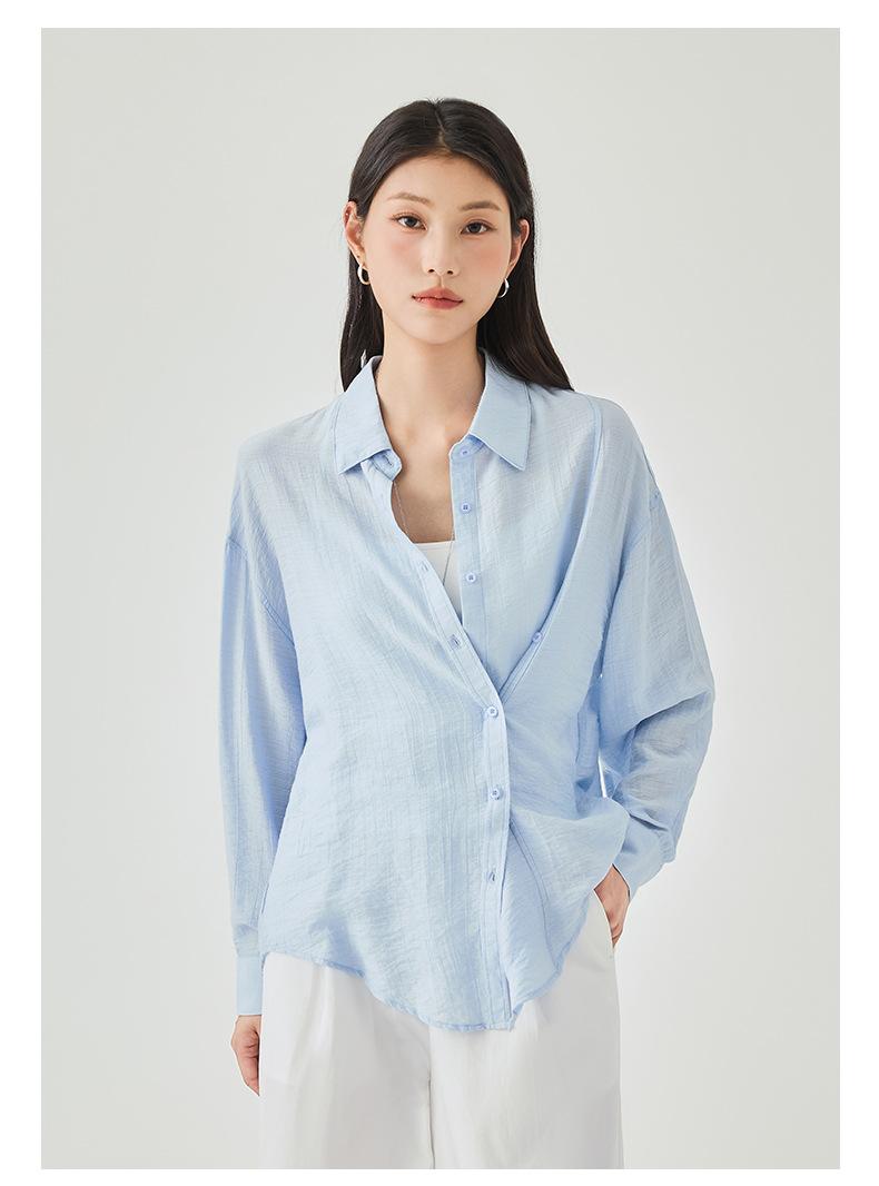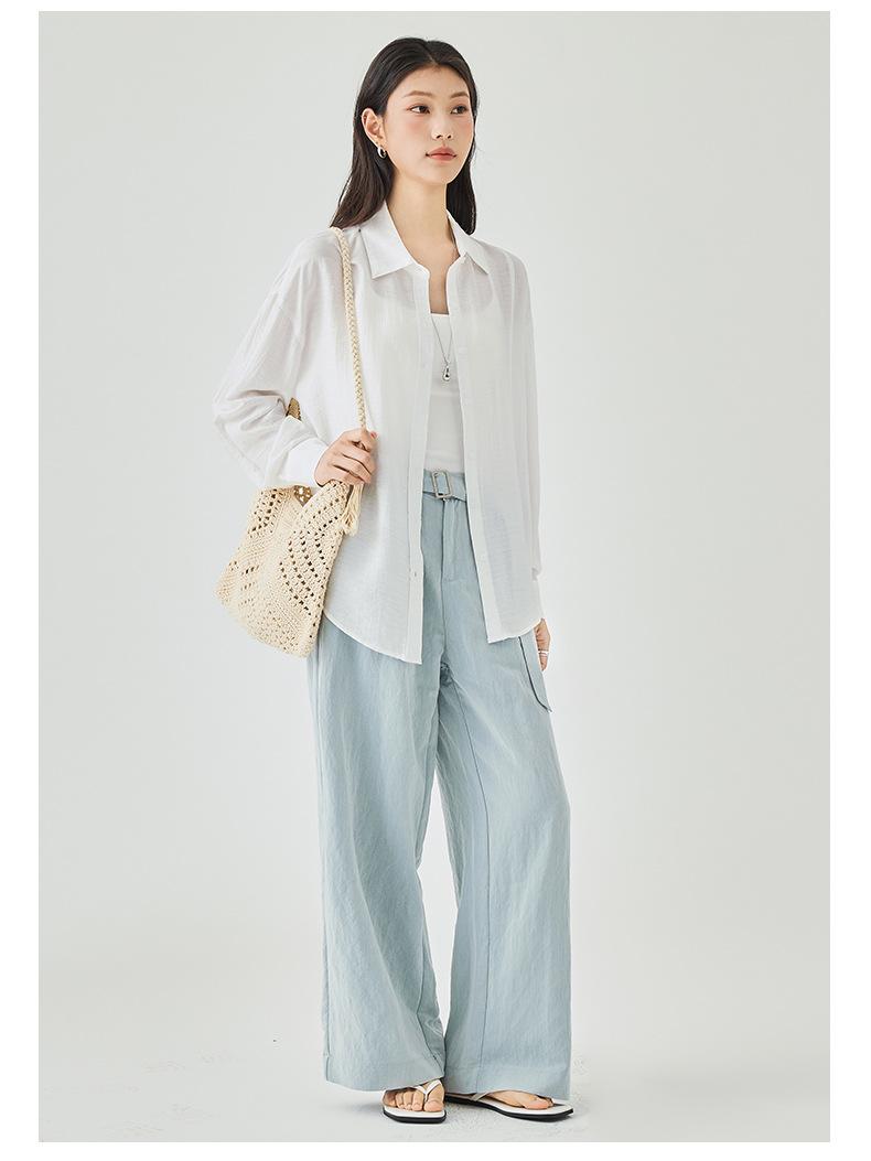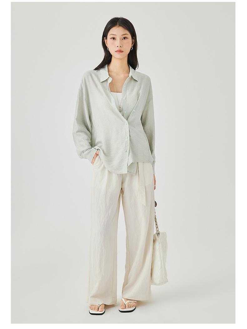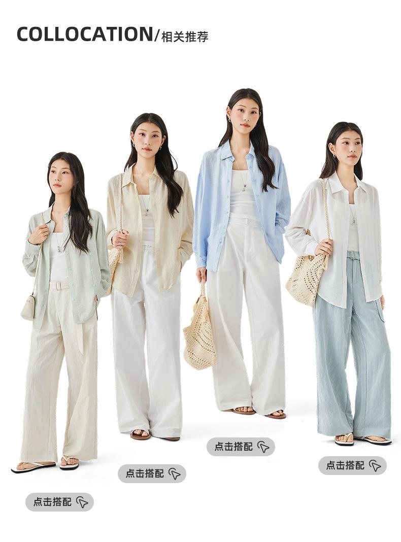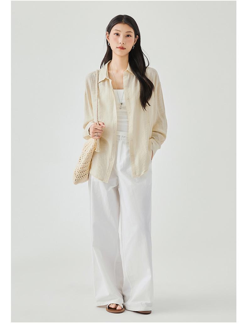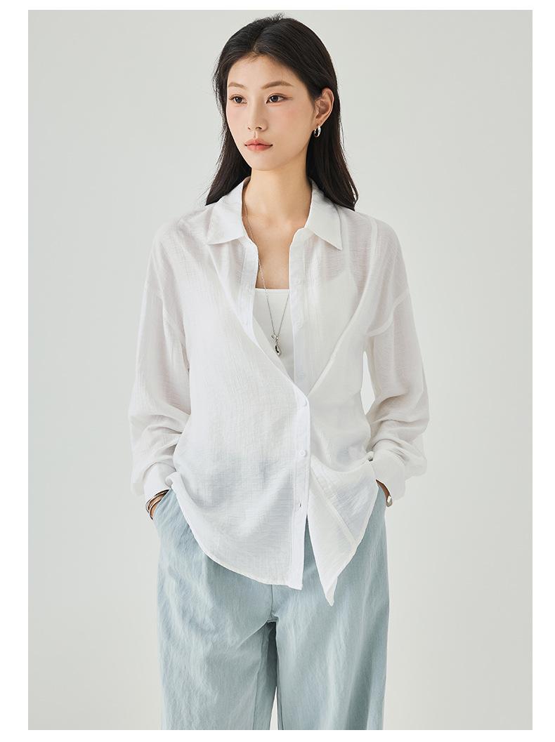 Ropa de Mujer APO | Camisa de Manga Larga para Mujer Verano Delgada Ligera Lujo de Alta Gama Sensación Estilo Holgado Lazy Camisa con Solapa Top Cárdigan