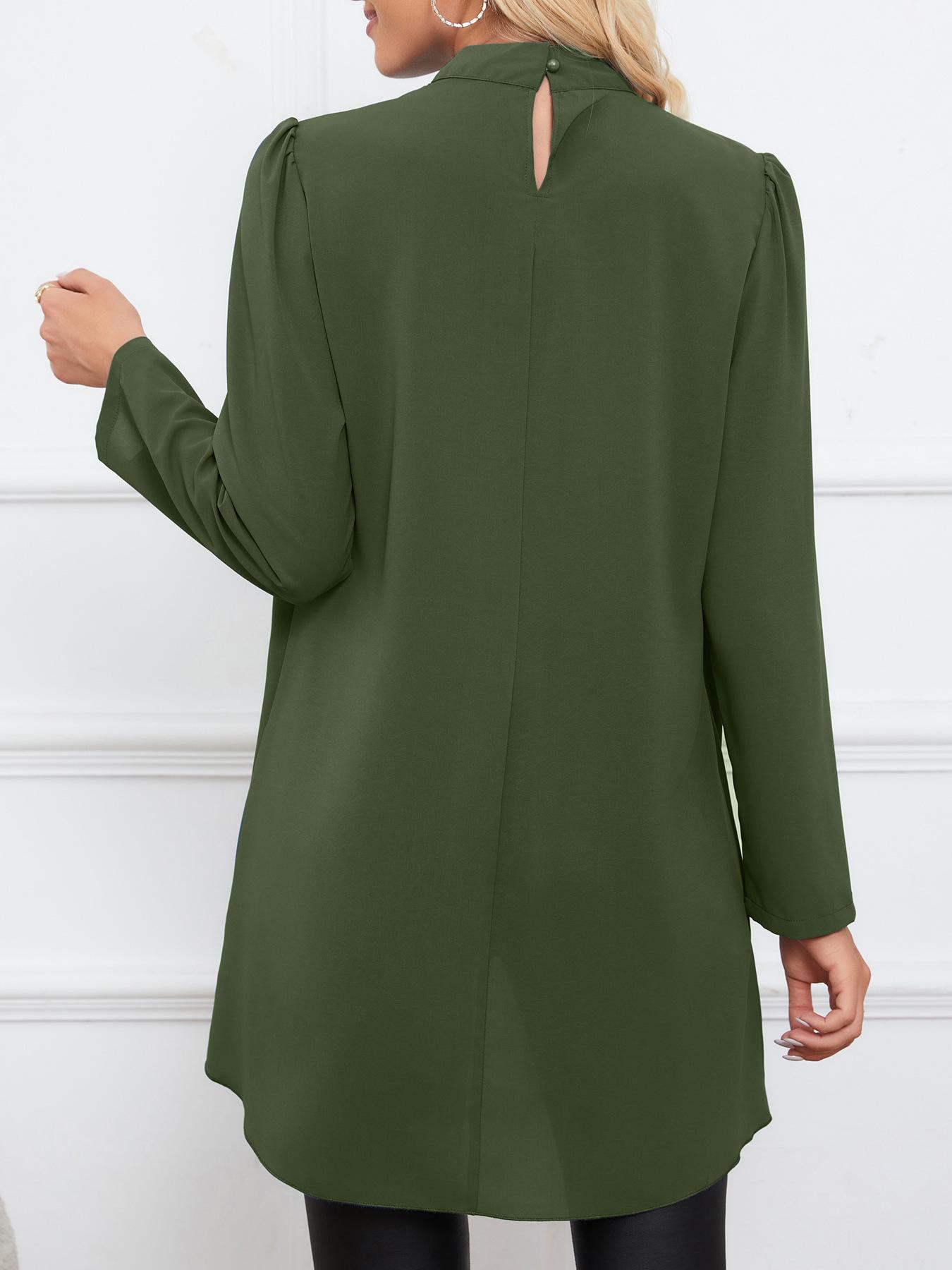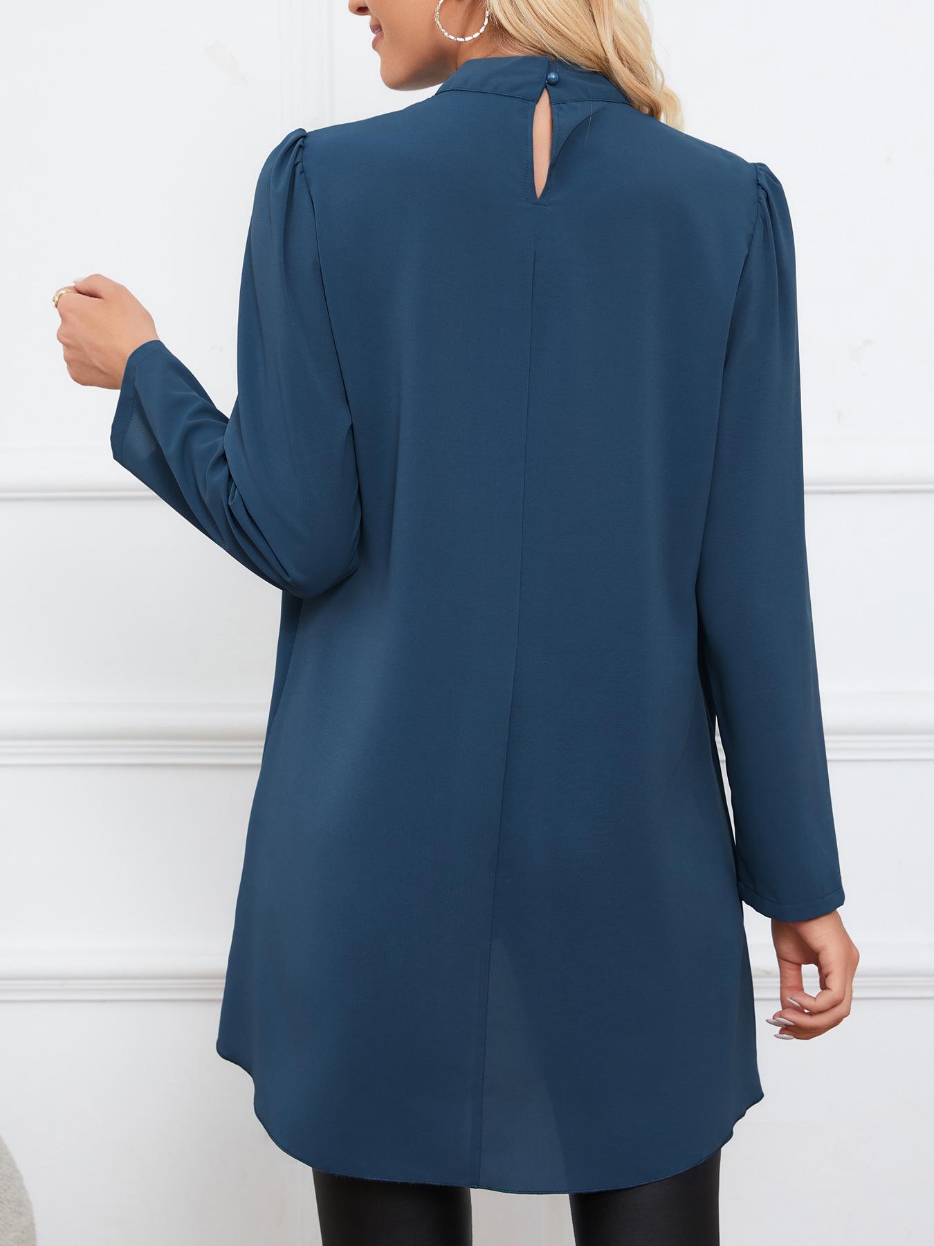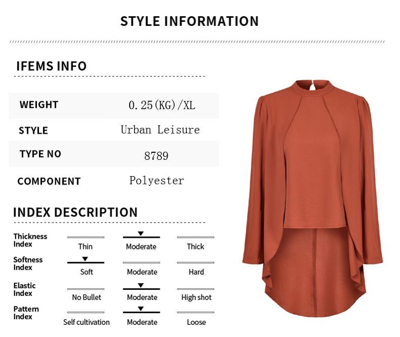 Comercio Exterior Transfronterizo Europeo y Americano para Mujer 2025 Nueva Camisa de Mujer Falsa de Dos Piezas de Manga Larga con Cuello Pequeño Top de Color Sólido