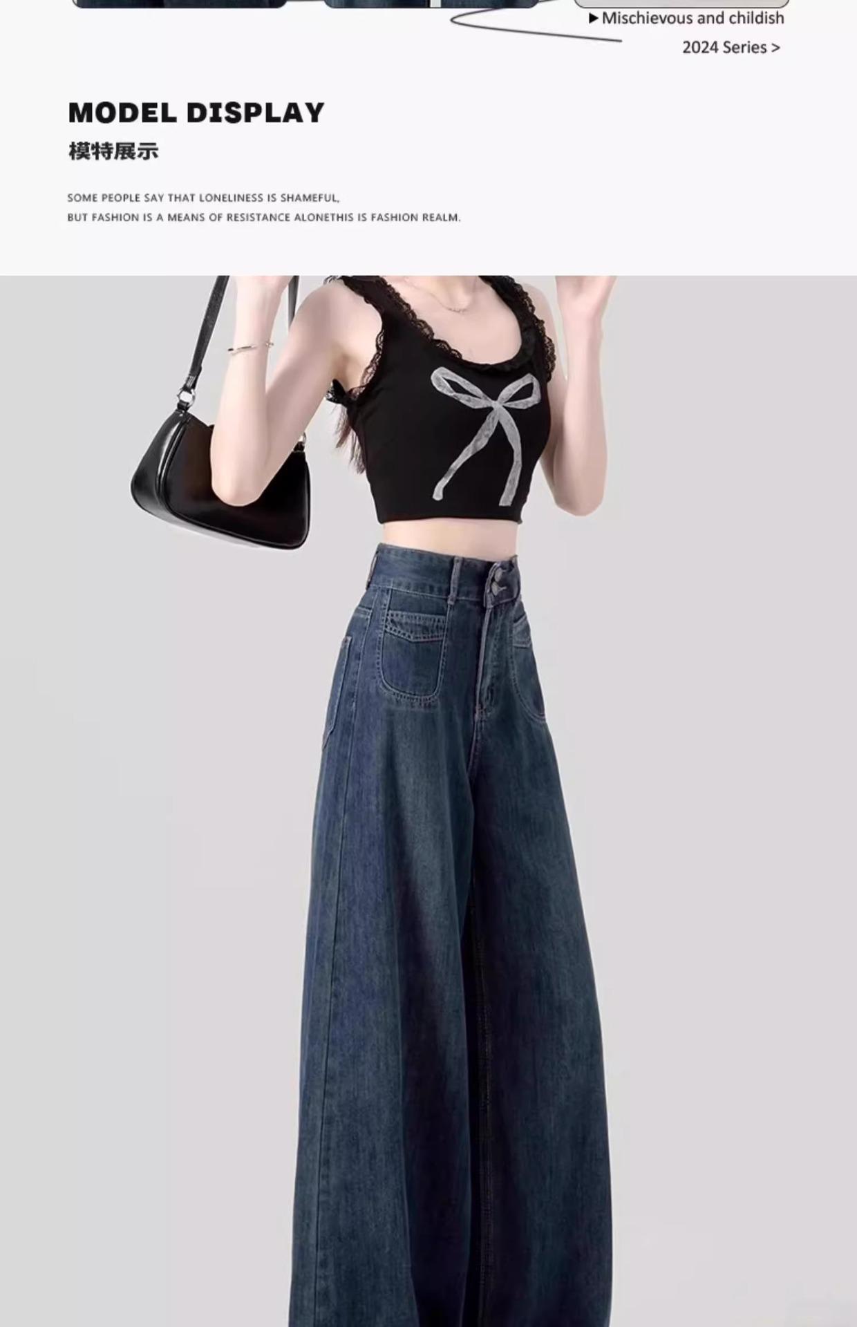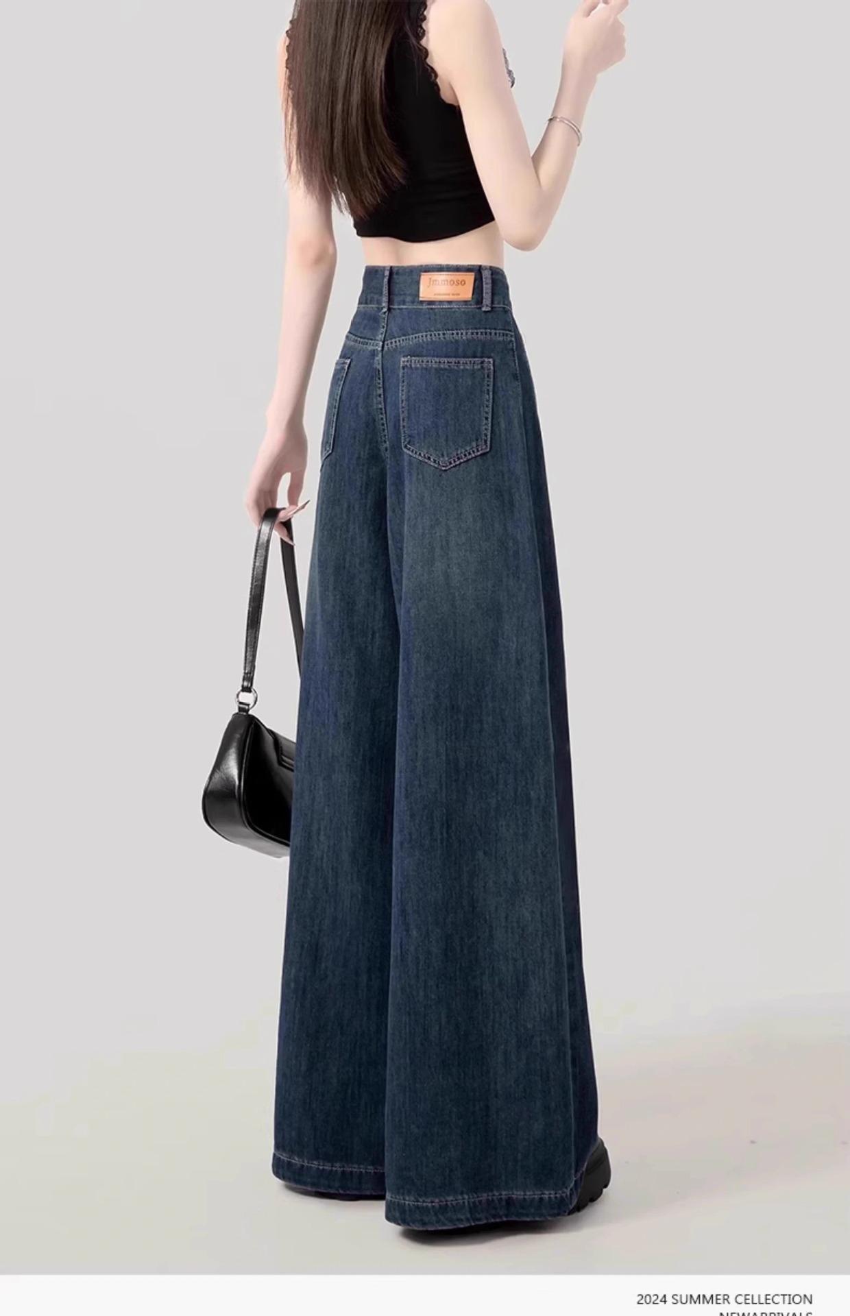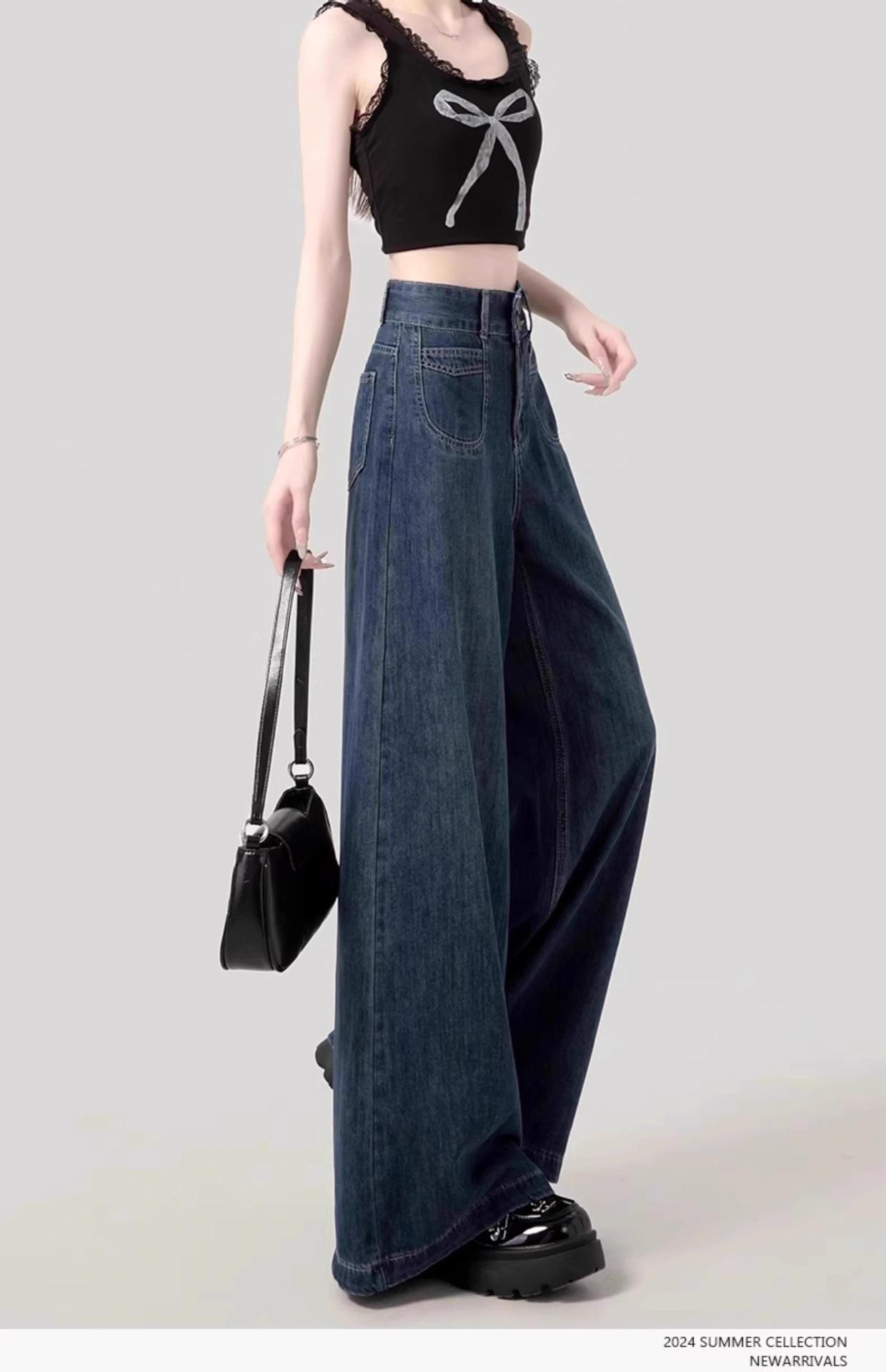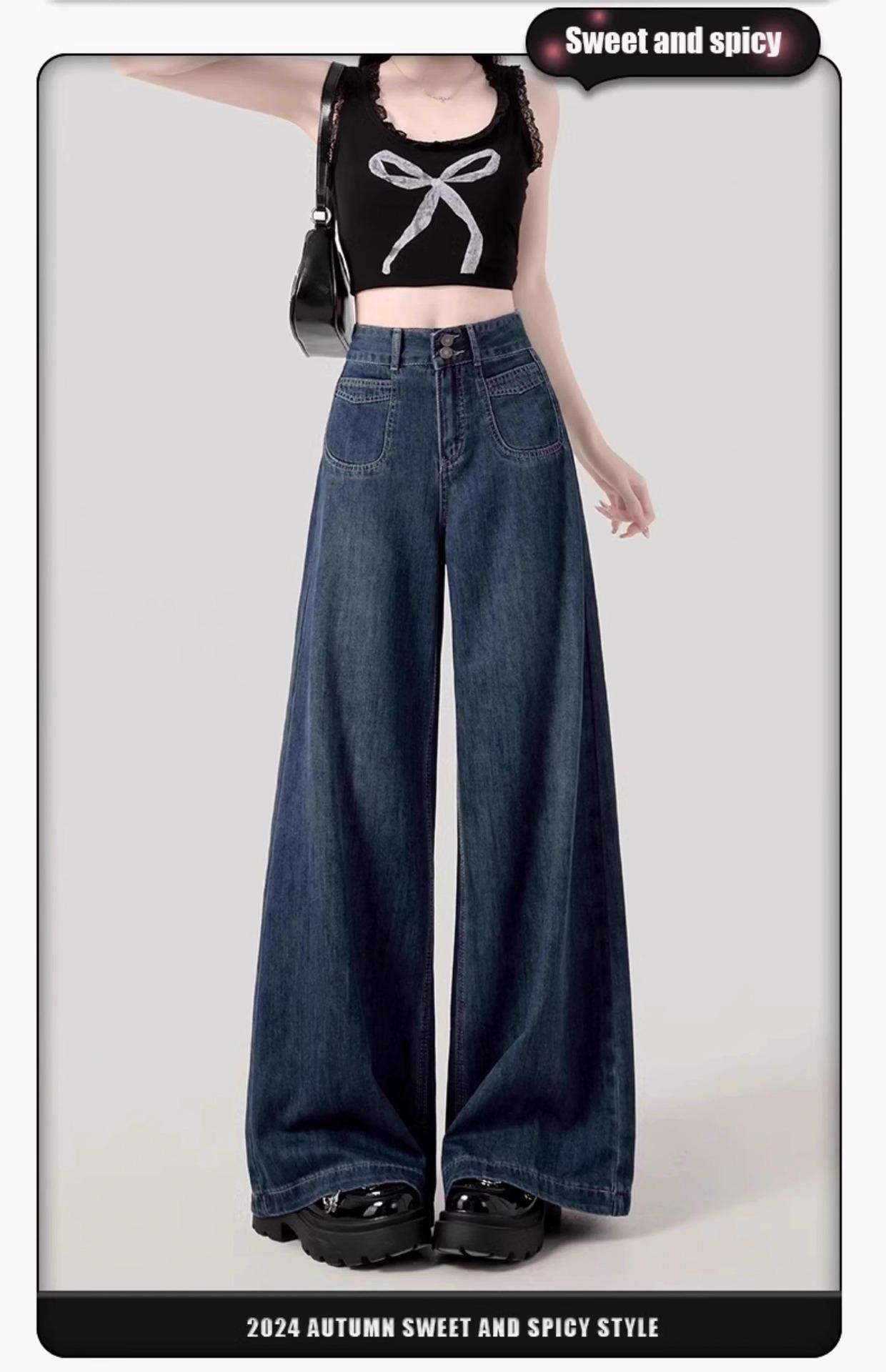 Jeans Vintage de Cintura Alta y Pierna Ancha Moda Femenina Combinación Versátil Nuevo Casual Holgado Adelgazante Recto Pantalones Largos