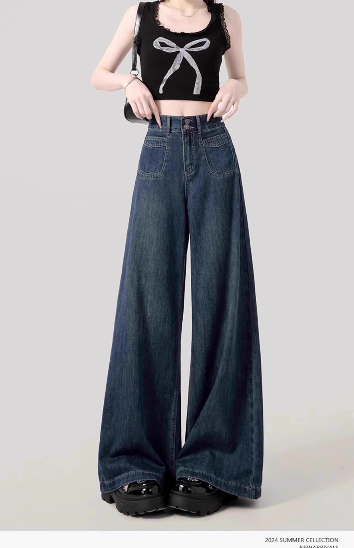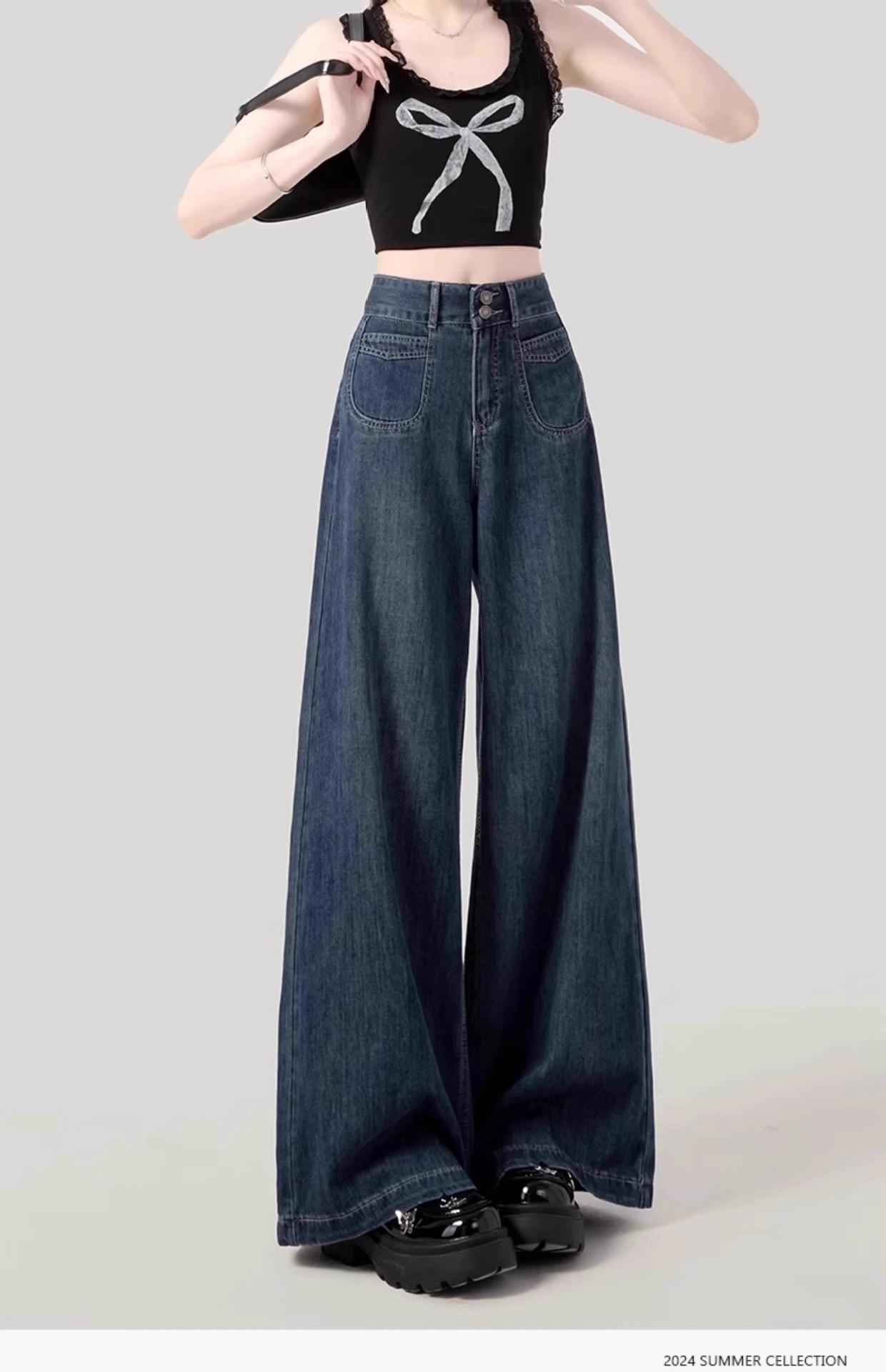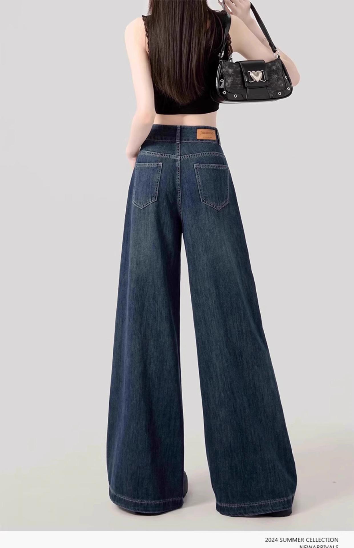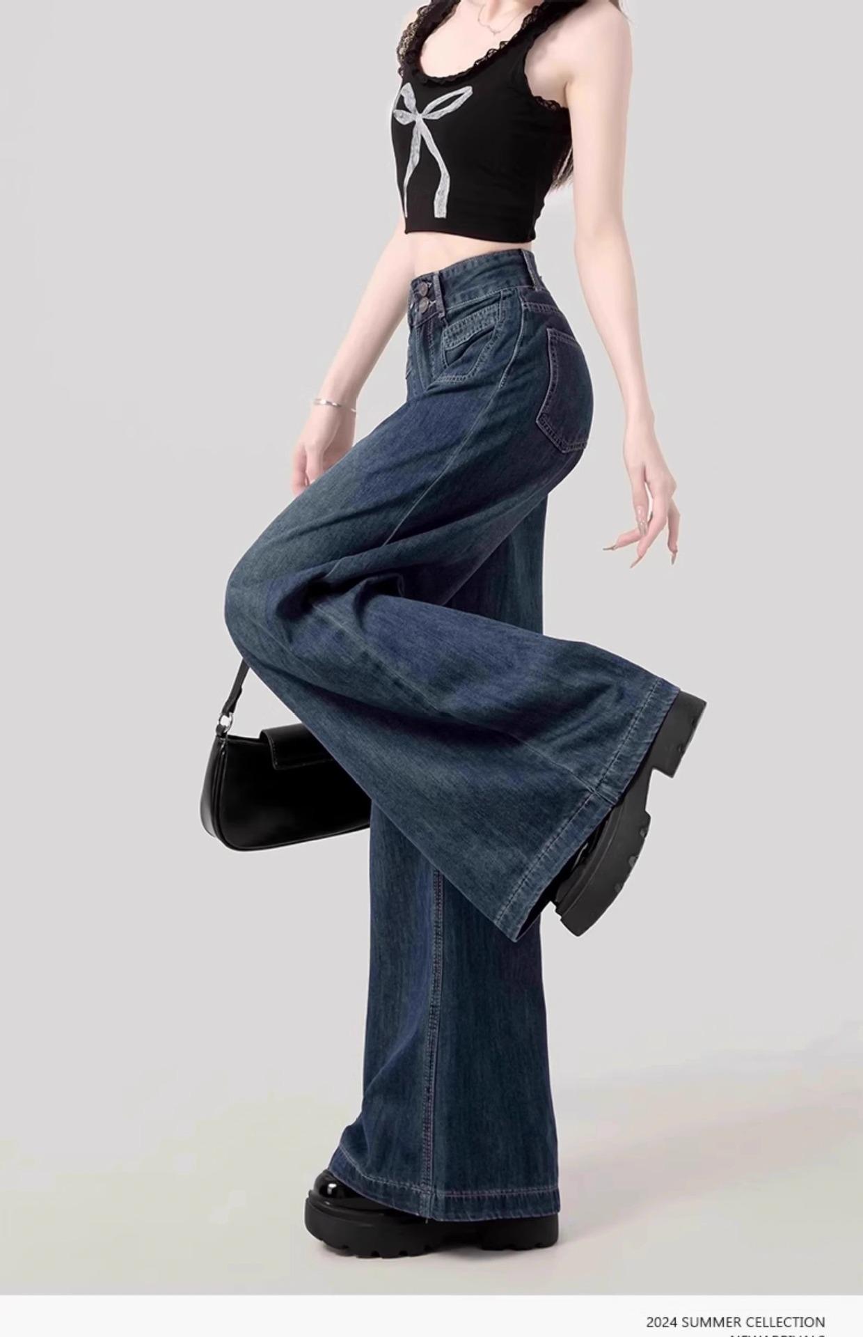 Jeans Vintage de Cintura Alta y Pierna Ancha Moda Femenina Combinación Versátil Nuevo Casual Holgado Adelgazante Recto Pantalones Largos