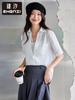 Camisa Zhenxi de Tencel con Encaje y Cuello Medio Abierto para Mujer, Elegante para Oficina, Blanca, Top Sq891
