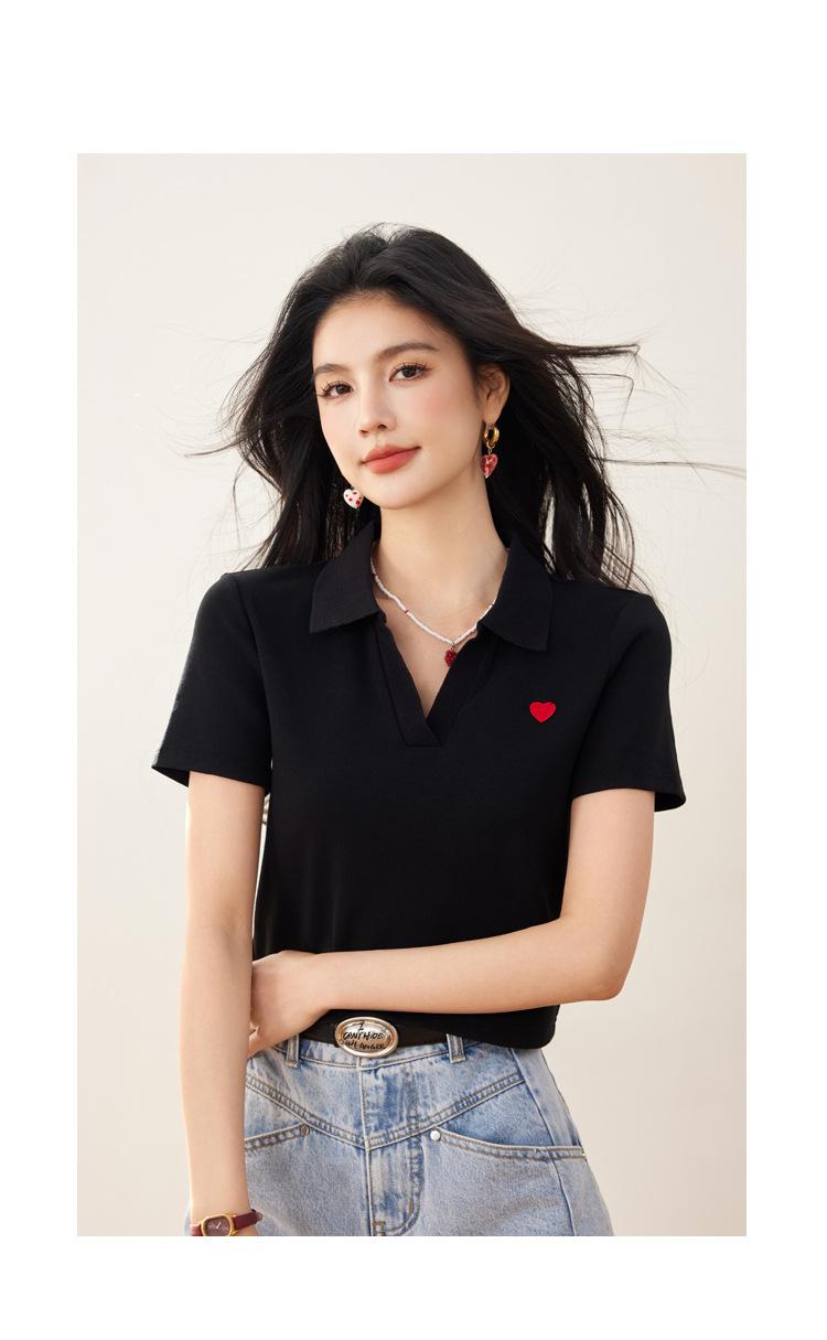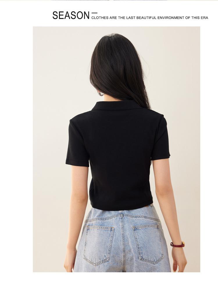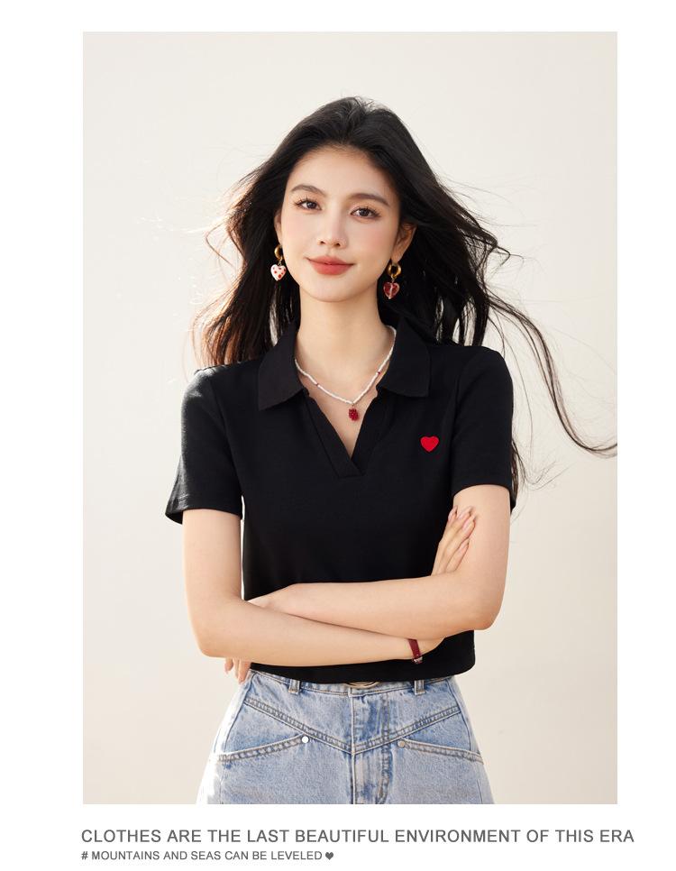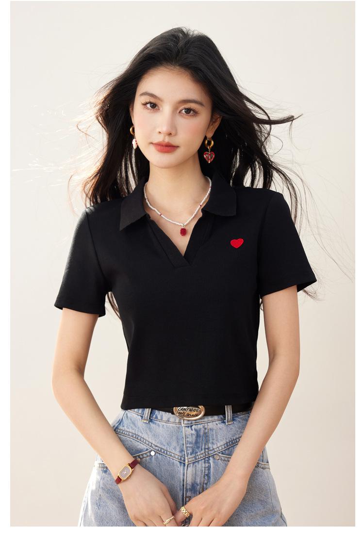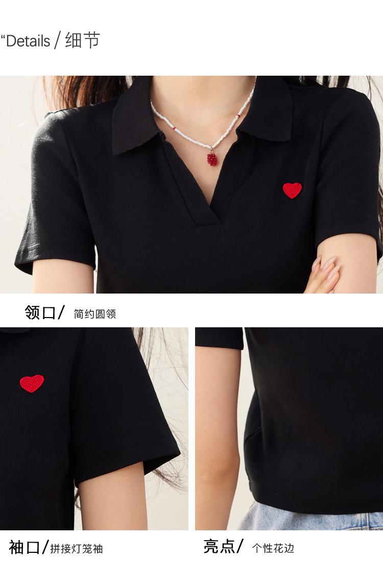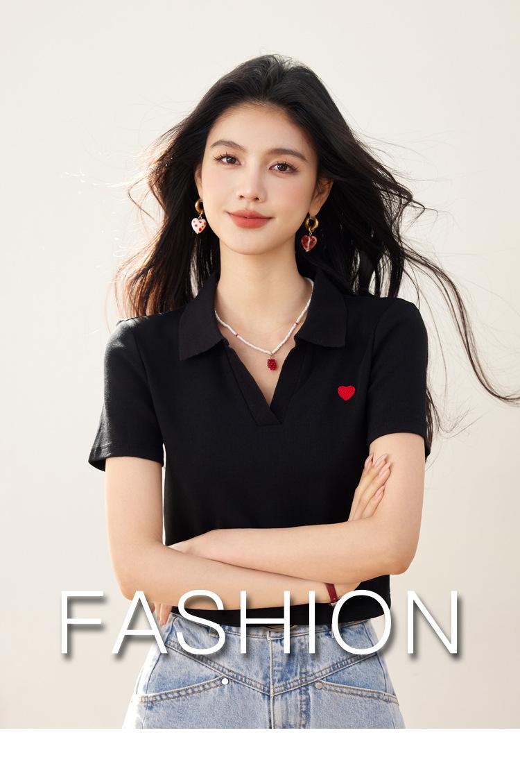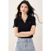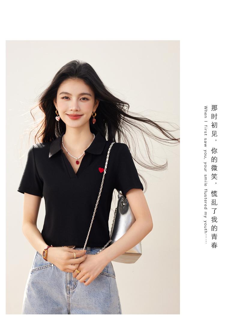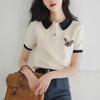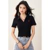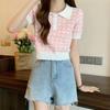 Amor Camiseta de Punto de Mujer Diseño Verano 2025 Cuello Polo Manga Corta Francesa Top Jacquard