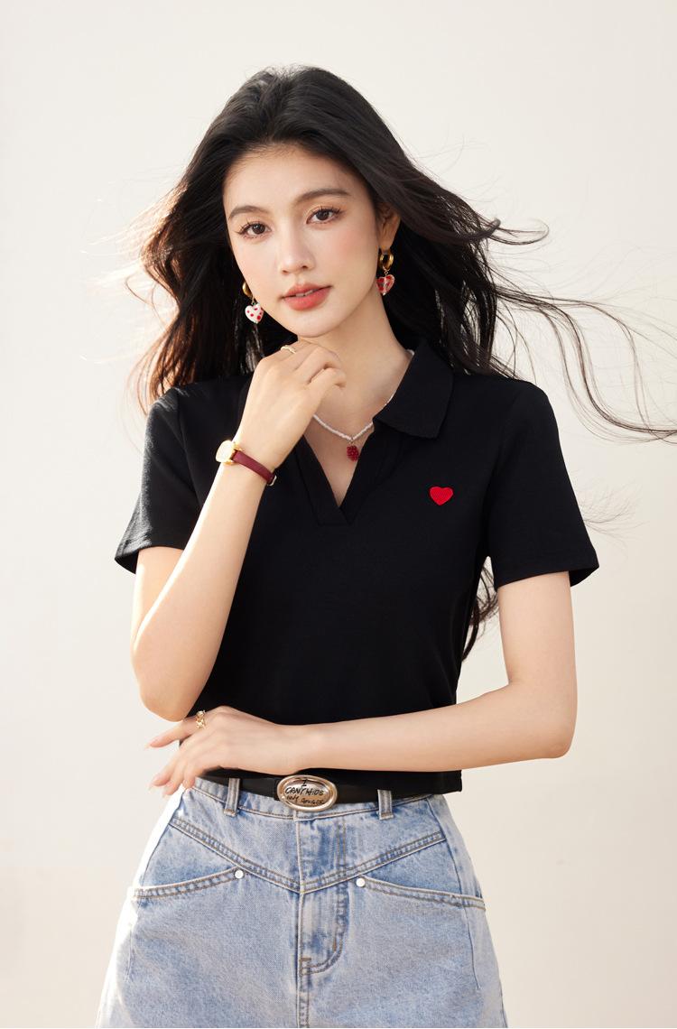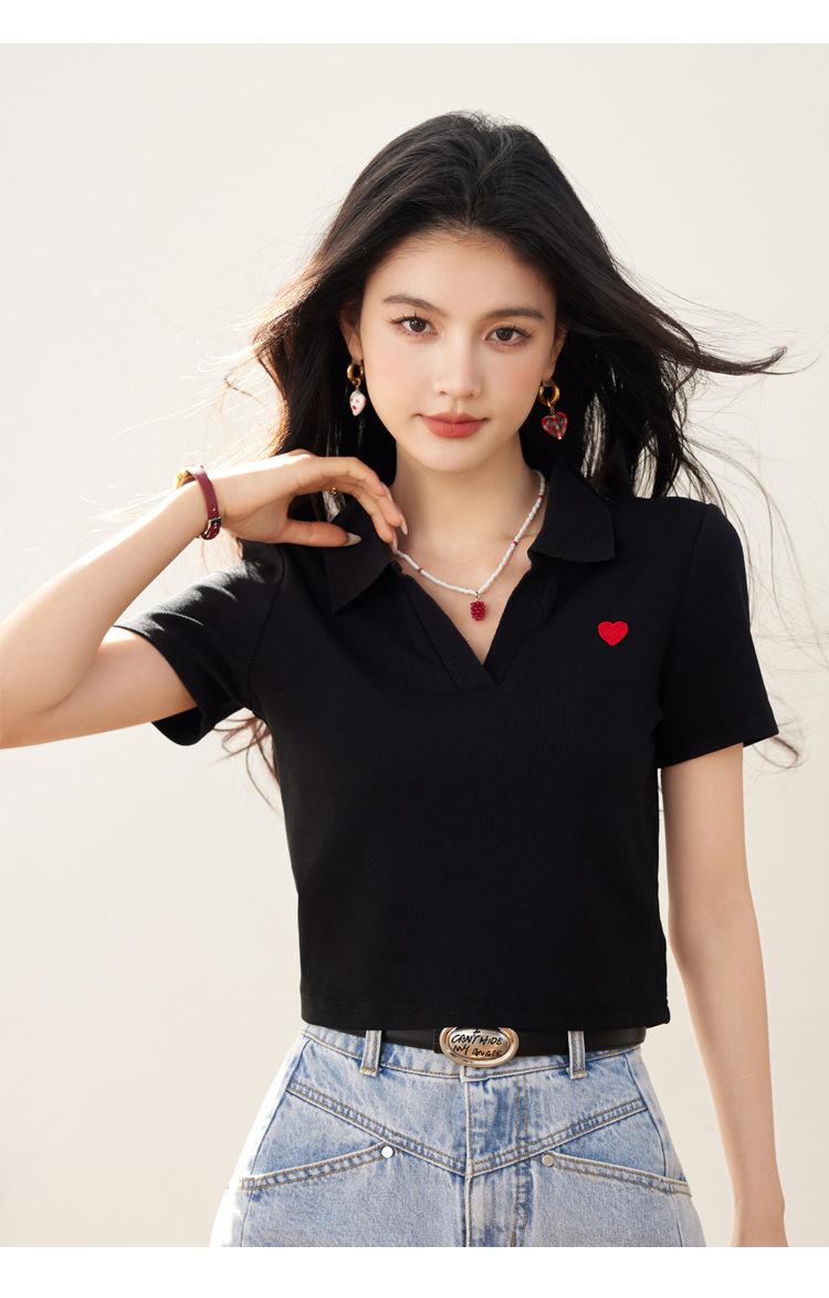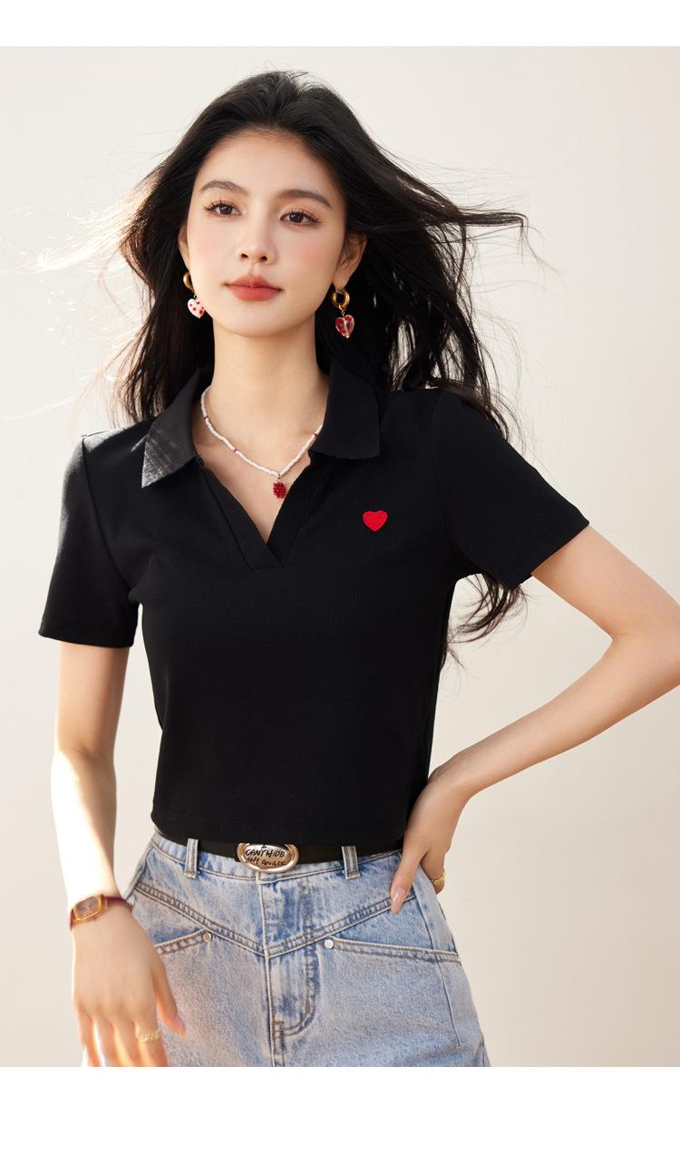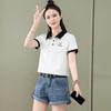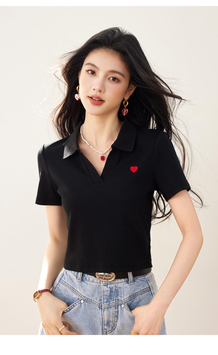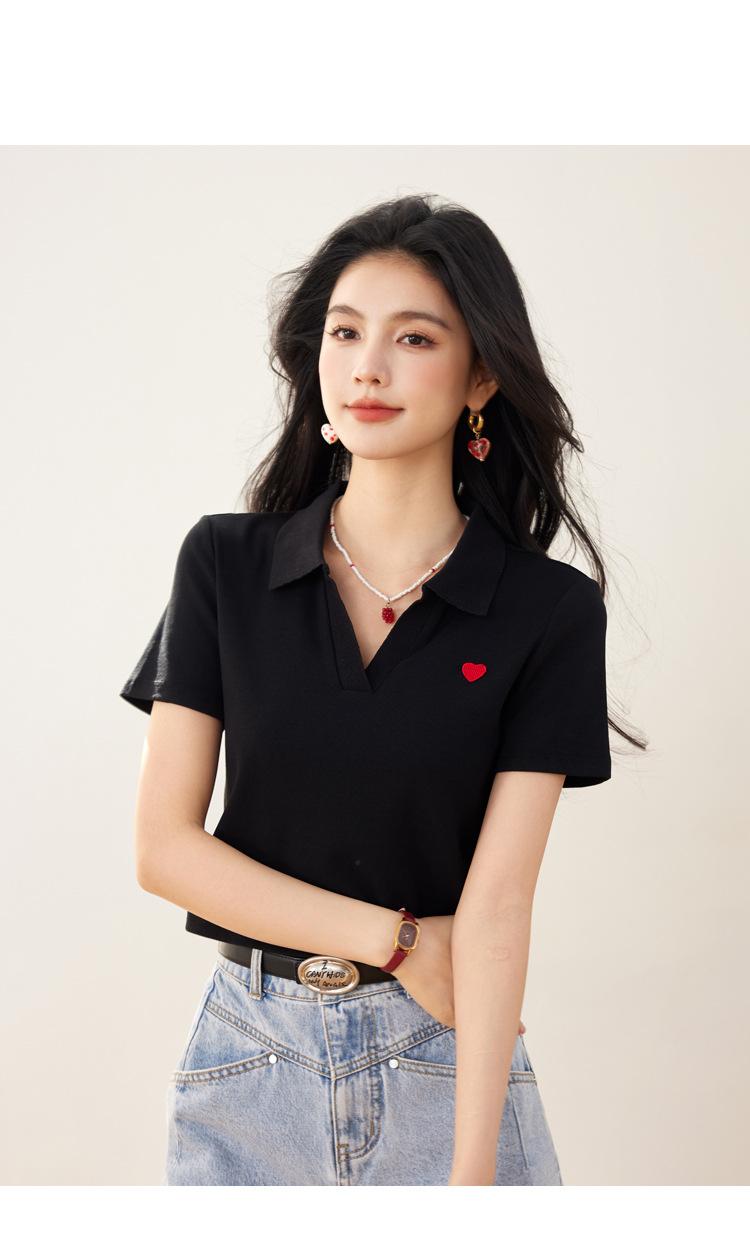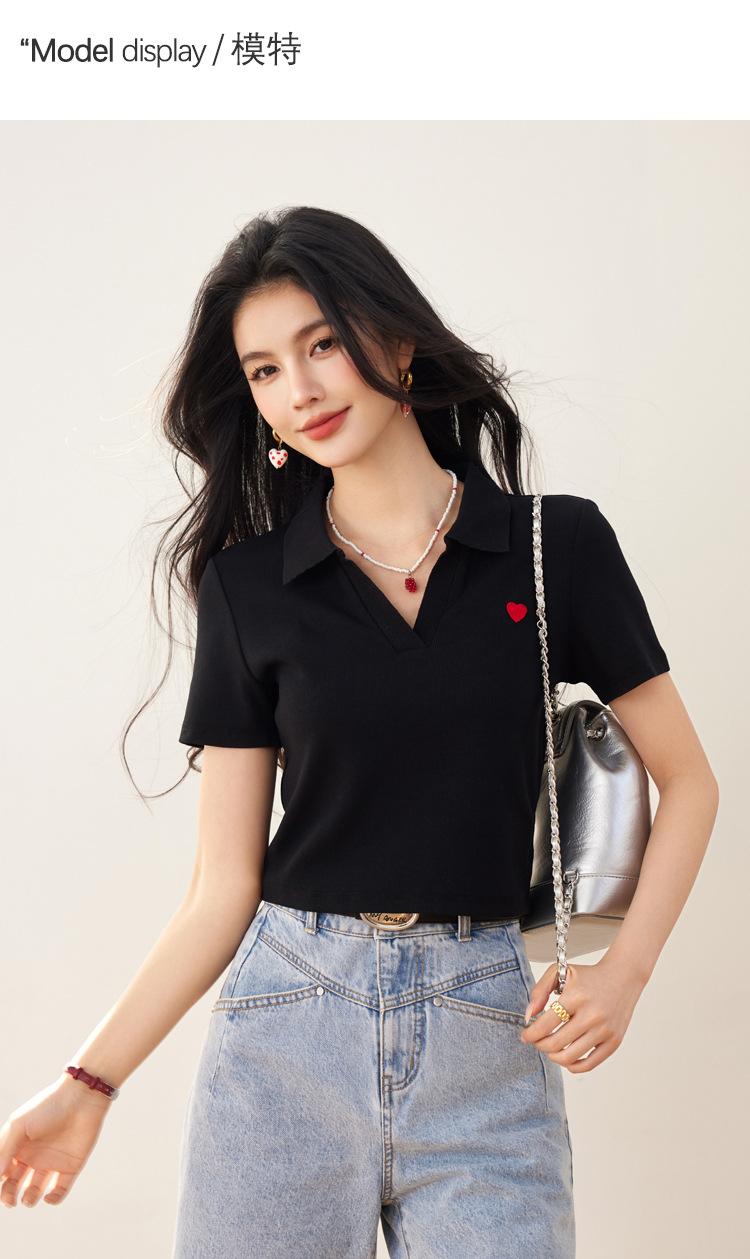 Amor Camiseta de Punto de Mujer Diseño Verano 2025 Cuello Polo Manga Corta Francesa Top Jacquard
