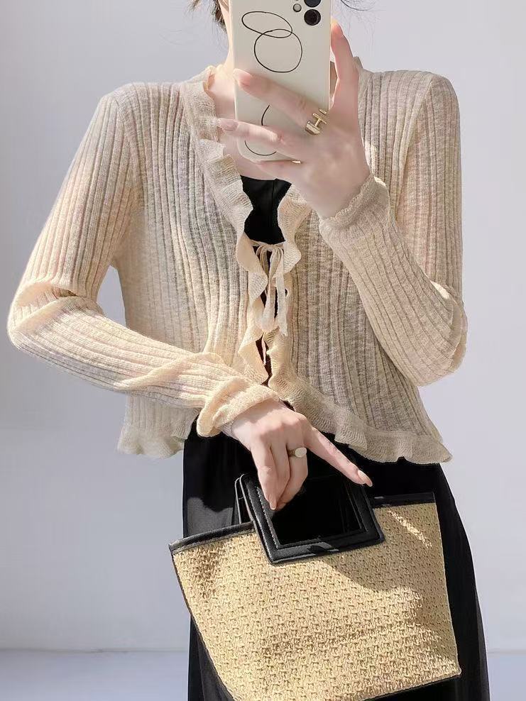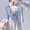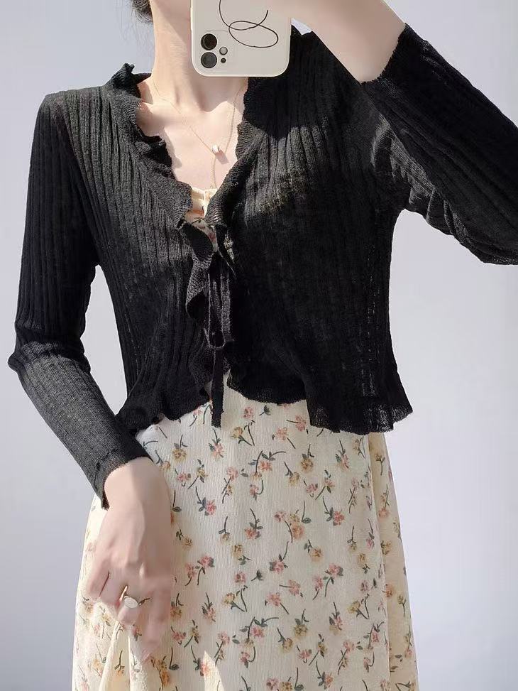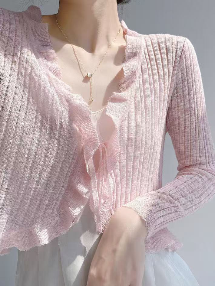 Cárdigan de Punto de Verano para Mujer con Cuello en V y Manga Larga, Delgado y Protección Solar, Primavera, Estilo Europeo y Americano