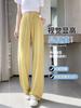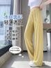 Pantalones de Pierna Ancha de Seda de Hielo para Mujer 2025 Nuevo Verano Delgados de Cintura Alta Drapeados Casuales Frescos Slim Rectos