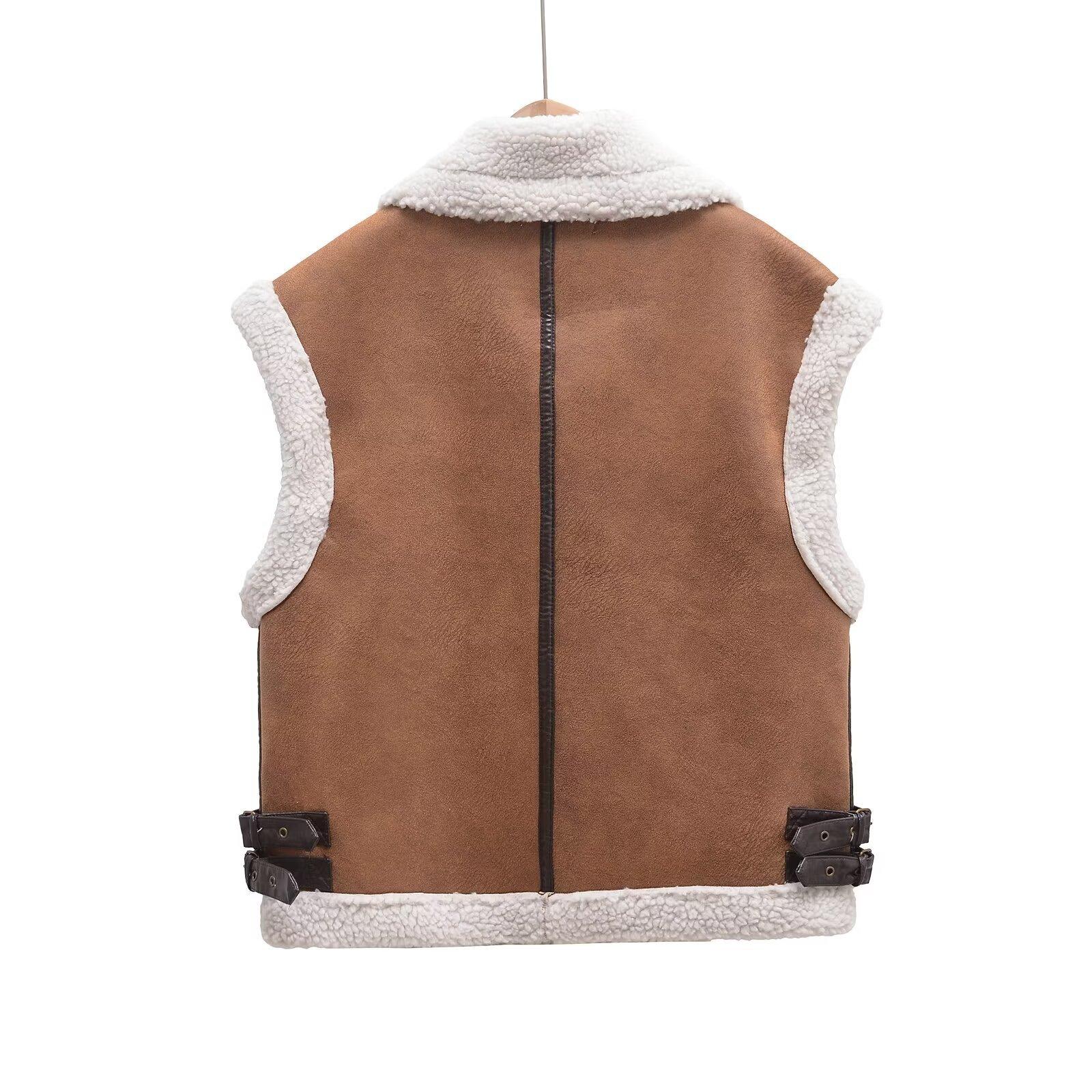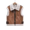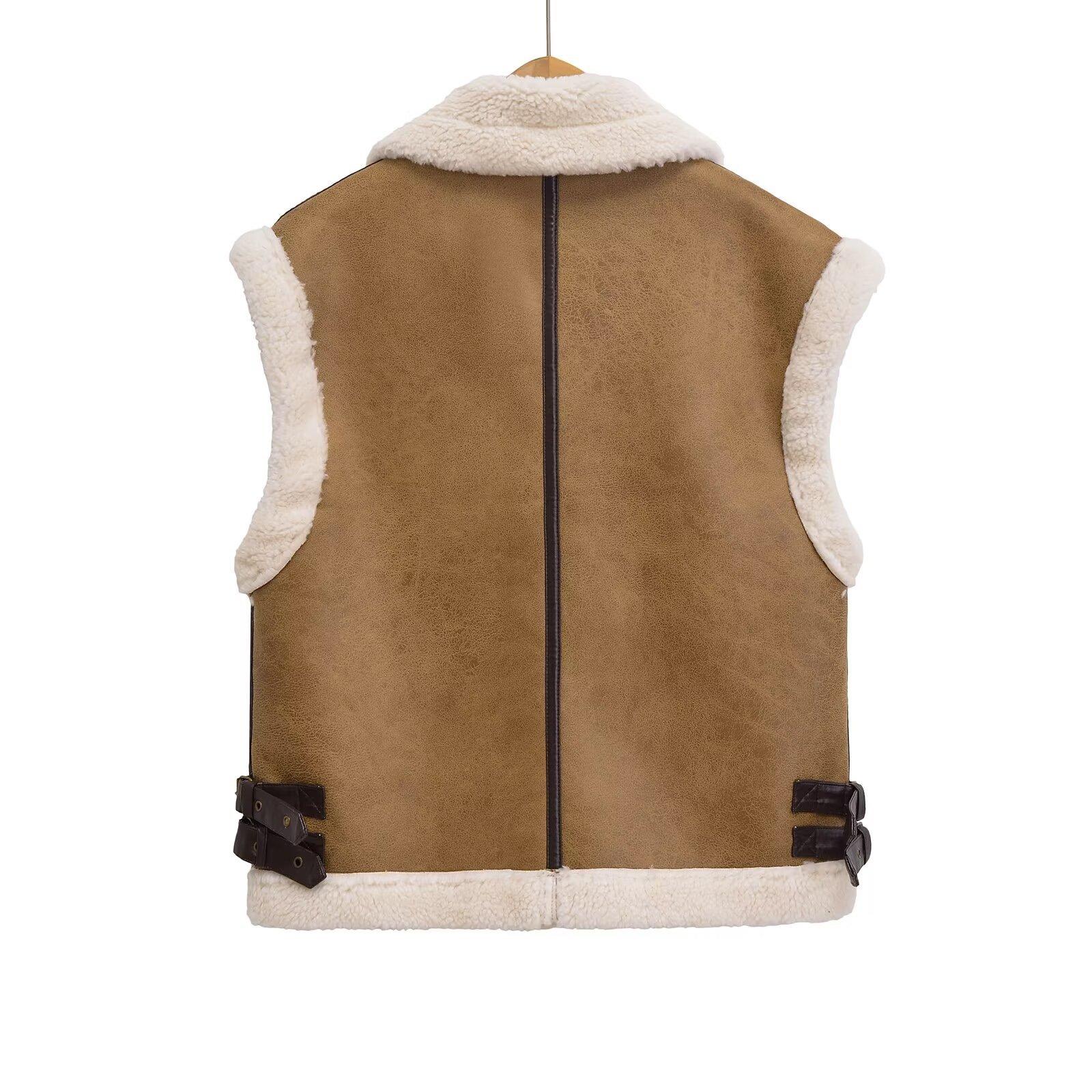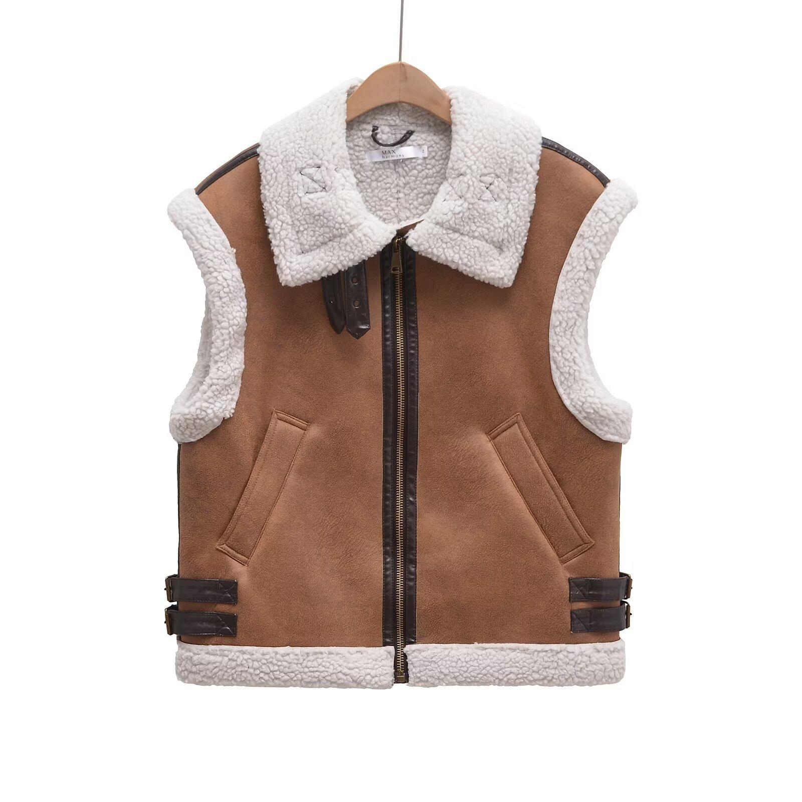 Amazon Otoño e Invierno Nuevo Abrigo Chaleco de Piel Uno Retro Lana de Cordero Suelto Cierre de Cremallera Gamuza Exterior Engrosado