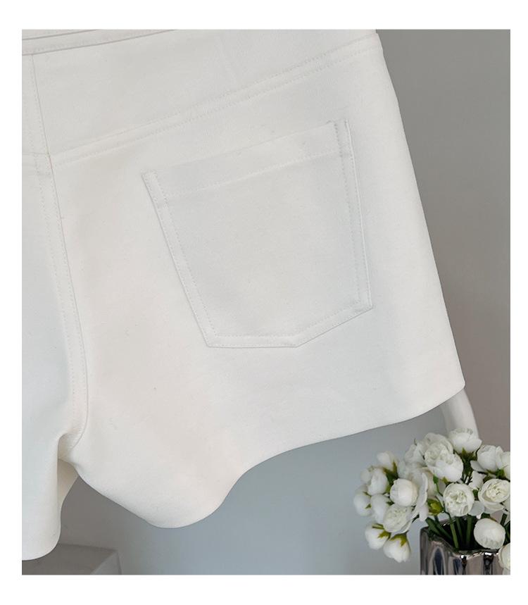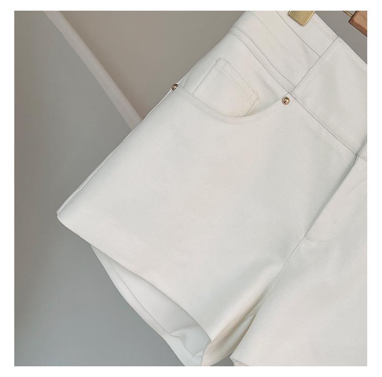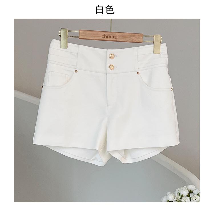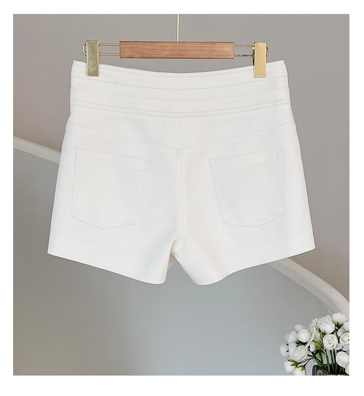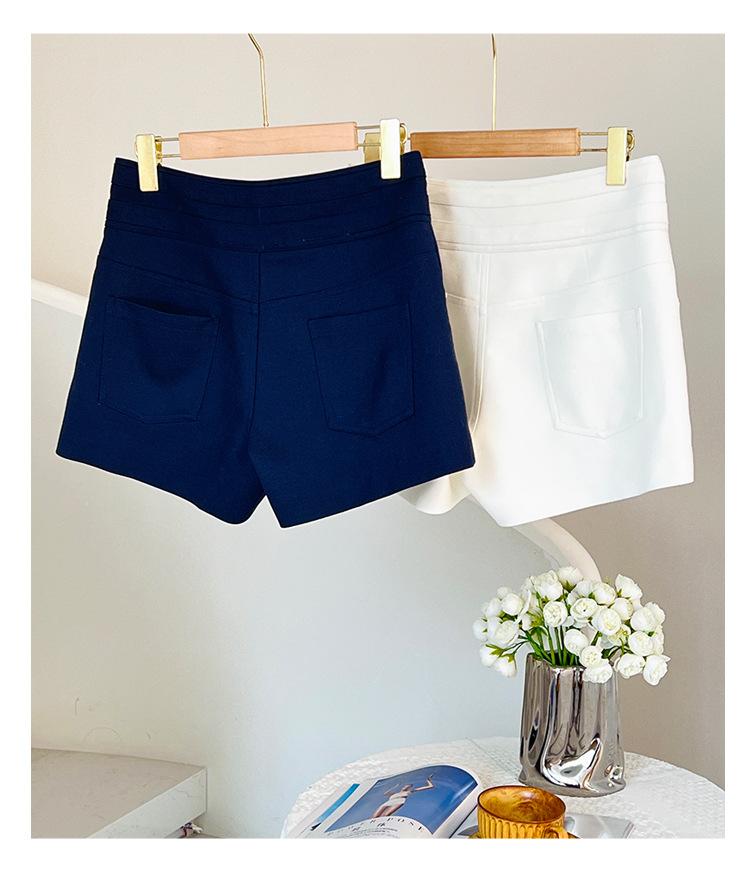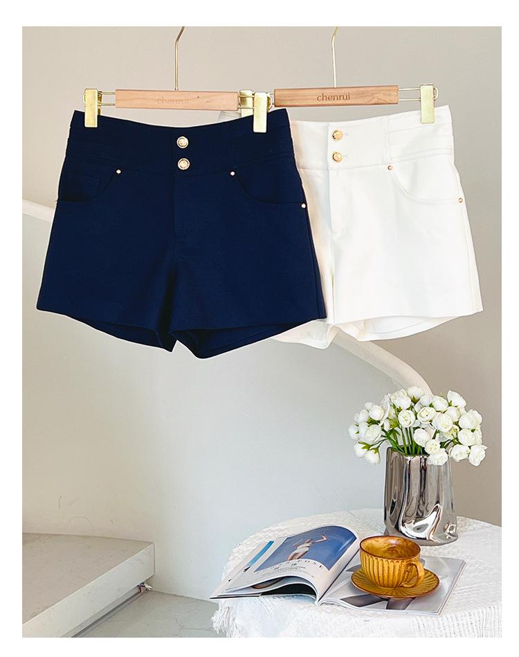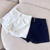 Anfiona 2025 Nuevo Azul Marino Casual Cintura Alta Elástico Adelgazante Look y Alto Sexy Shorts de Mujer Blancos