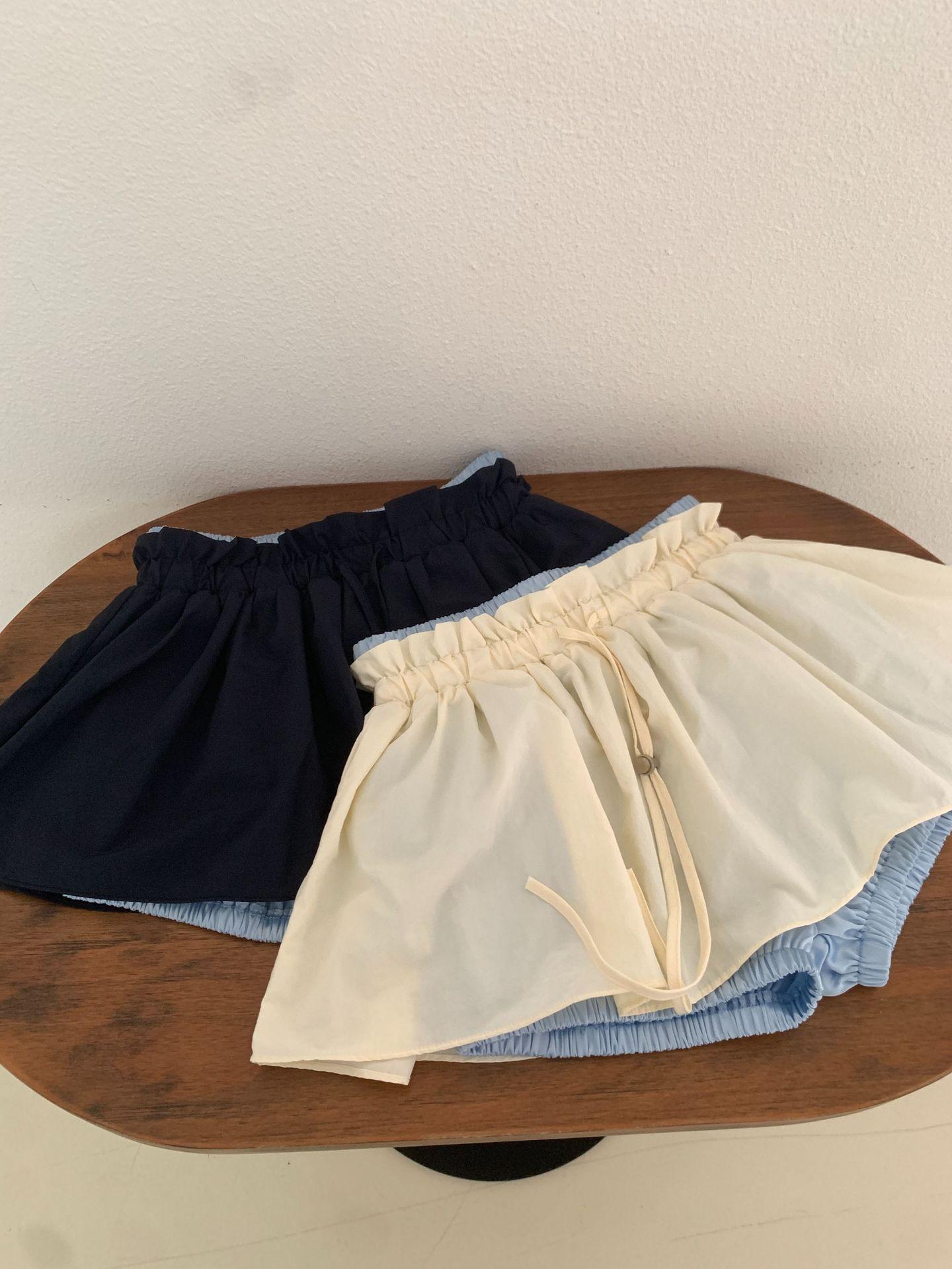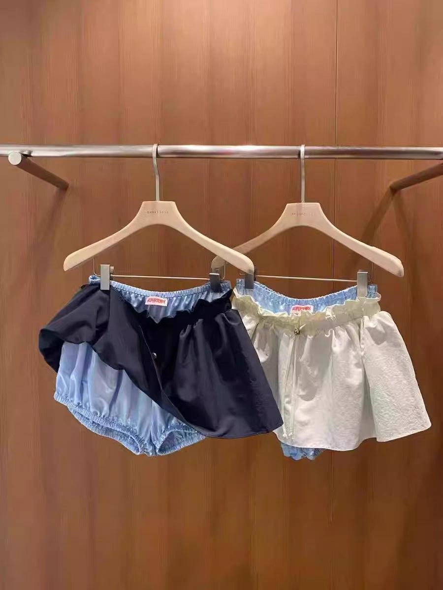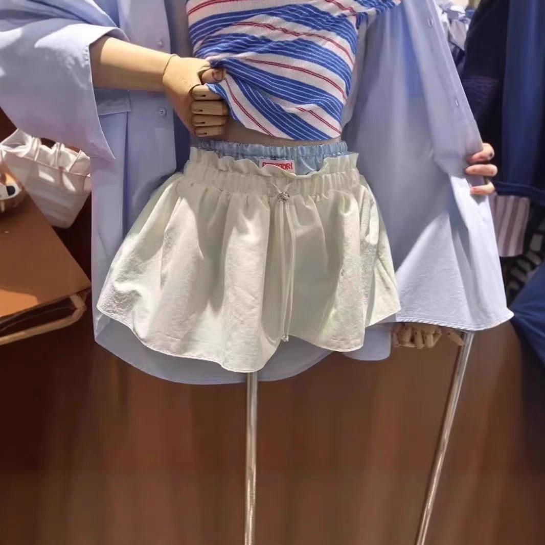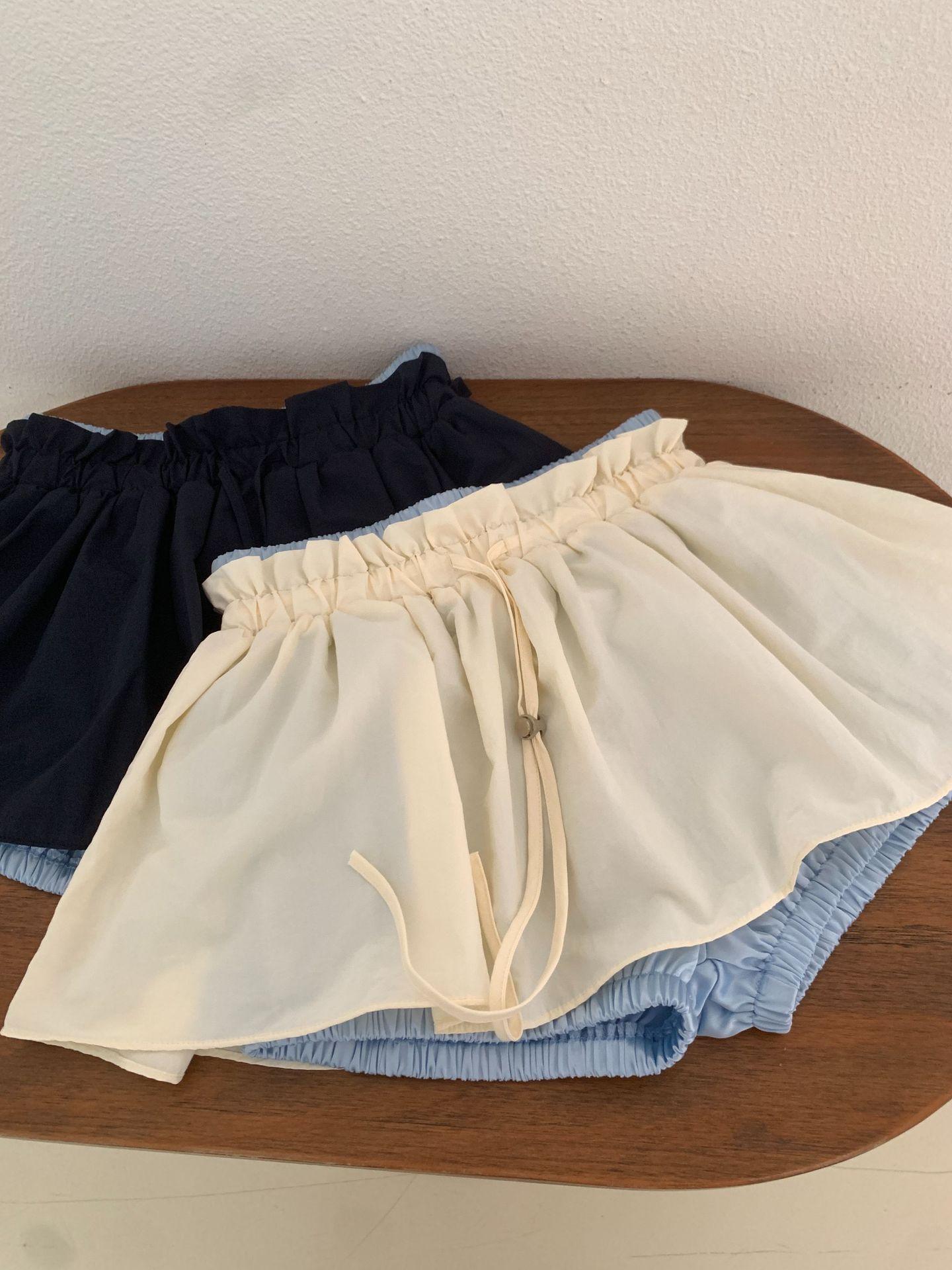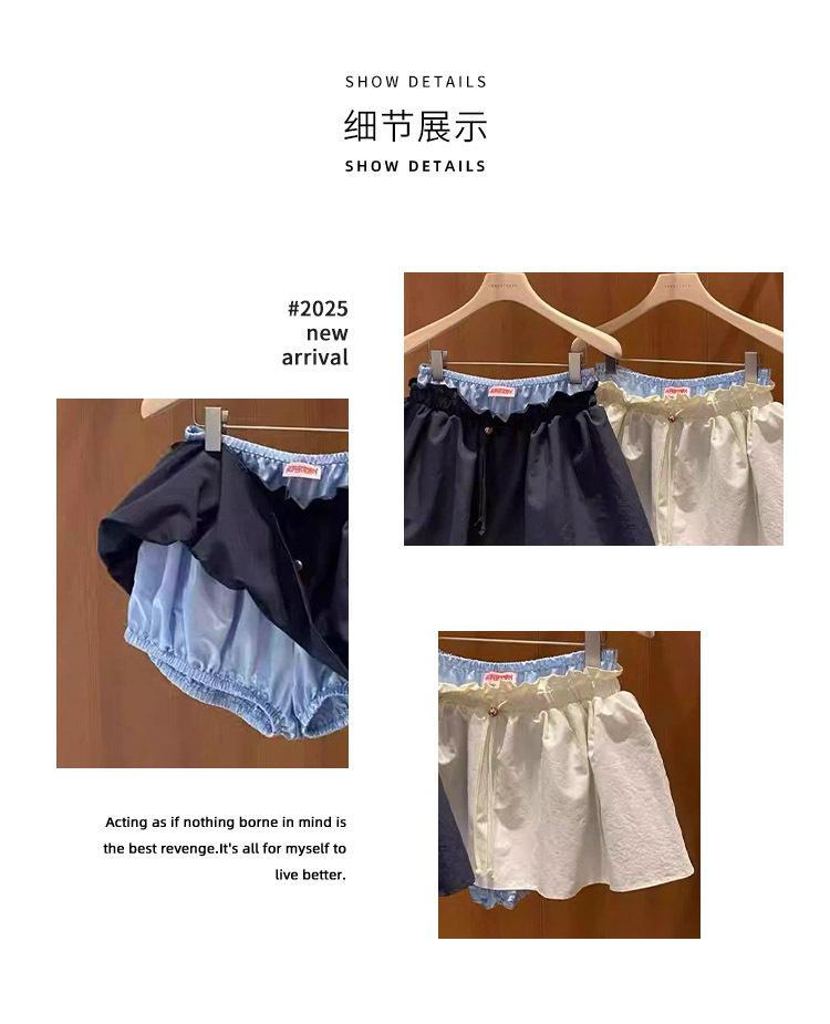 Ahora H2025 Nuevo Estilo de Verano Coreano Dongdaemun Costuras Color Contrastante Falda Cordón Falso Dos Piezas Línea A Look Adelgazante Culottes