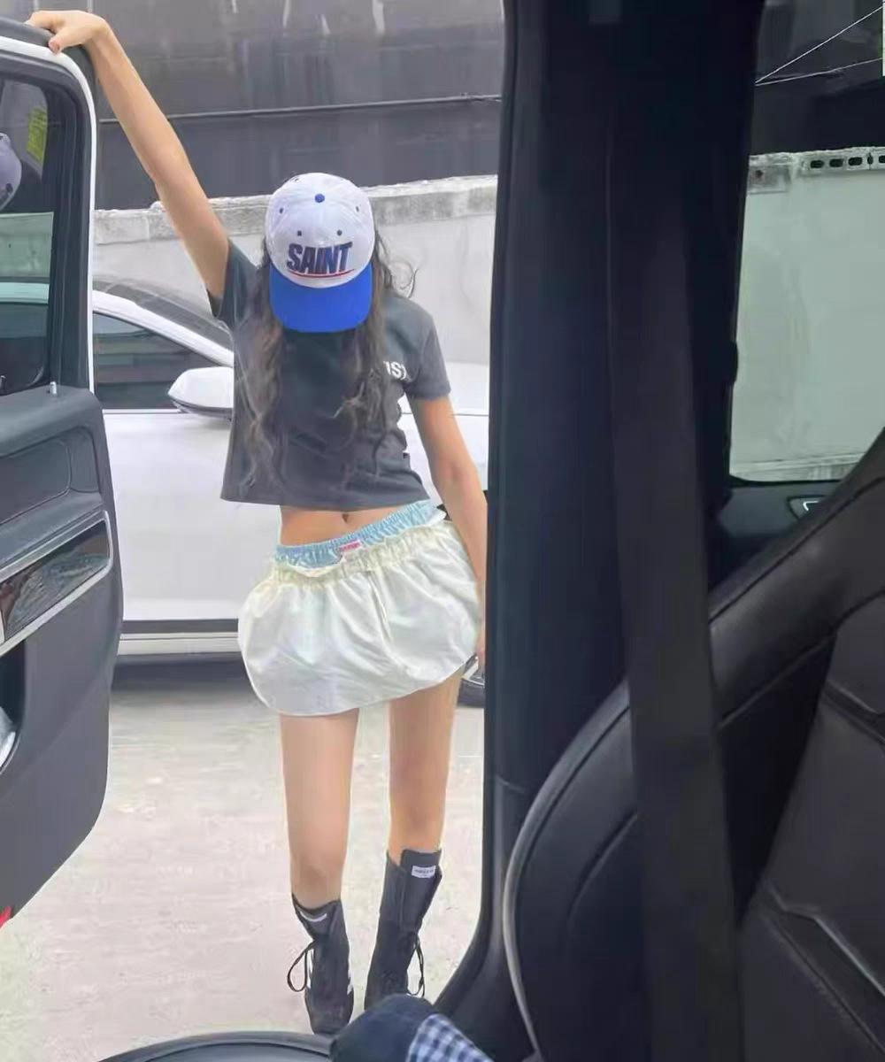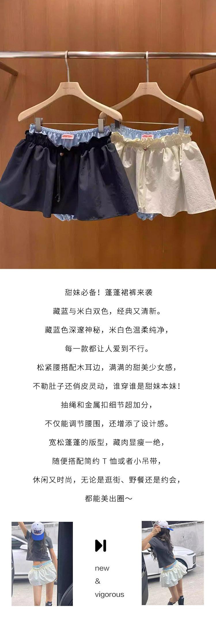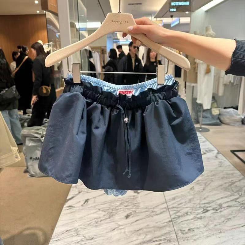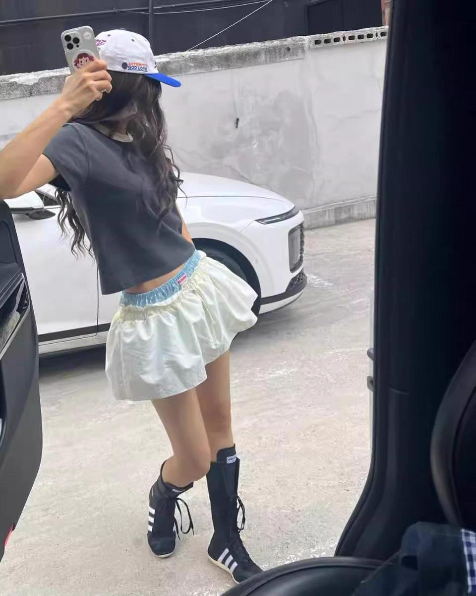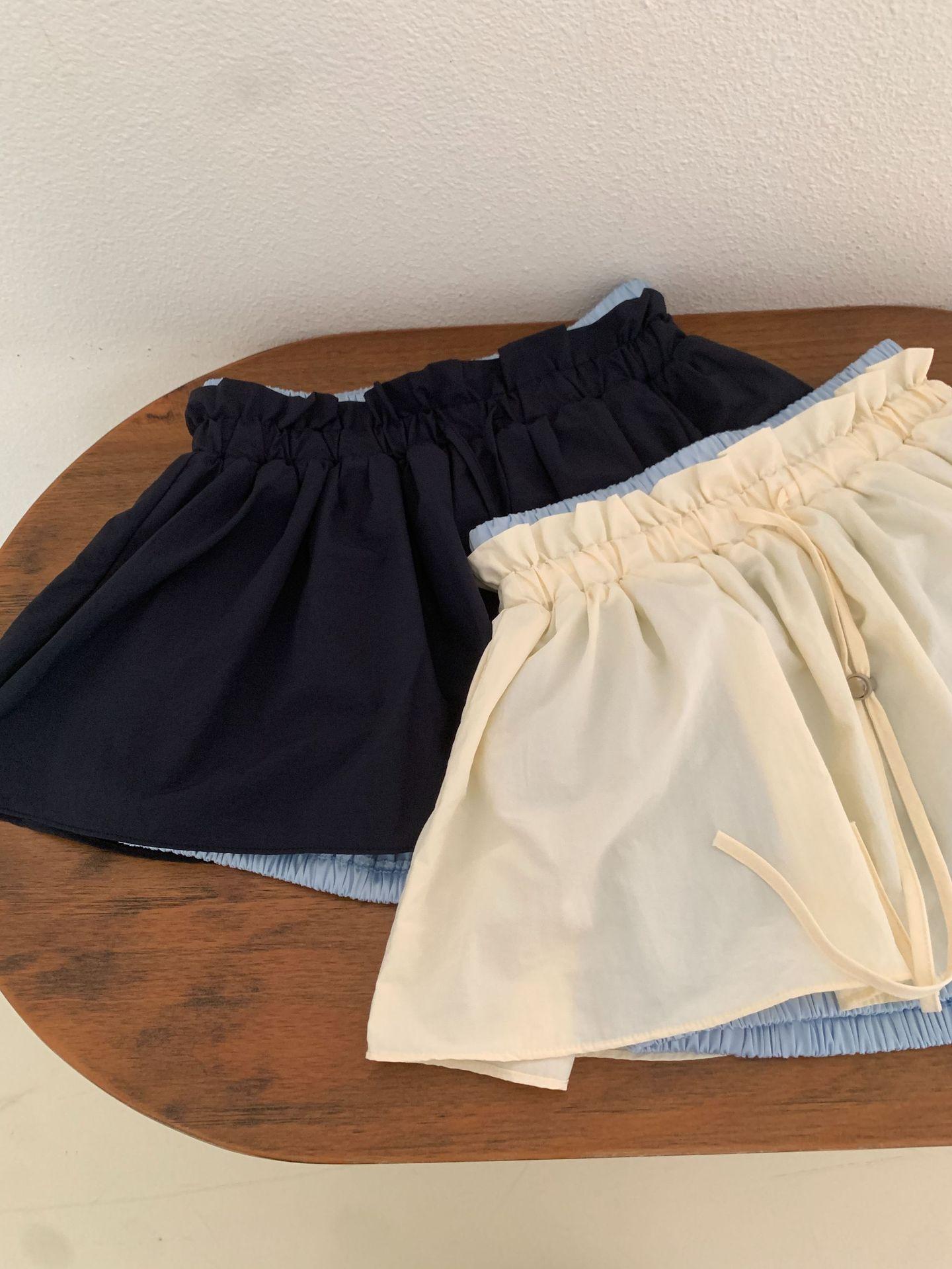 Ahora H2025 Nuevo Estilo de Verano Coreano Dongdaemun Costuras Color Contrastante Falda Cordón Falso Dos Piezas Línea A Look Adelgazante Culottes