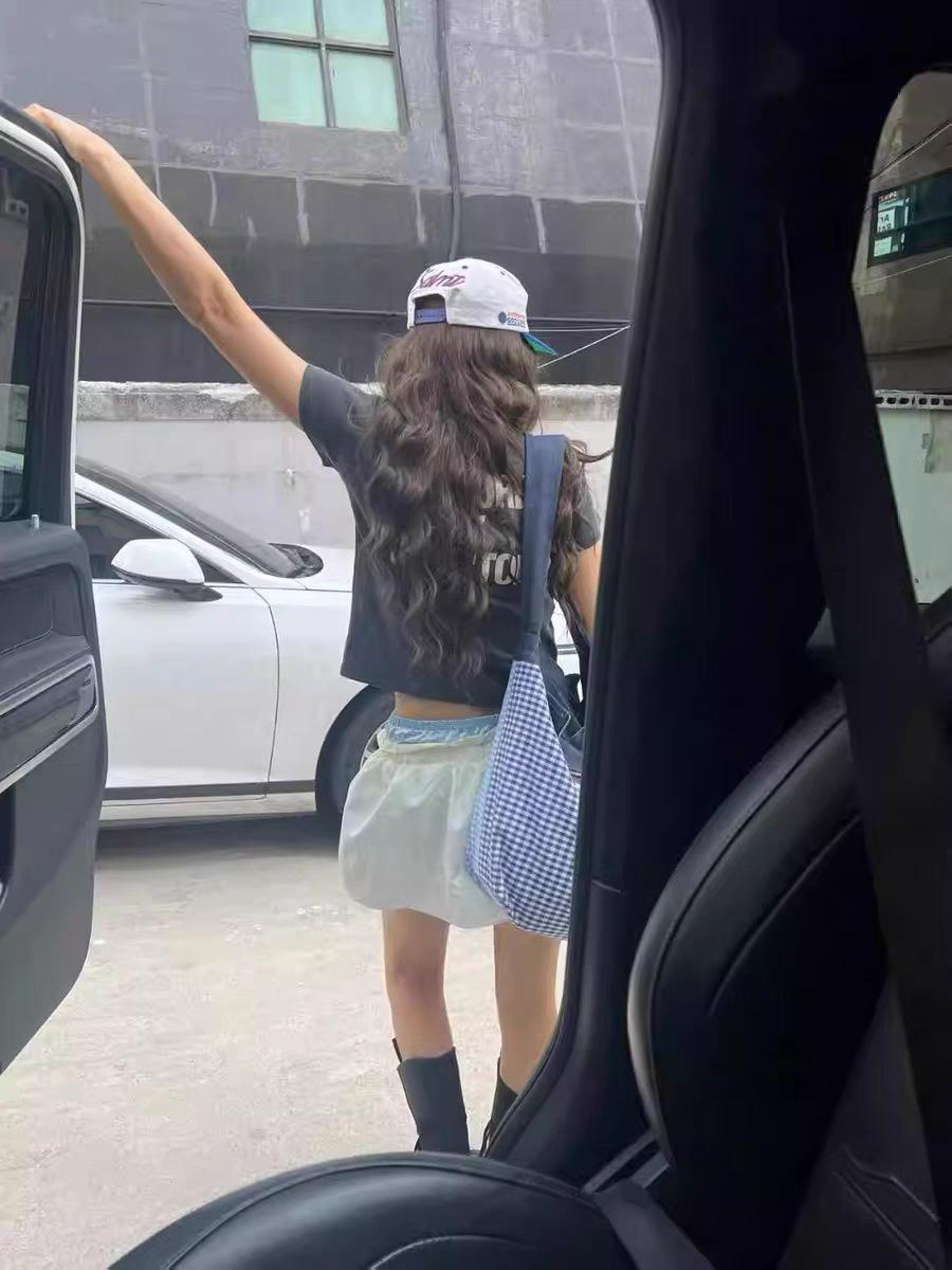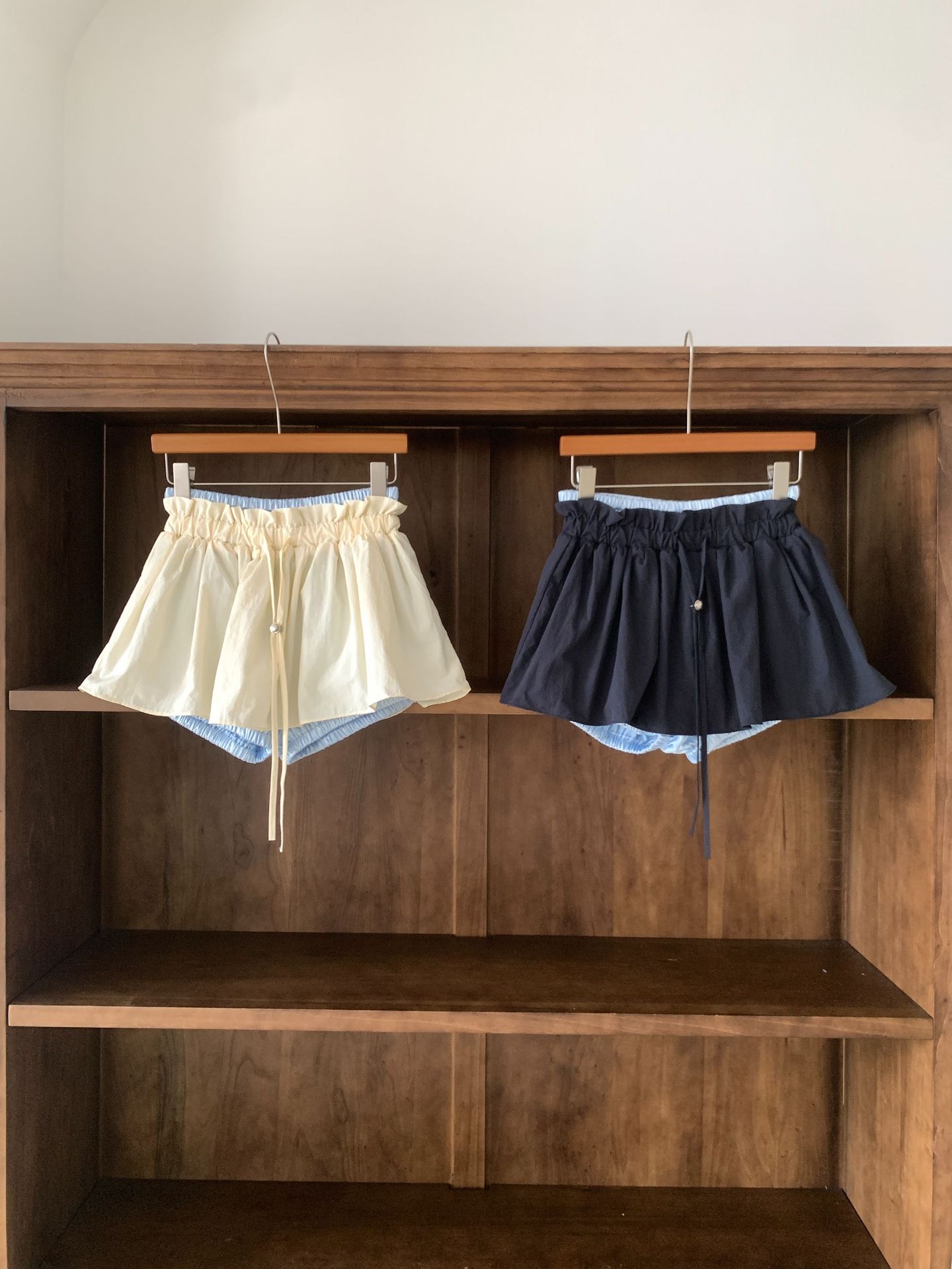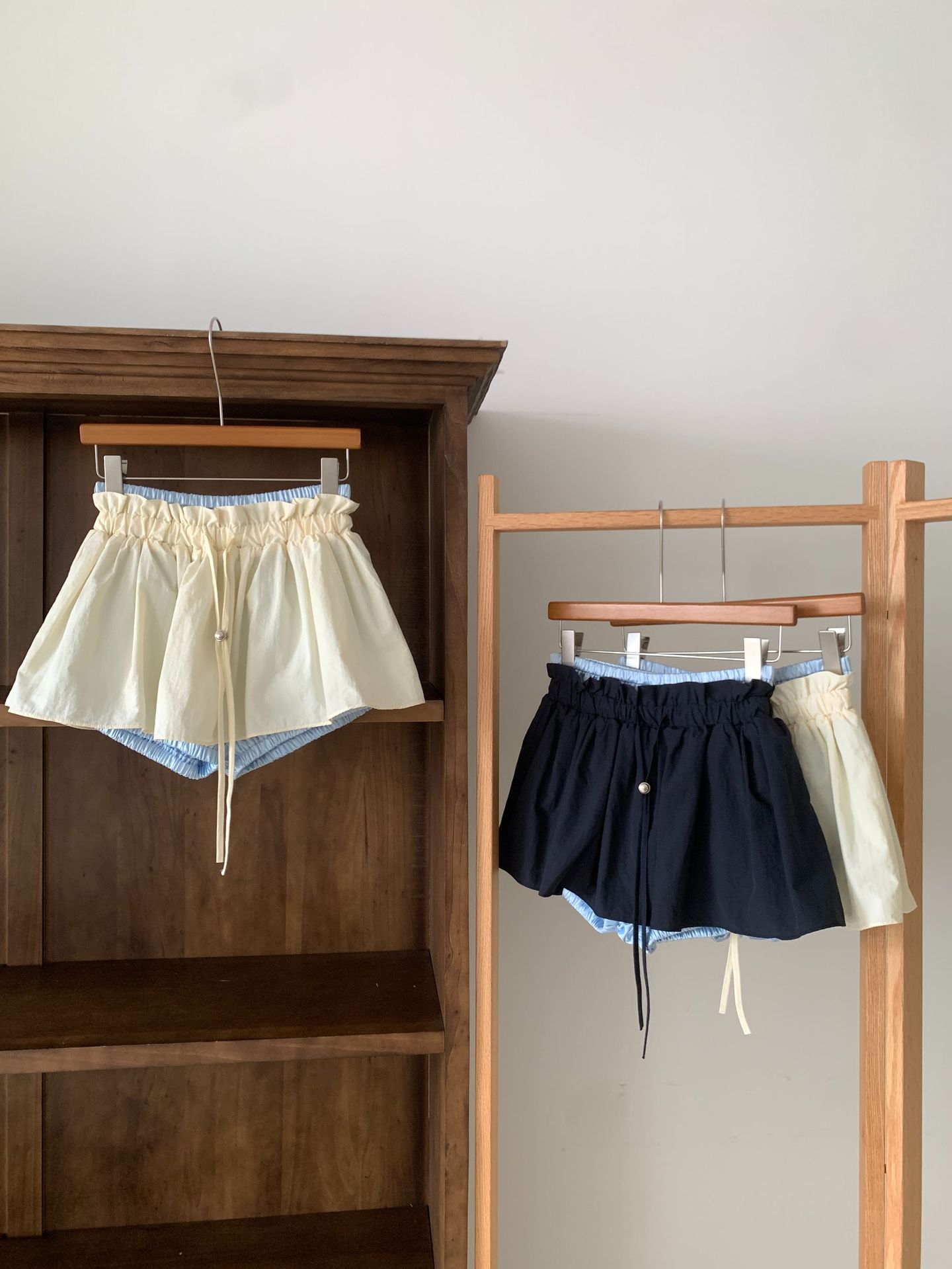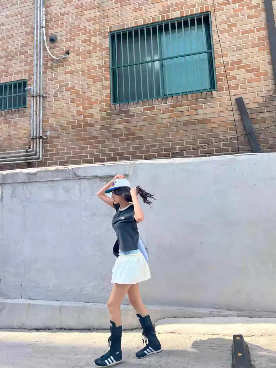 Ahora H2025 Nuevo Estilo de Verano Coreano Dongdaemun Costuras Color Contrastante Falda Cordón Falso Dos Piezas Línea A Look Adelgazante Culottes