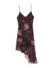 Estilo Festivo Europeo y Americano Falda Asimétrica Estampada de Tirantes Verano Cintura Adelgazante Look Encaje Empalmado Vestido Cuello en V Falda Corta
