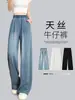 Jeans de Tencel para Mujer, Verano 2026, Delgados de Cintura Alta, Caída Amplia de Pierna Ancha, Corte Holgado, Versión Estrecha Petite, Pantalones Rectos de Seda Hielo