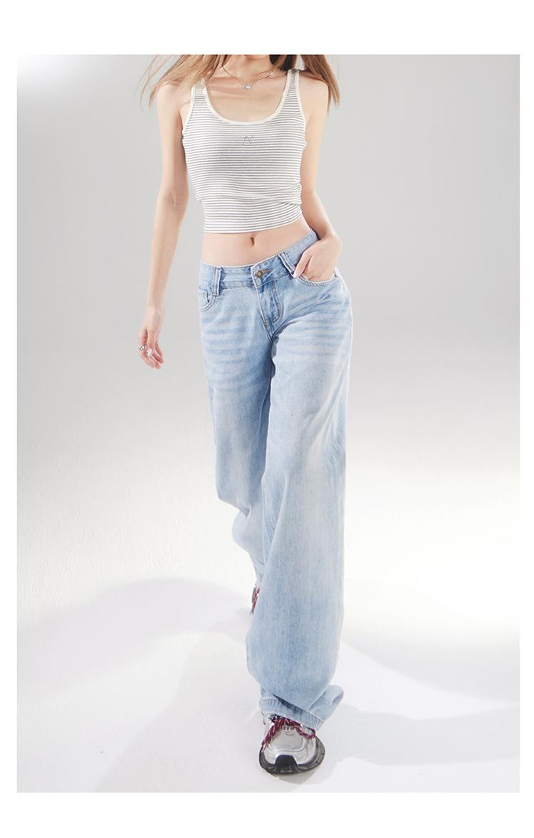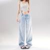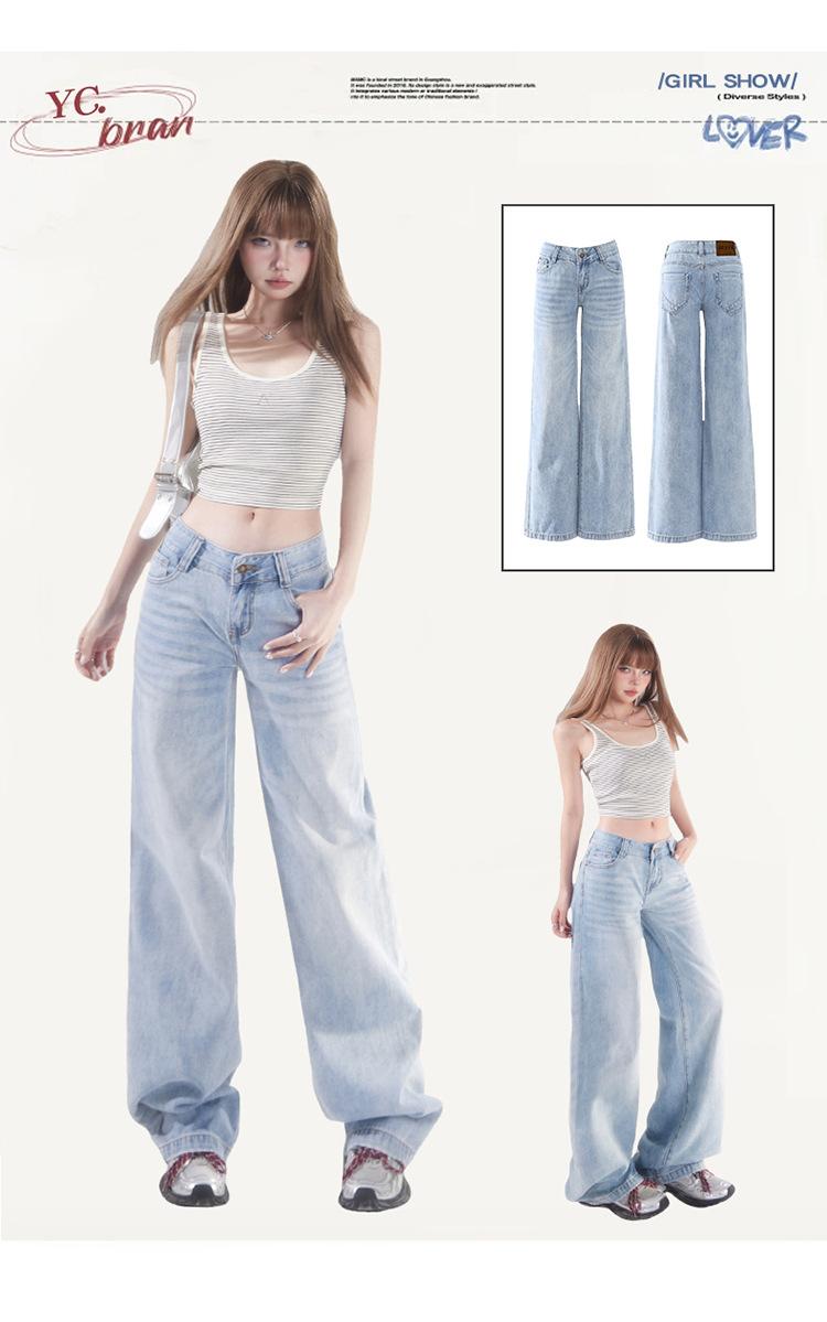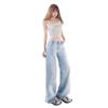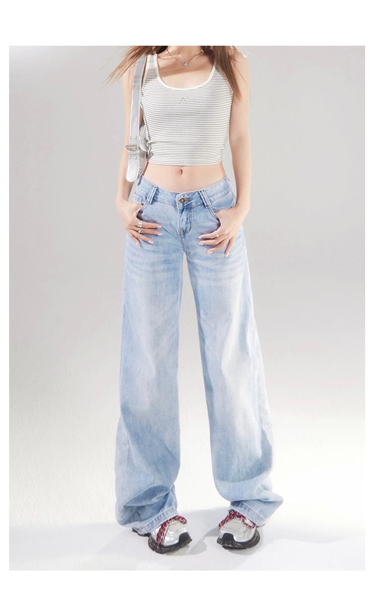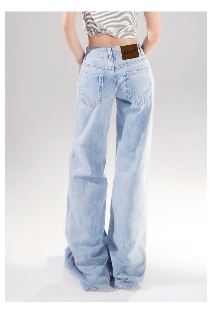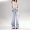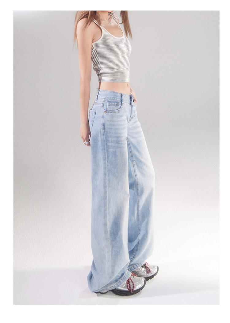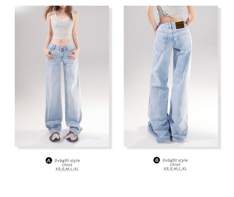 Young Orange# Primavera y Verano Nuevo azul claro Jeans de Cintura Baja Pierna Ancha Pantalones Holgados Adelgazantes para Mujer Casuales Combinan con Todo Pantalones de Pierna Recta