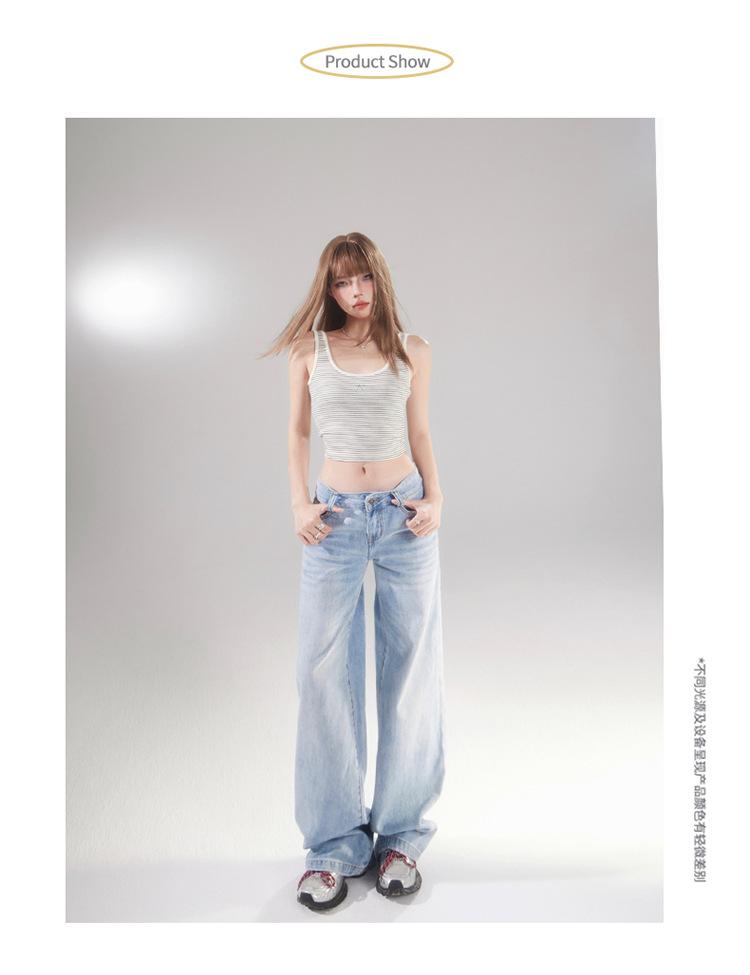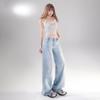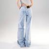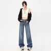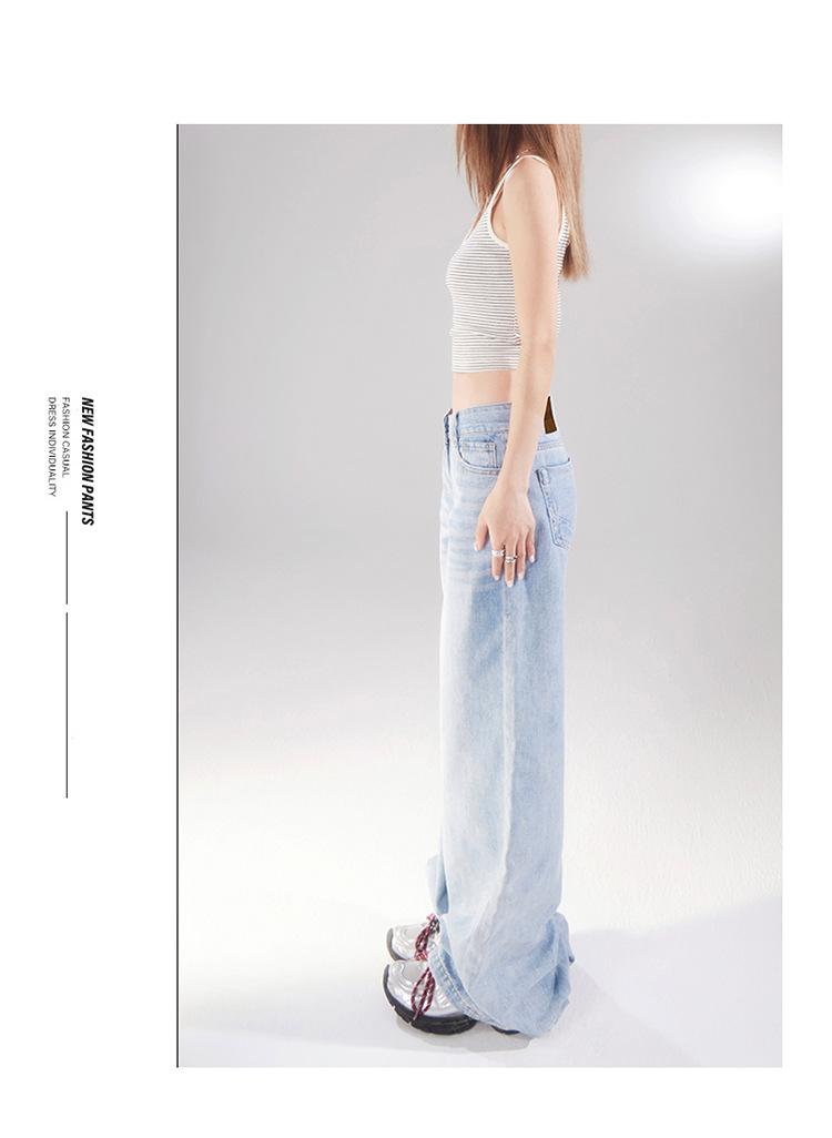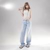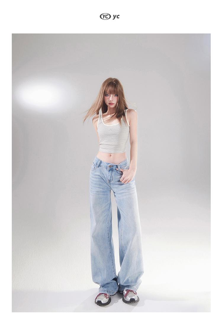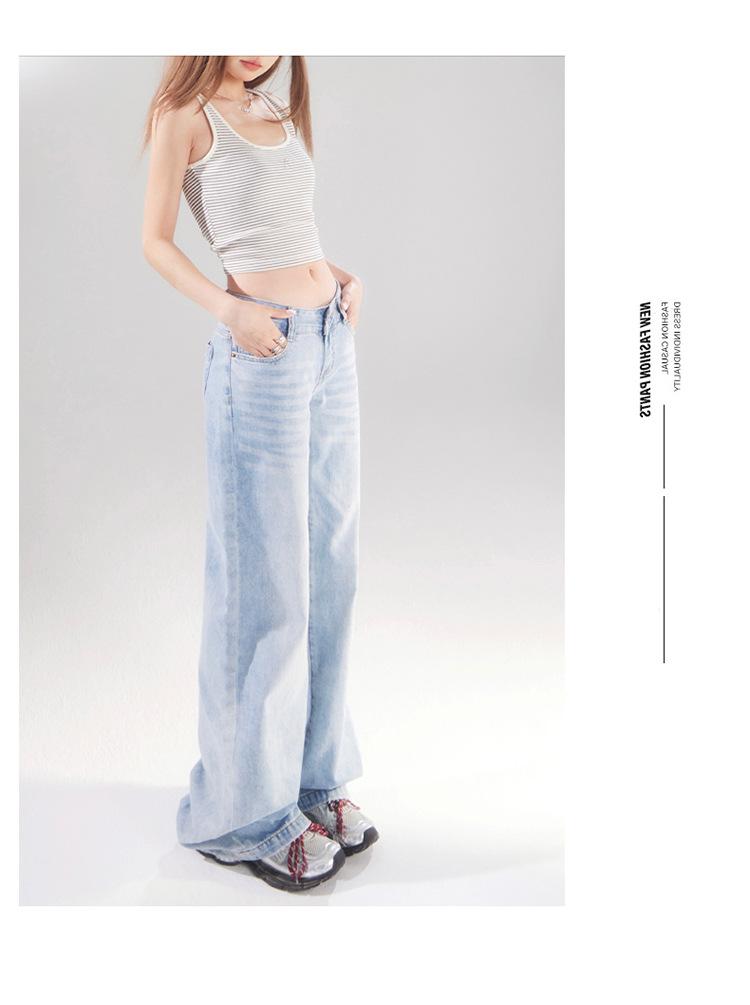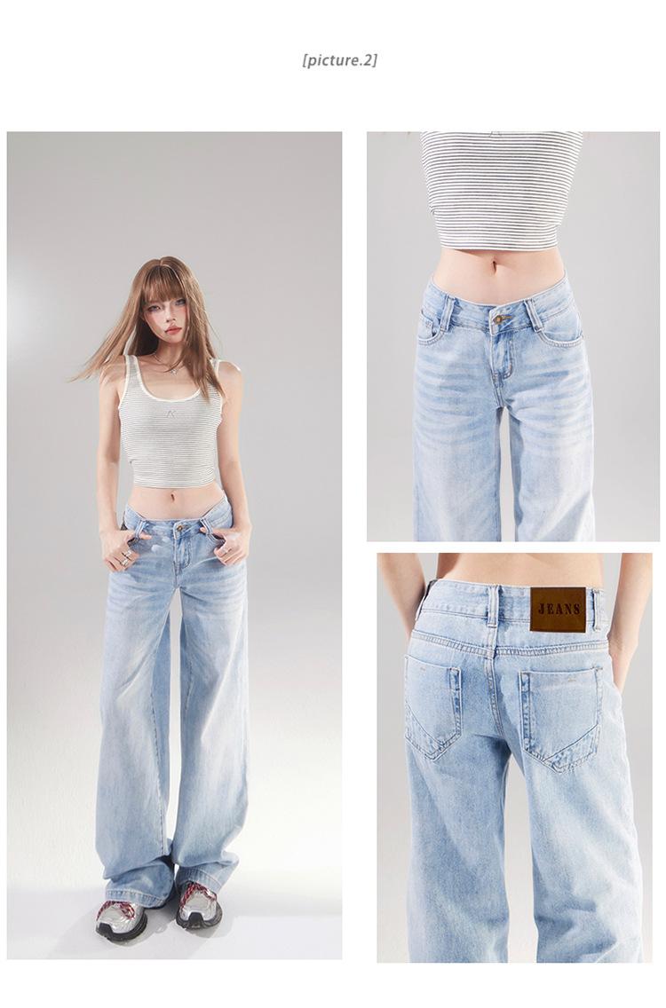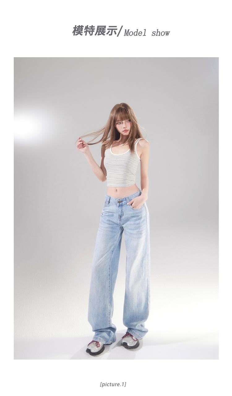 Young Orange# Primavera y Verano Nuevo azul claro Jeans de Cintura Baja Pierna Ancha Pantalones Holgados Adelgazantes para Mujer Casuales Combinan con Todo Pantalones de Pierna Recta