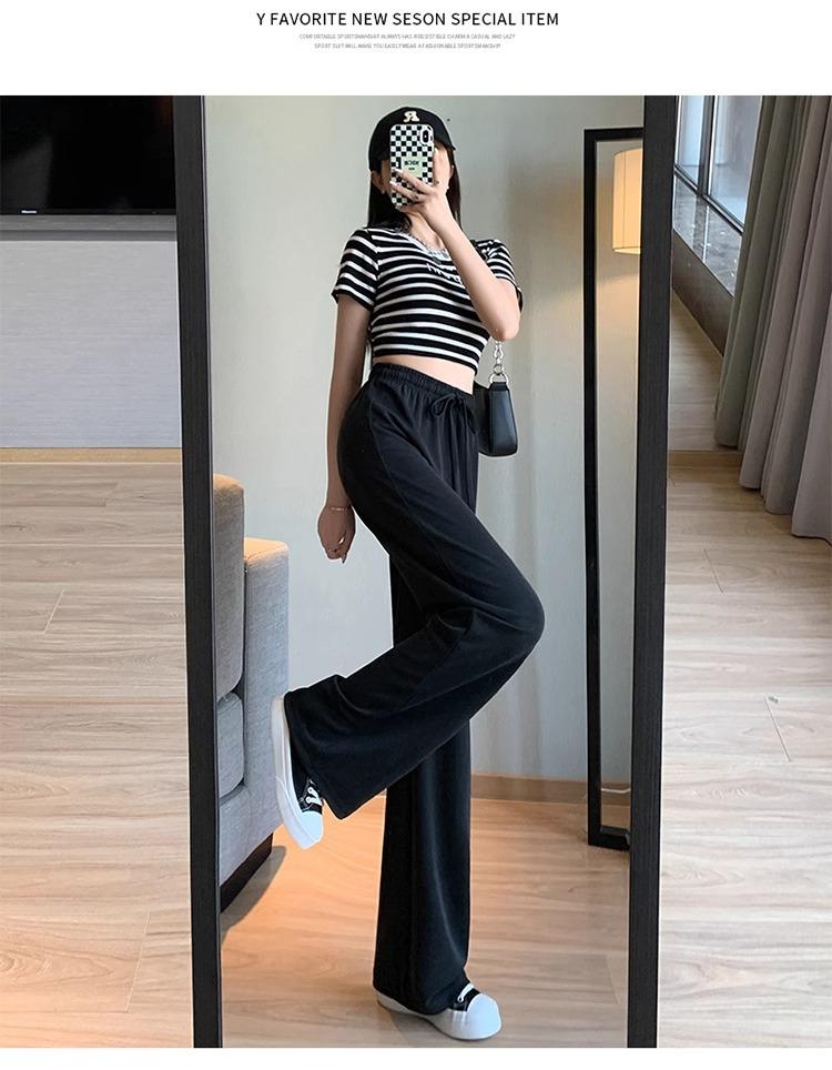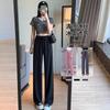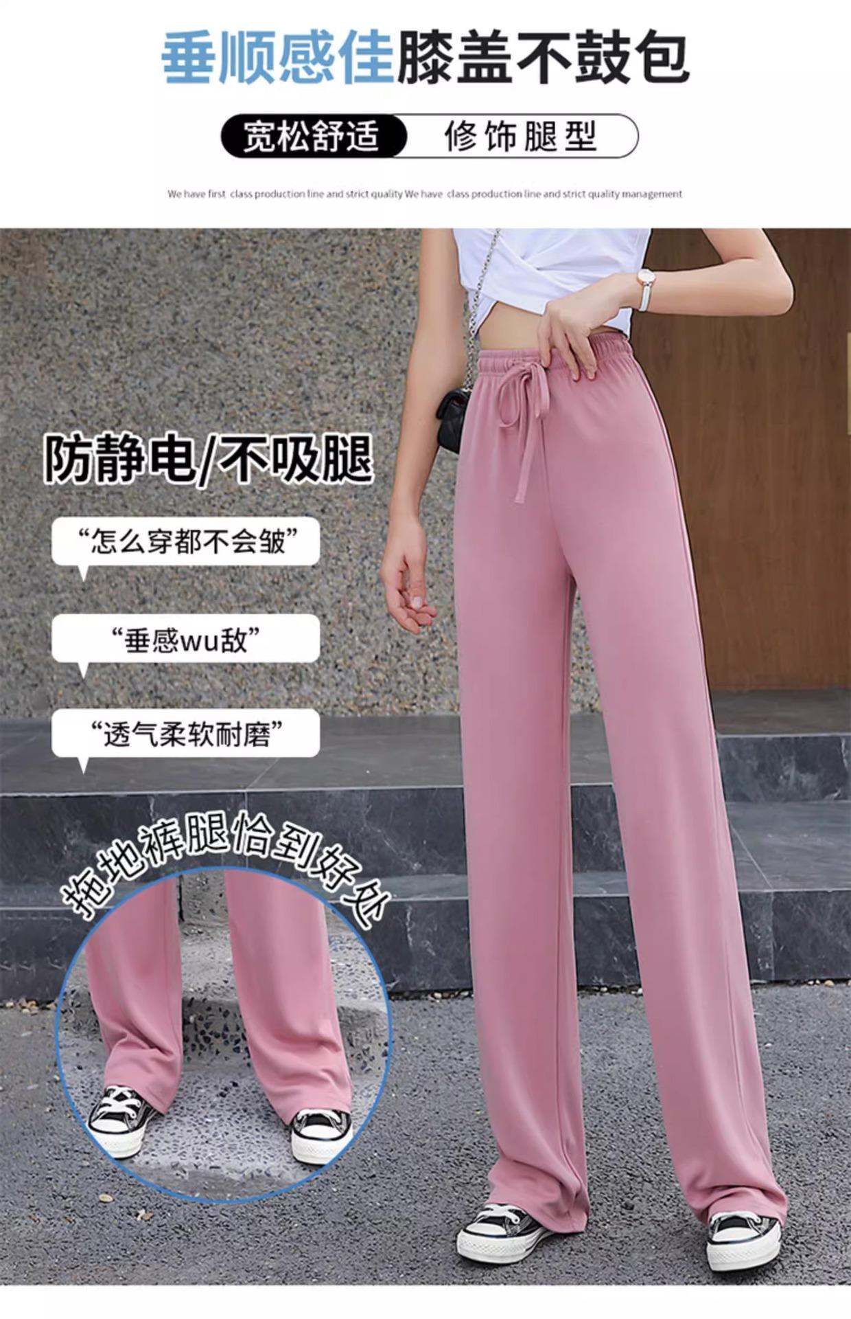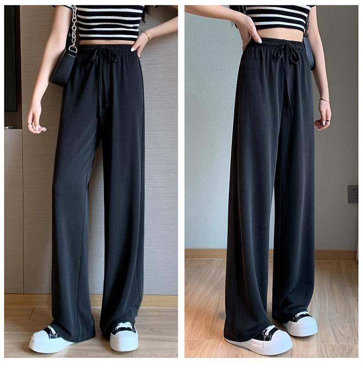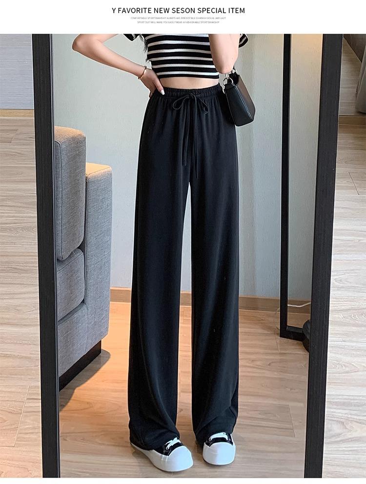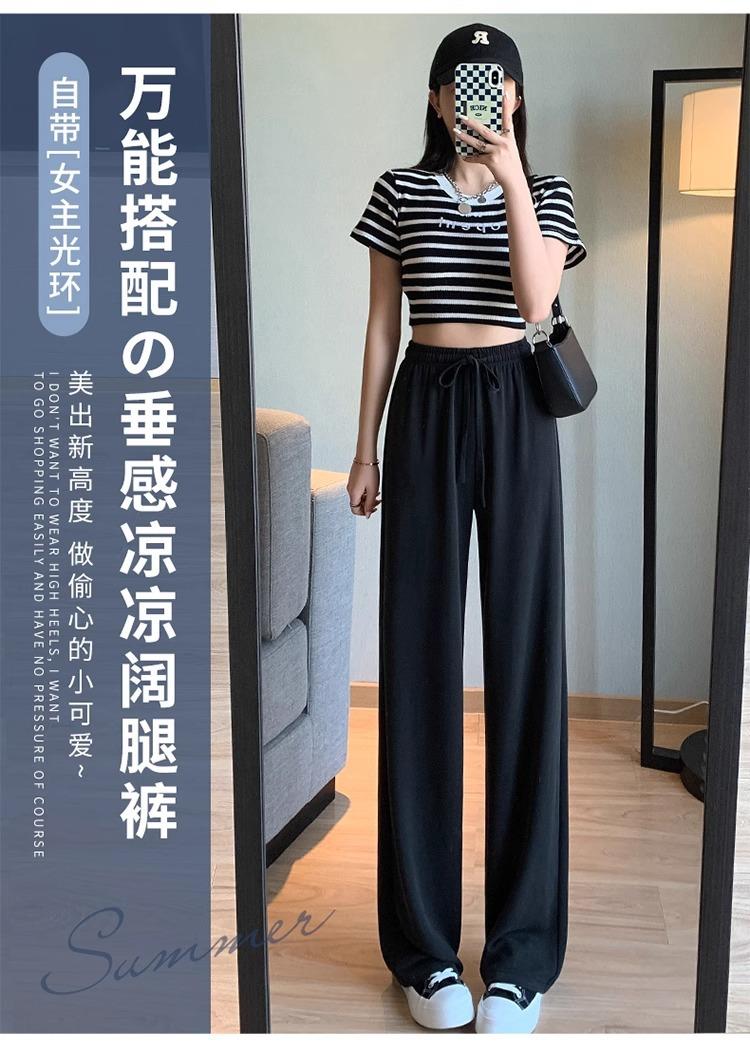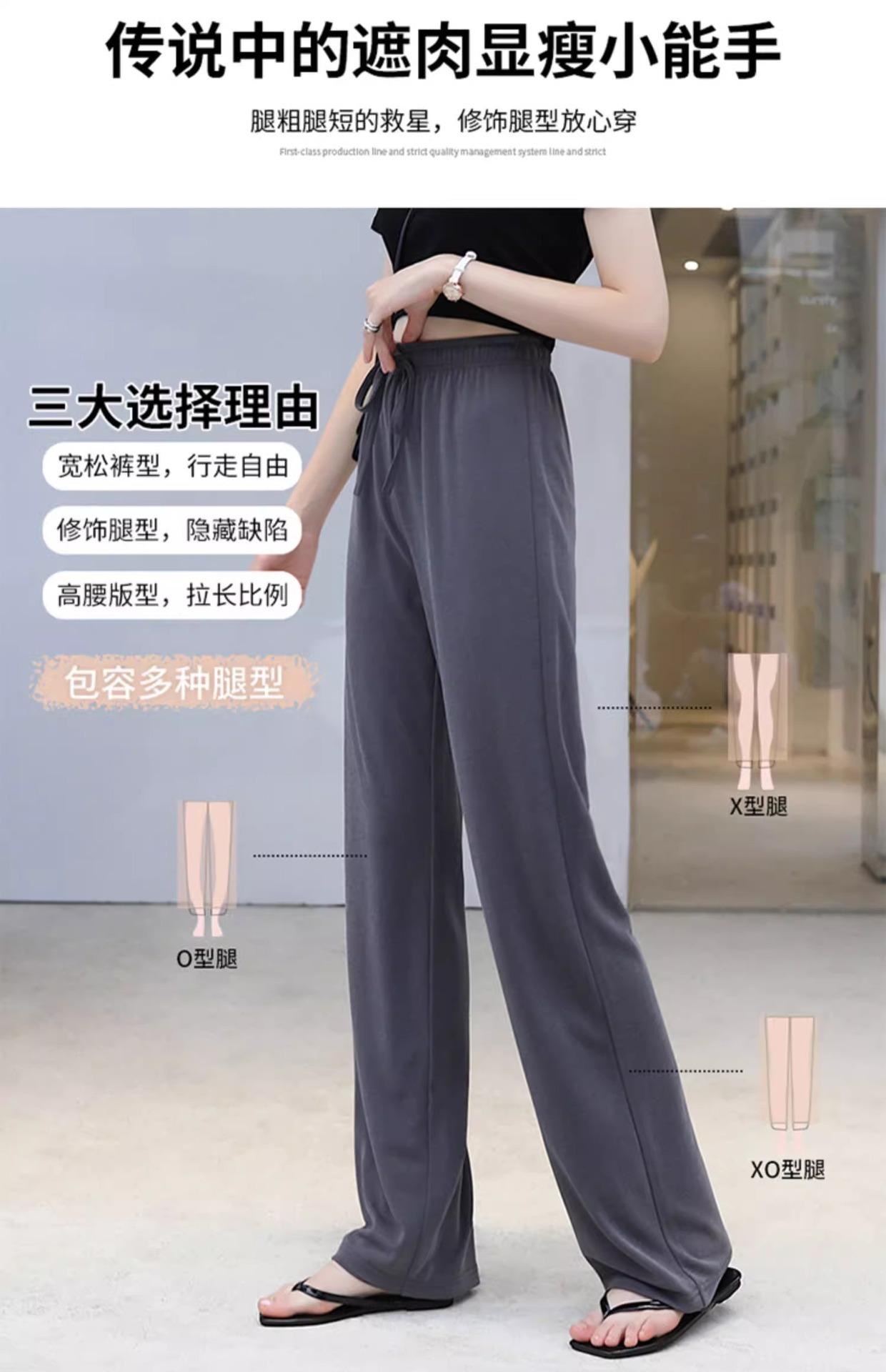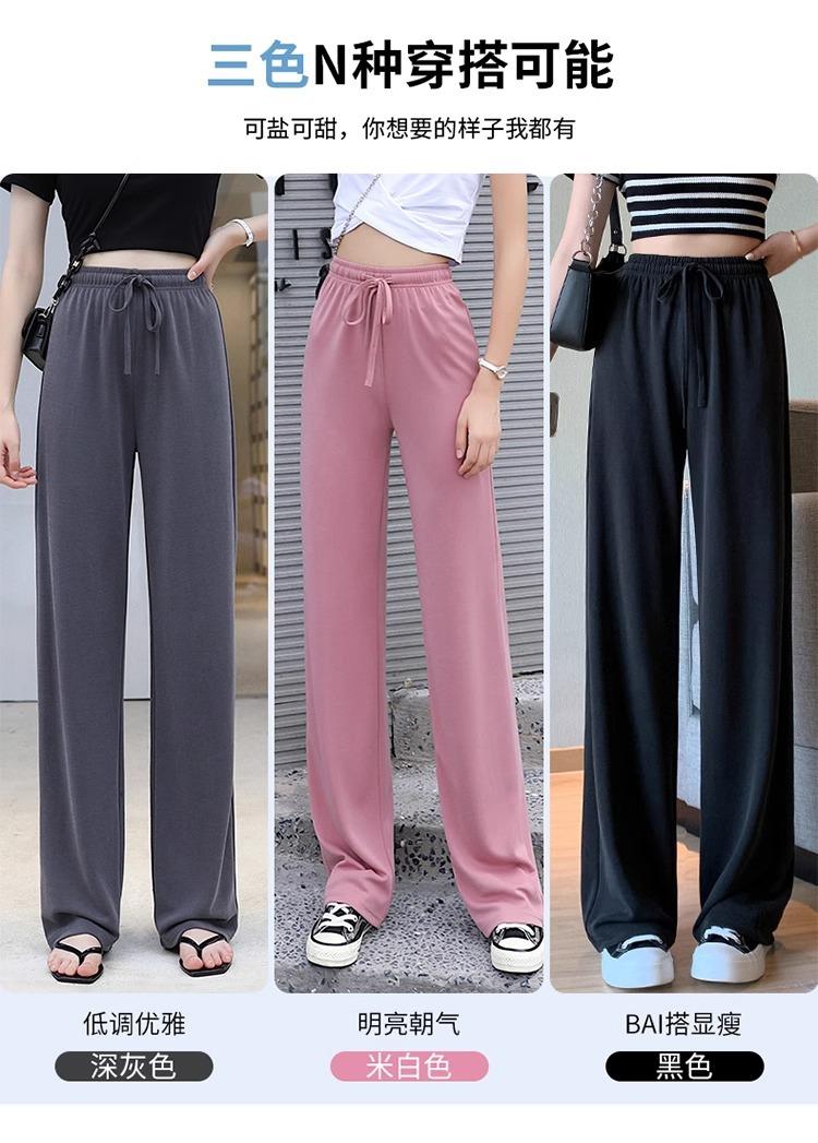 Versión Estrecha de Pantalones Largos de Cupro Seda para Niñas Verano 2025 Nuevo Delgados de Pierna Ancha Versátiles Seda Helada Drapeados Casuales