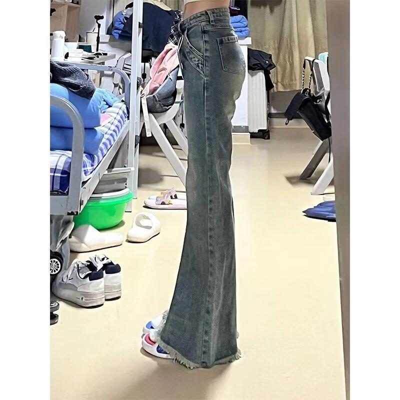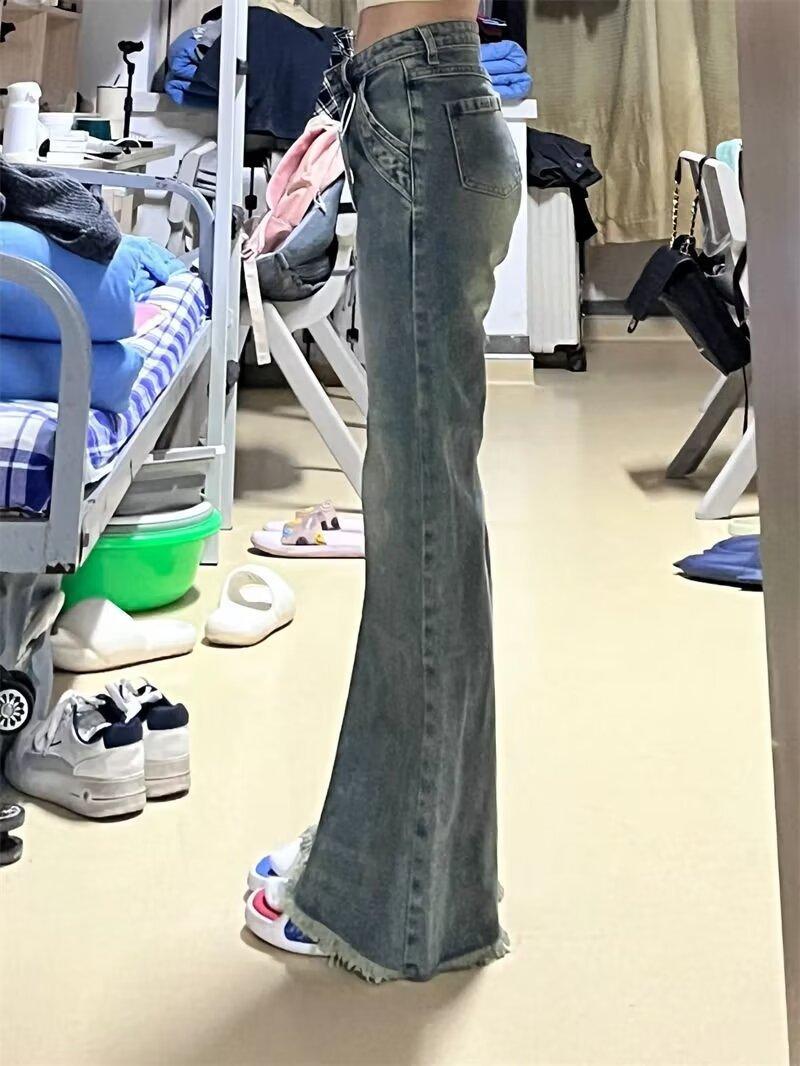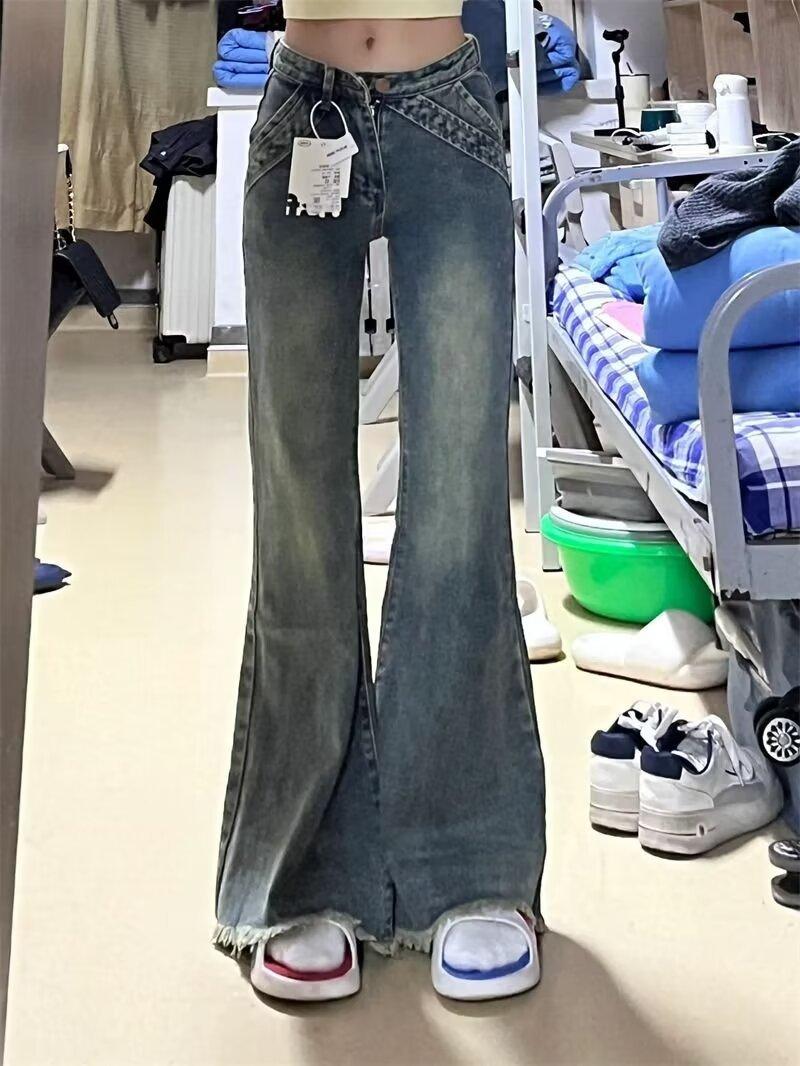 Jeans Acampanados Micro Americanos Retro para Mujer Verano 2024 Delgados Cintura Alta Ajustados Ajustados Pantalones de Herradura